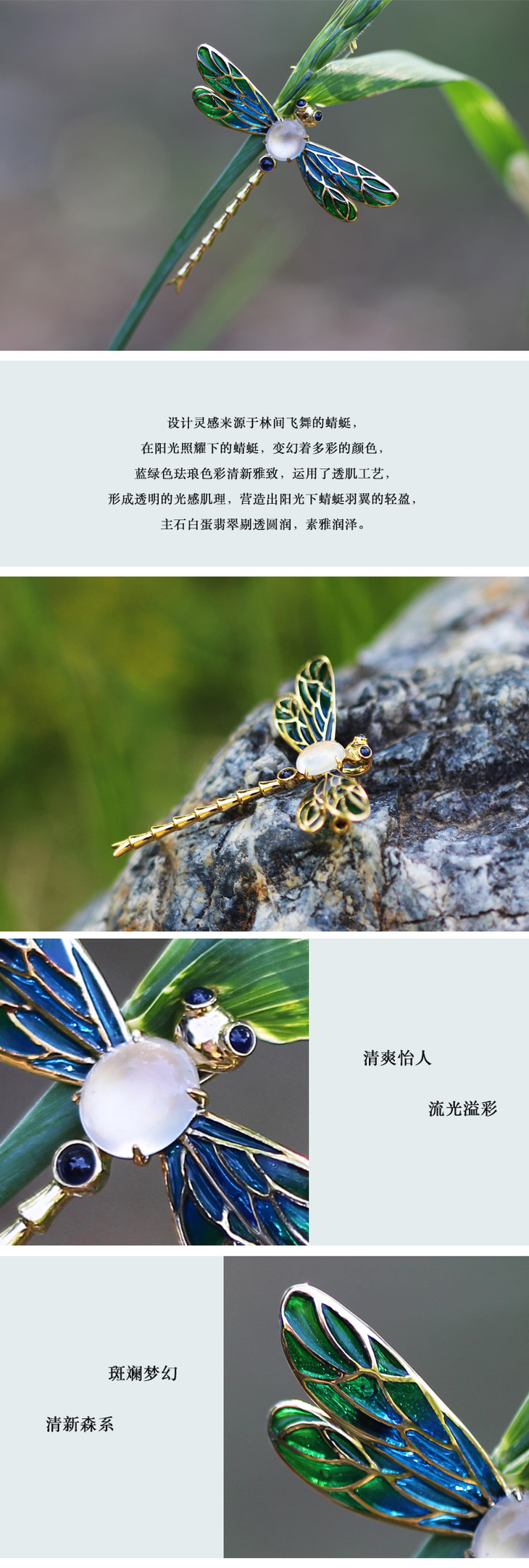 「豆蜻蜓」透烧珐琅蜻蜓胸针【定制】 商品图3