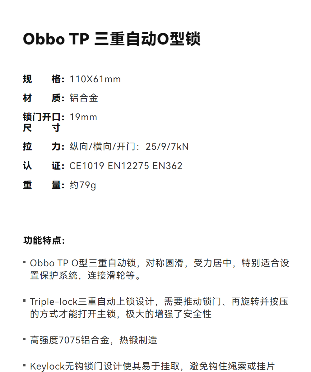 KAILAS凯乐石 户外运动 Obbo TP 三重自动O型锁 EC111B【Z】