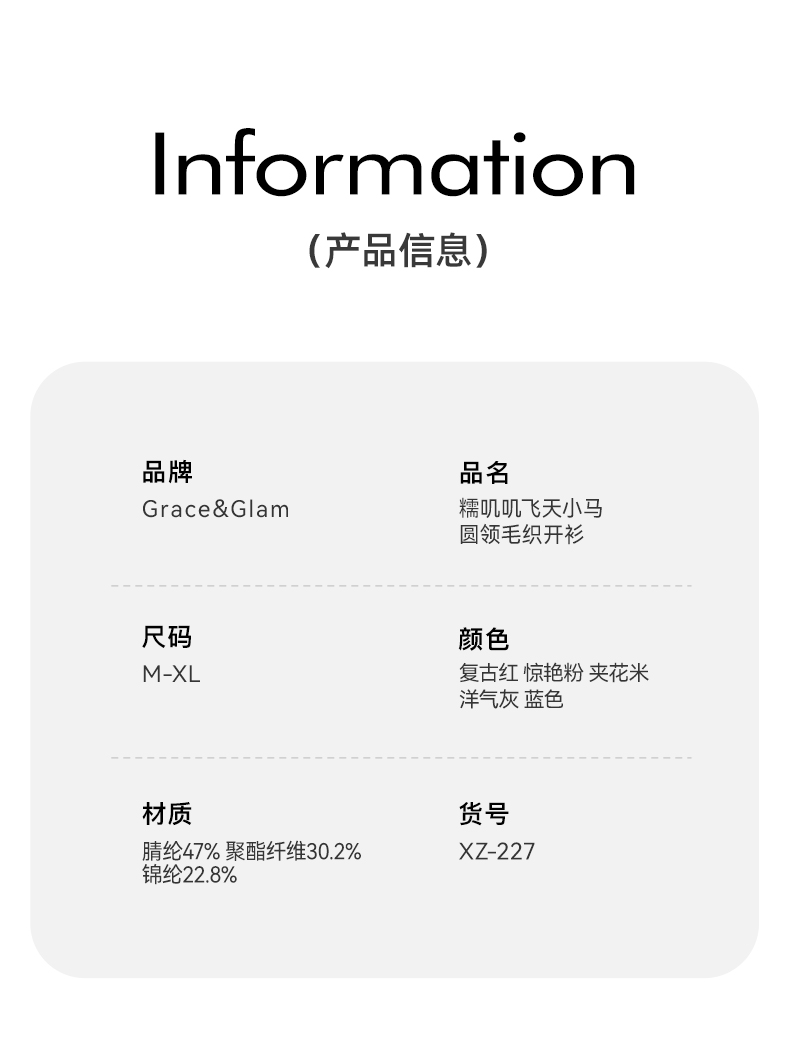 Grace&Glam 糯叽叽飞天小马圆领毛织开衫