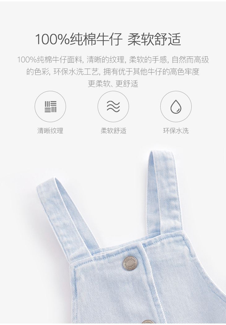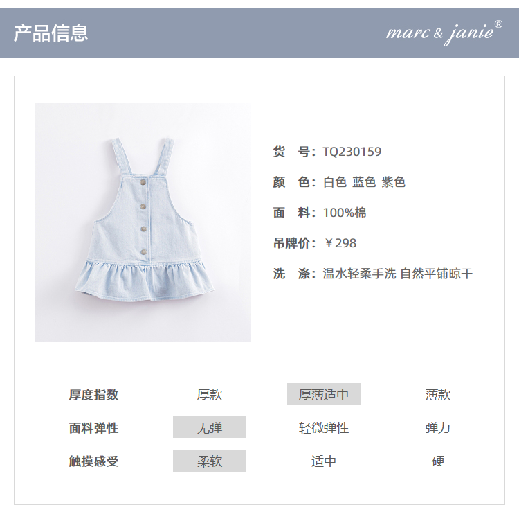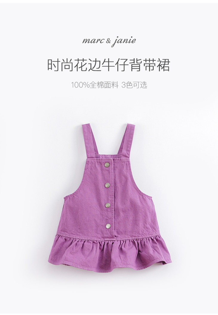 马克珍妮春夏新款 女童田园风全棉牛仔背带裙连衣裙230159