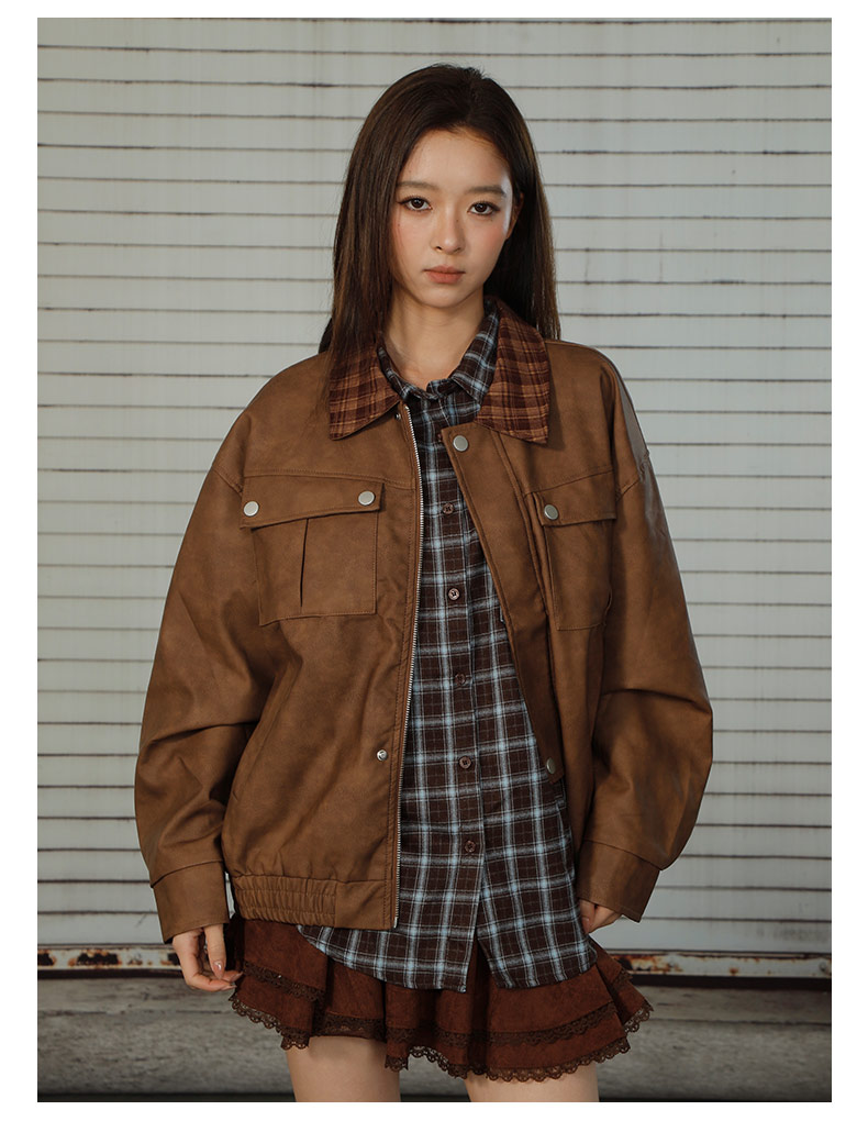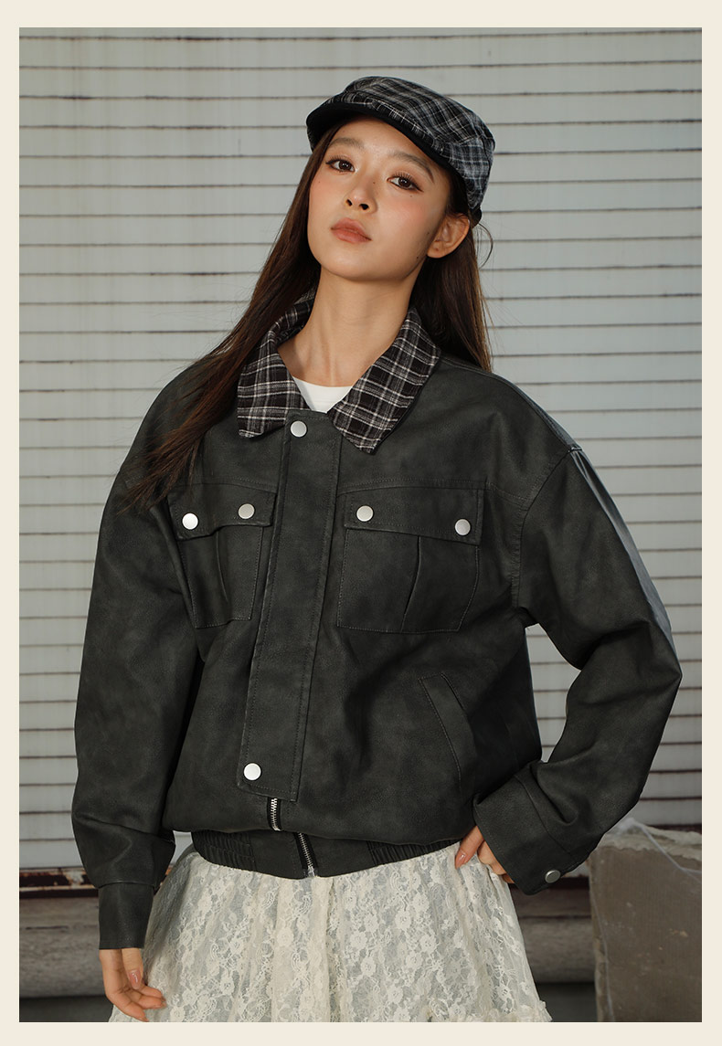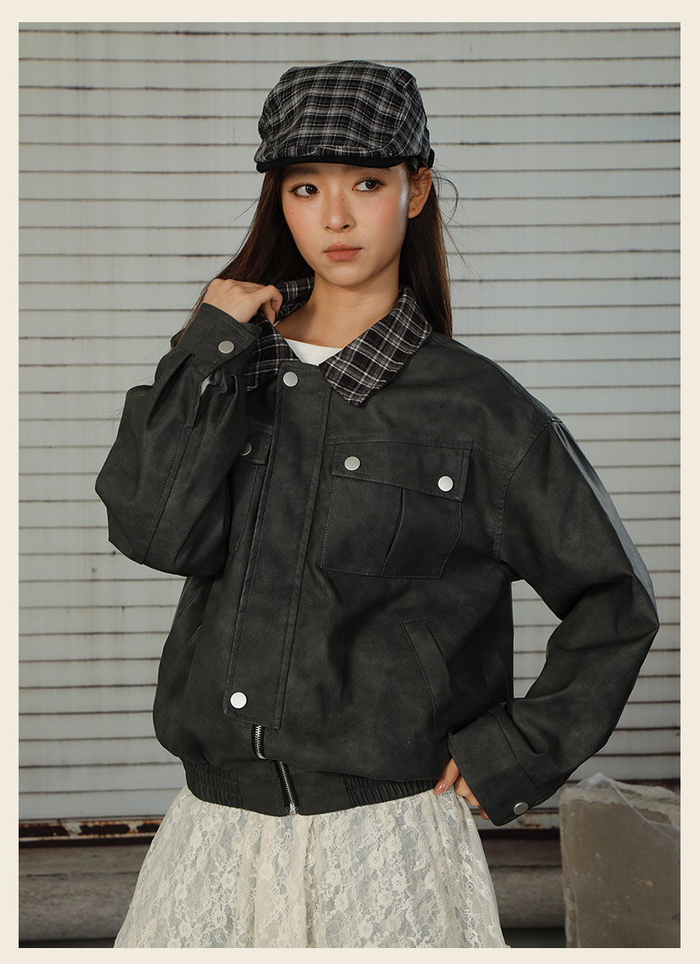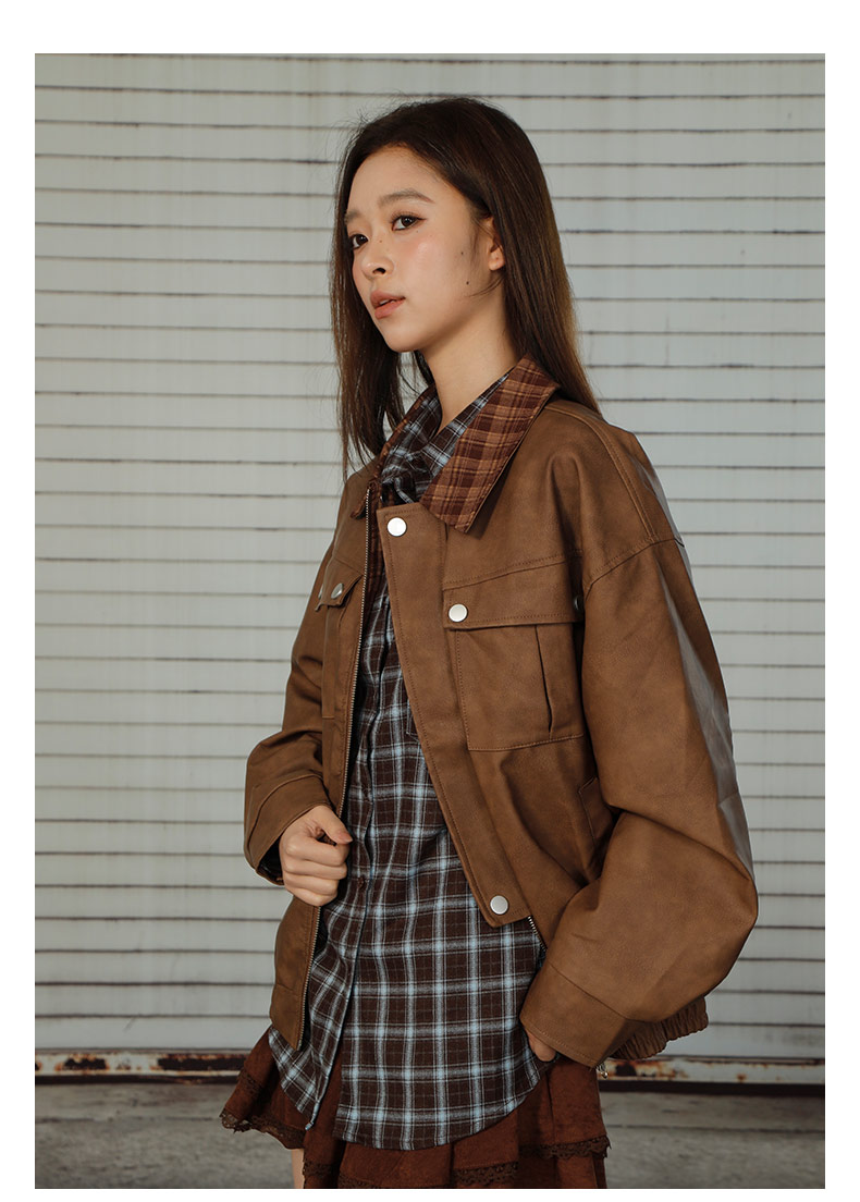 拼接休闲皮衣短款外套-纪念日百货门店同款166643882