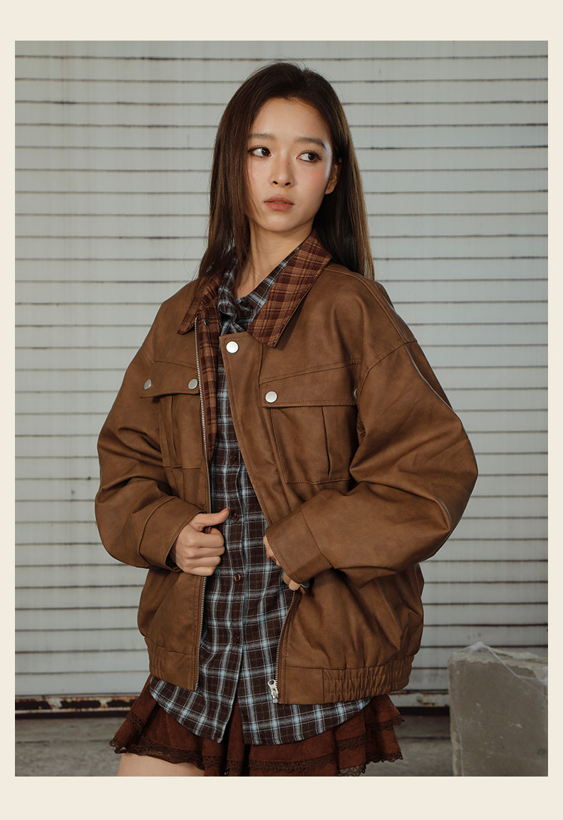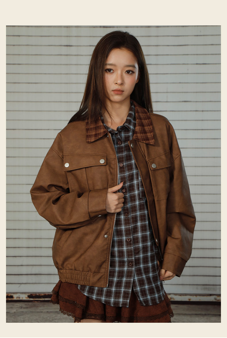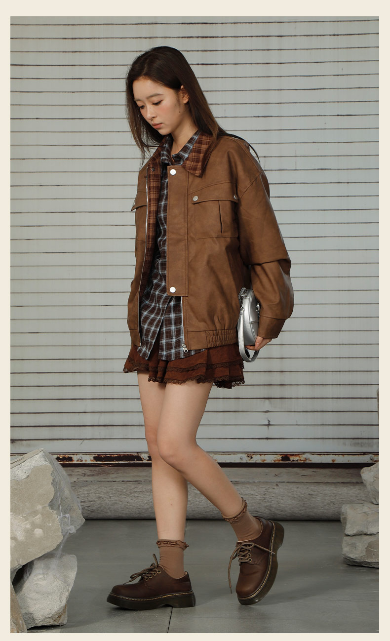 拼接休闲皮衣短款外套-纪念日百货门店同款166643882