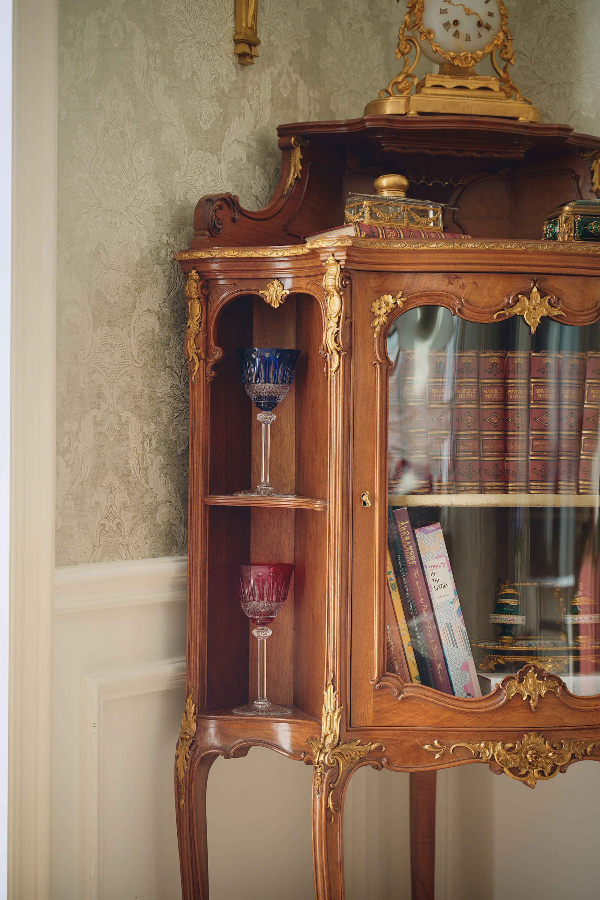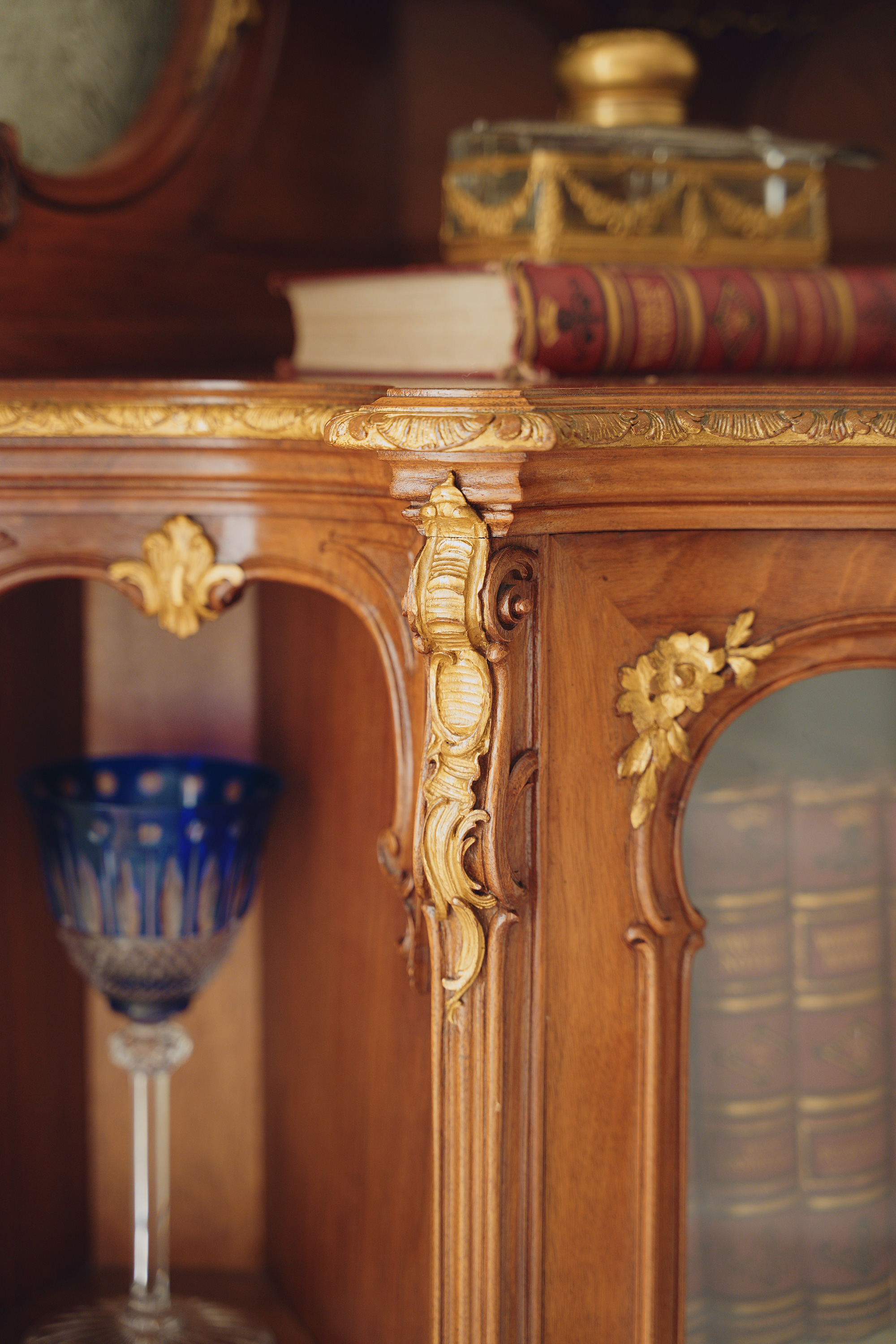 材质:核桃木,玻璃,铜鎏金