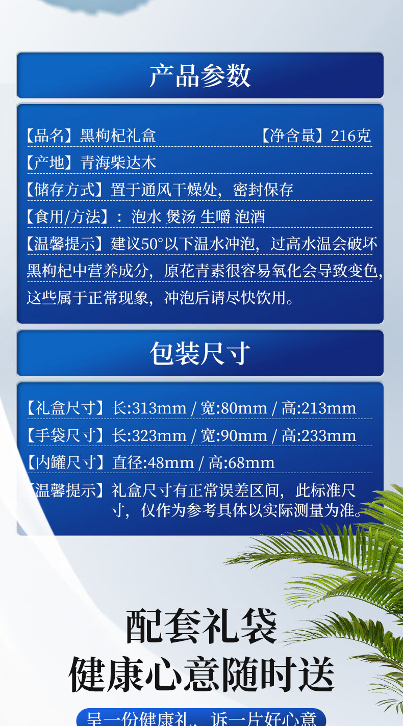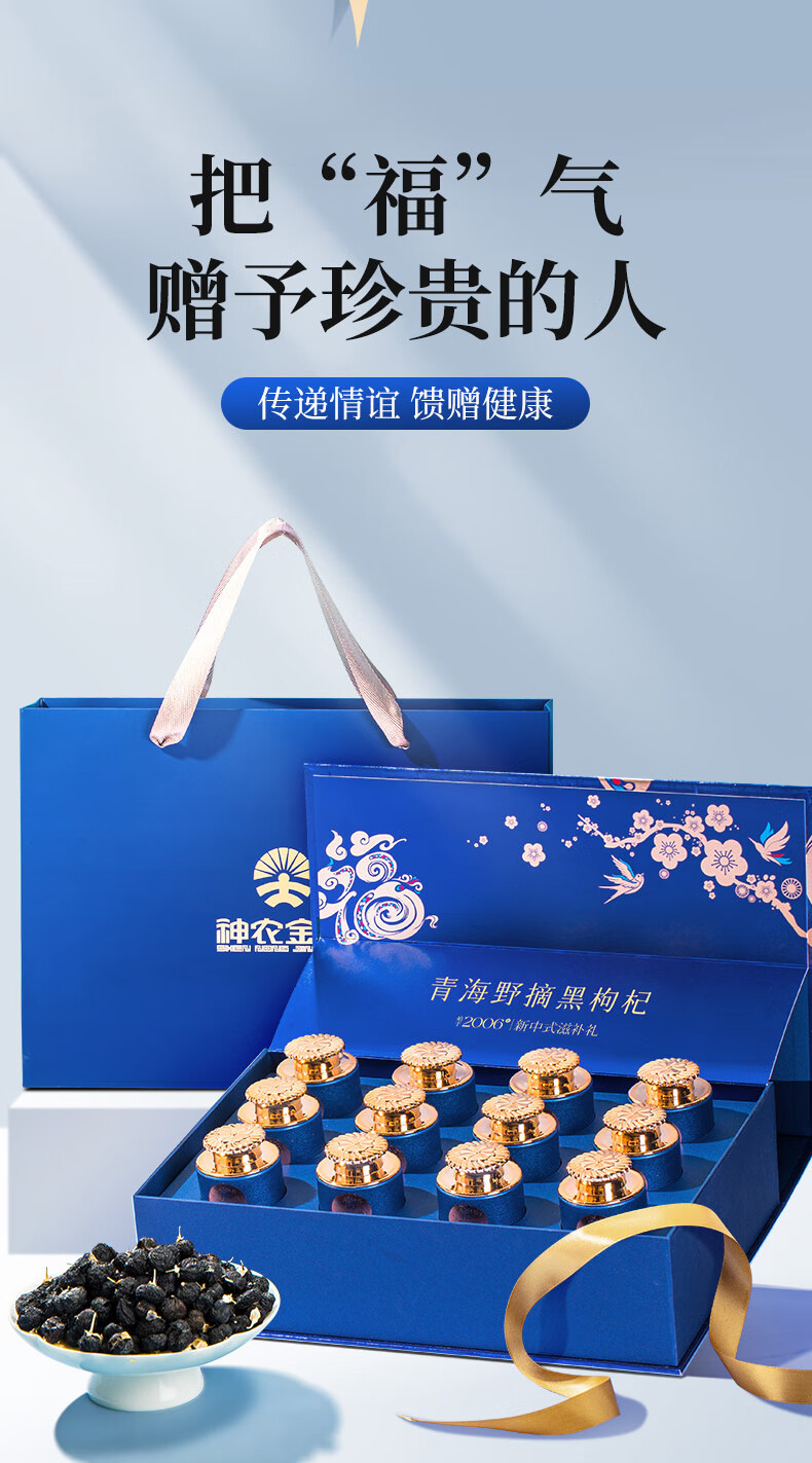 神农金康黑枸杞礼盒216g青海头茬大果实用礼物送父母长辈礼品企业员工福利