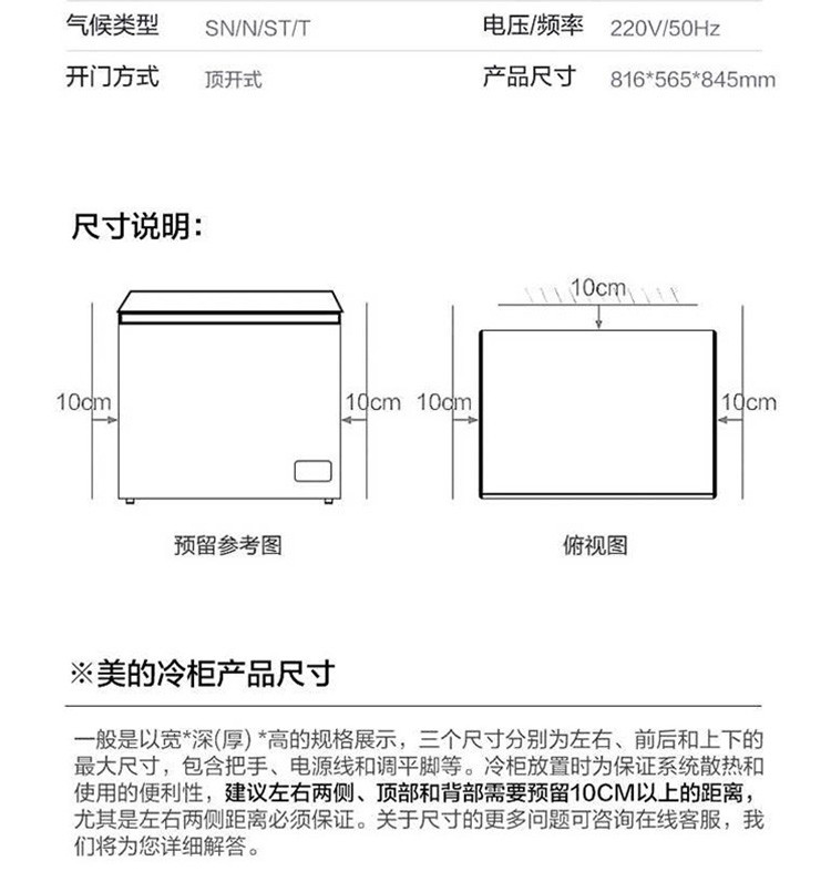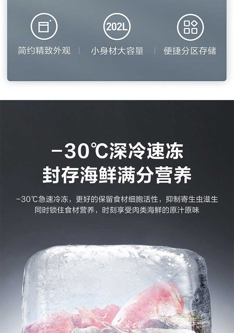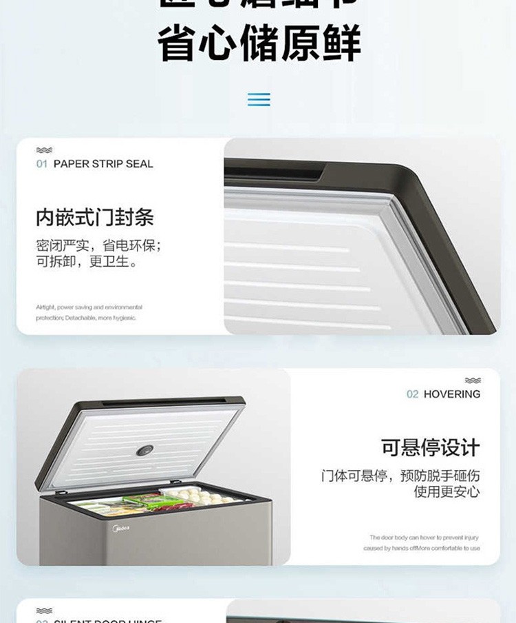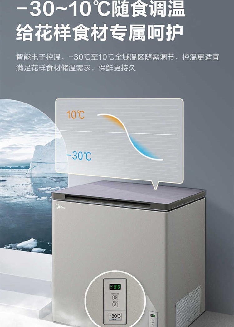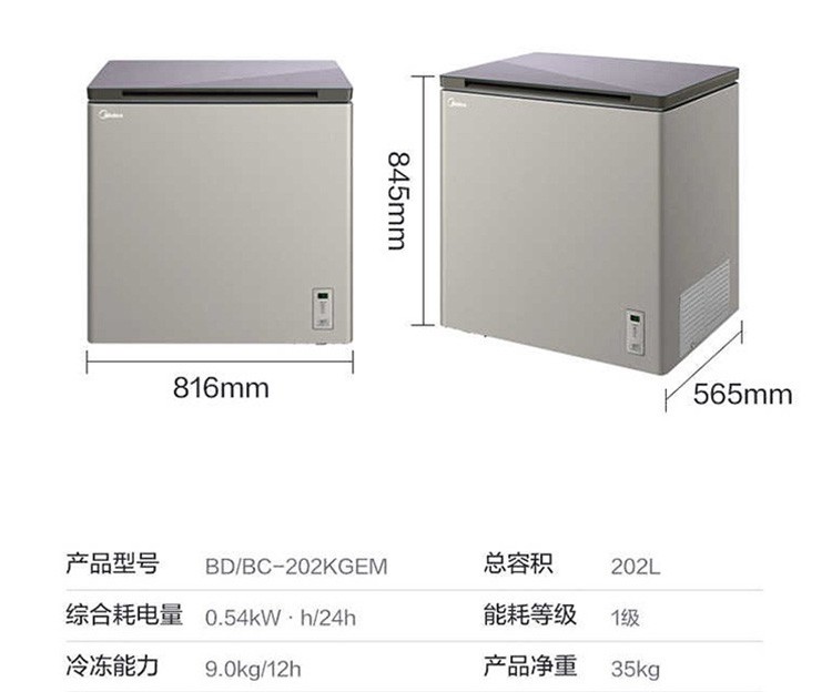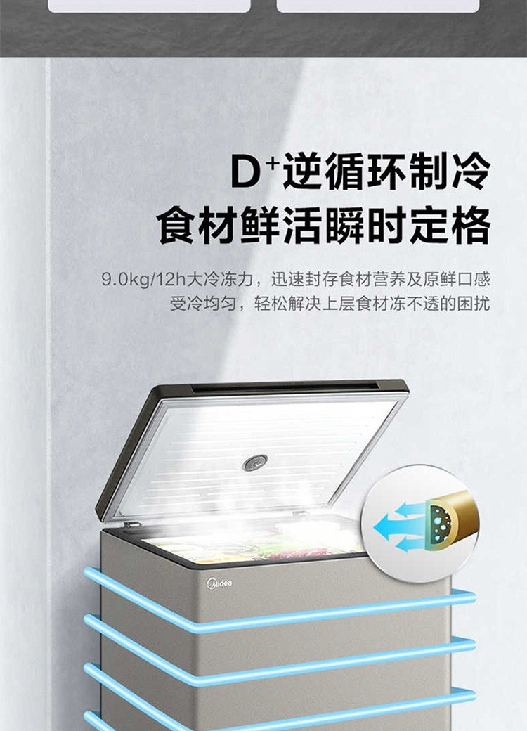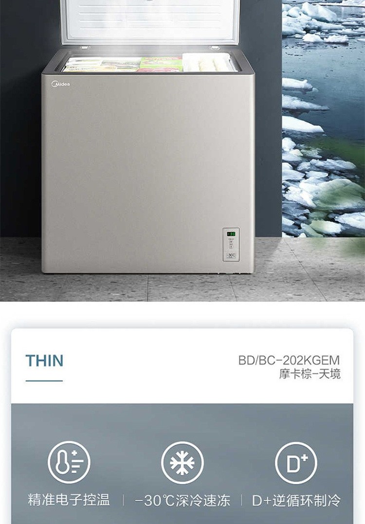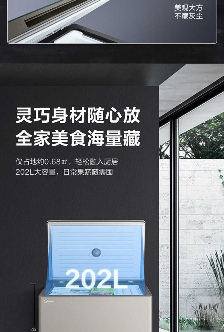 美的(Midea)202升顶开门单温柜冷柜 电子控温 深冷速冻 净味阻霜BD/BC-202KGEM