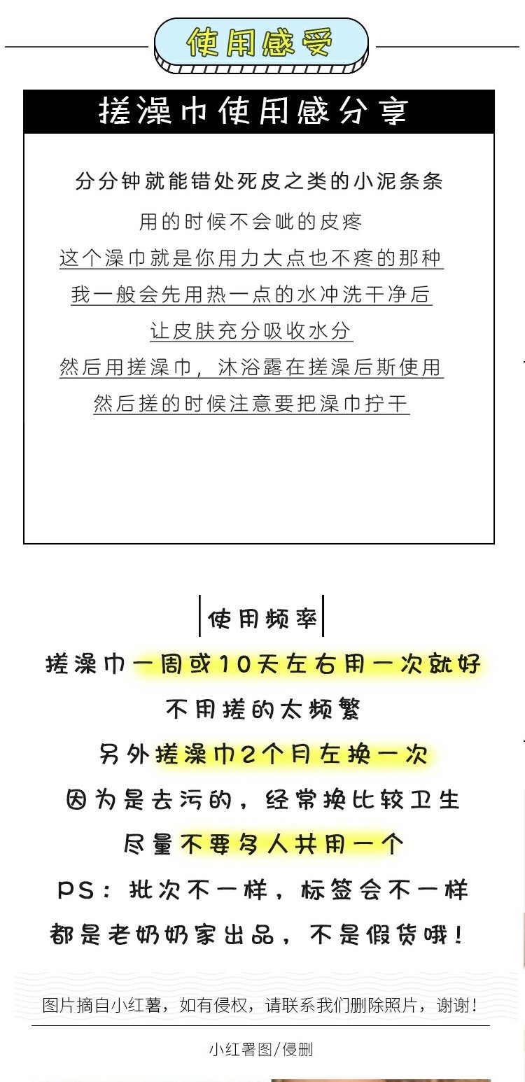 建议自己用自己的澡巾!澡巾建议2个月更换一个!