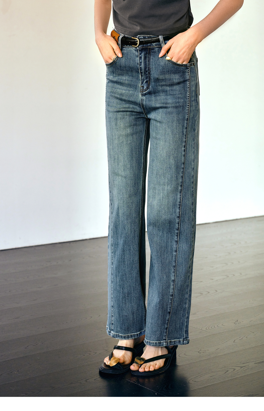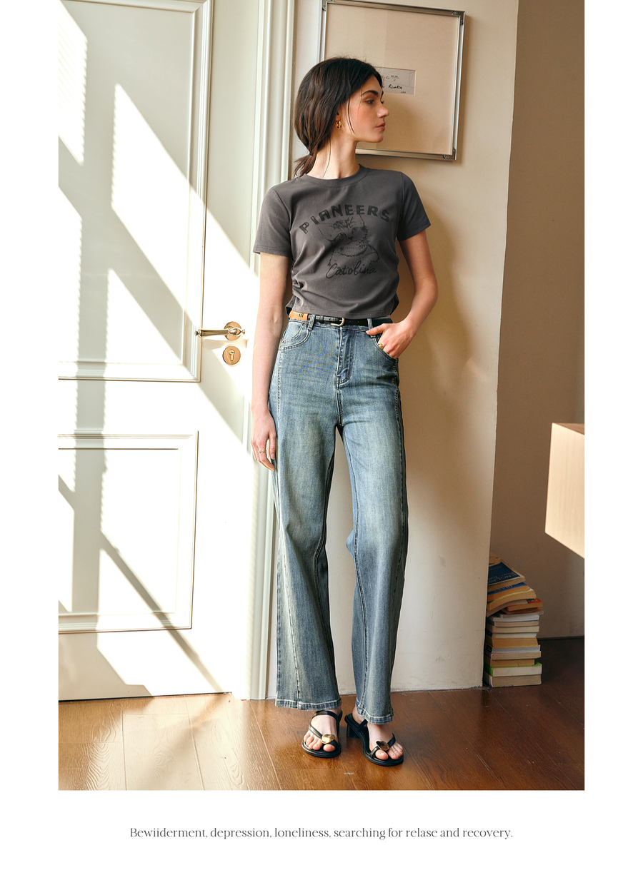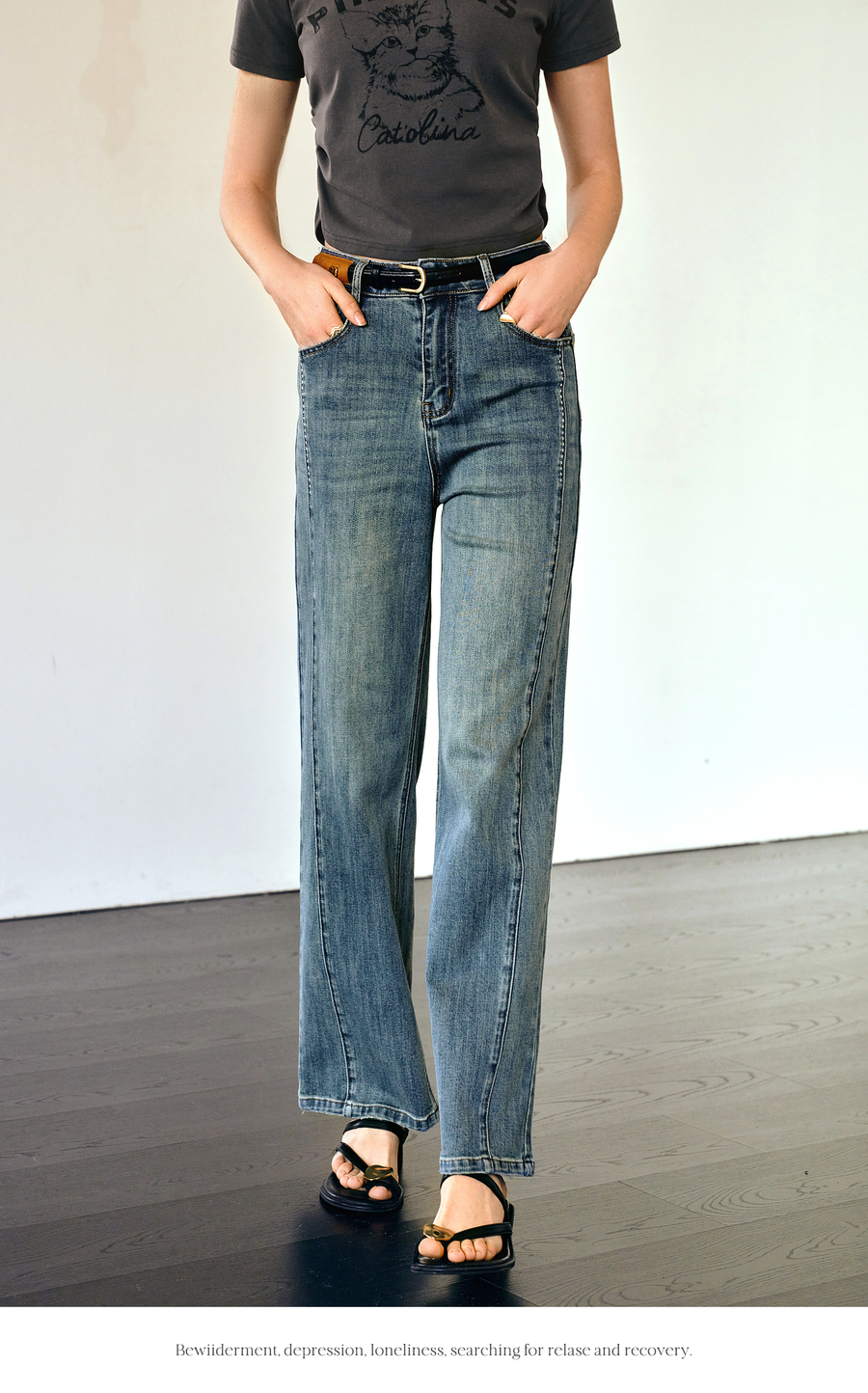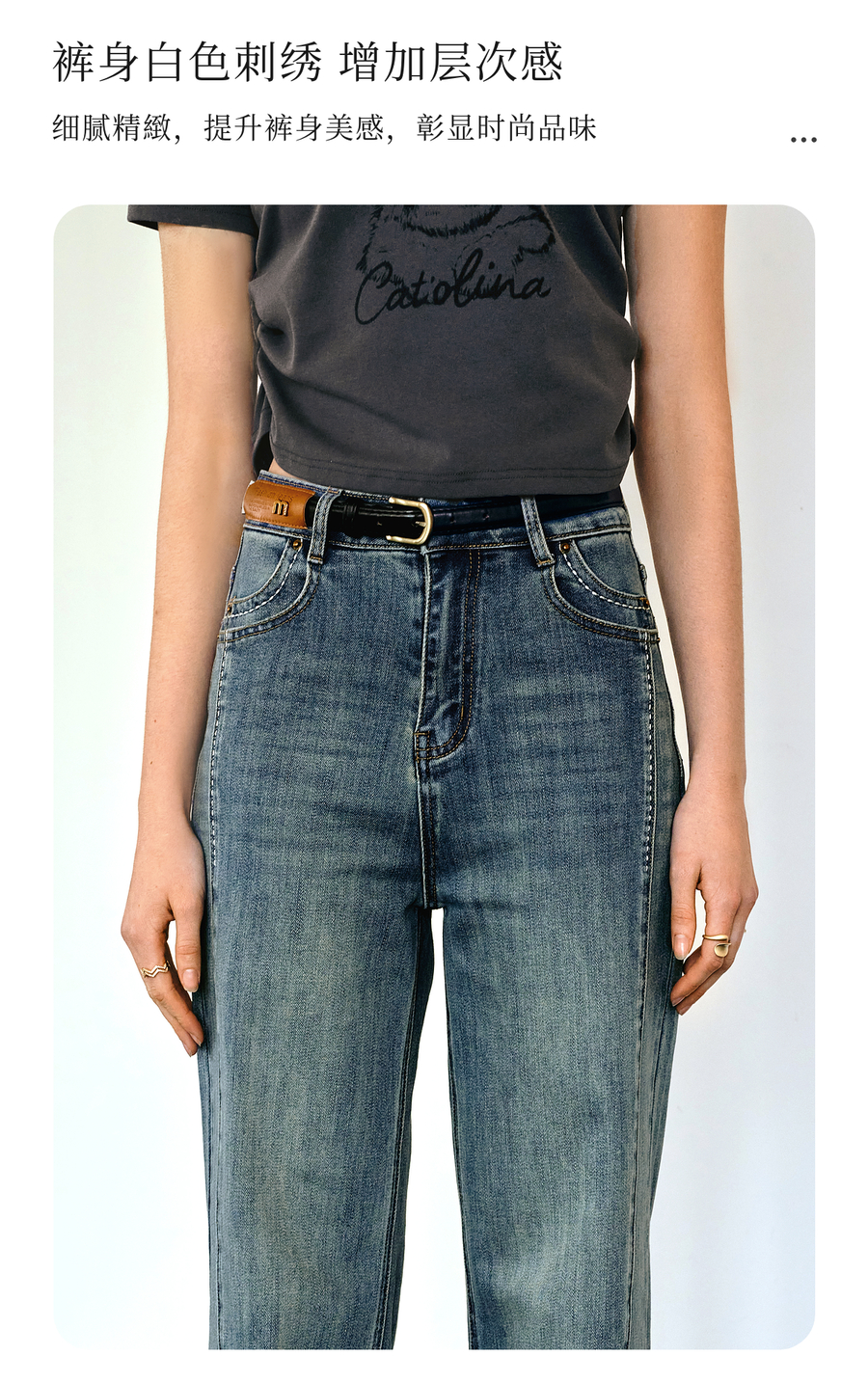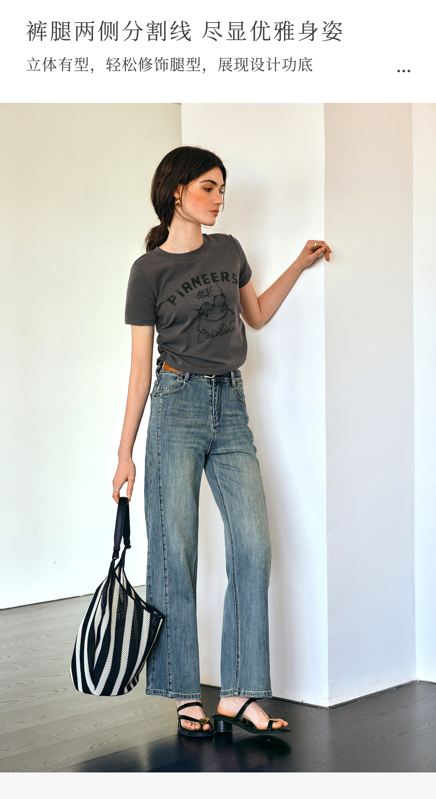 OLrain欧芮儿蓝色高腰牛仔裤女夏季2025新款设计感直筒窄版阔腿裤