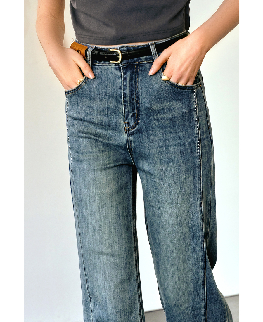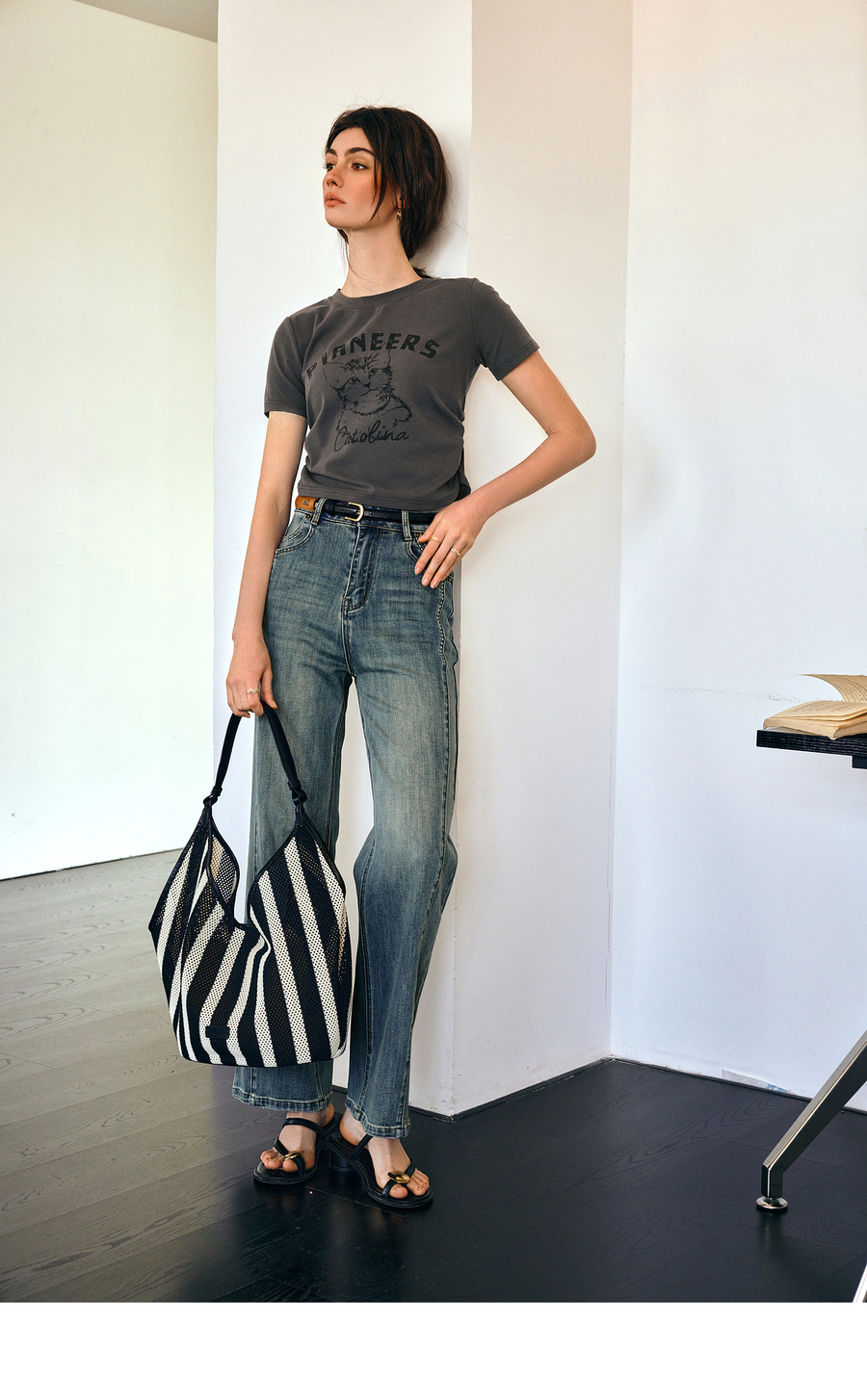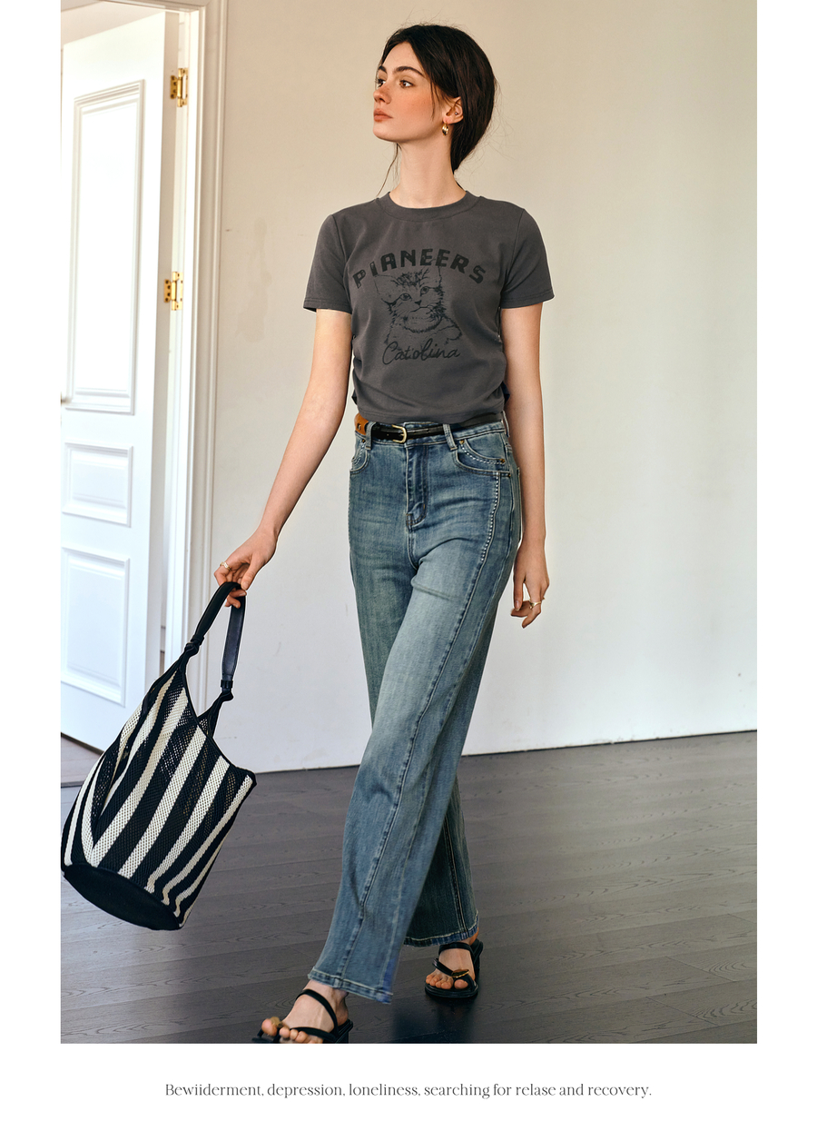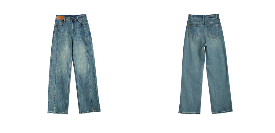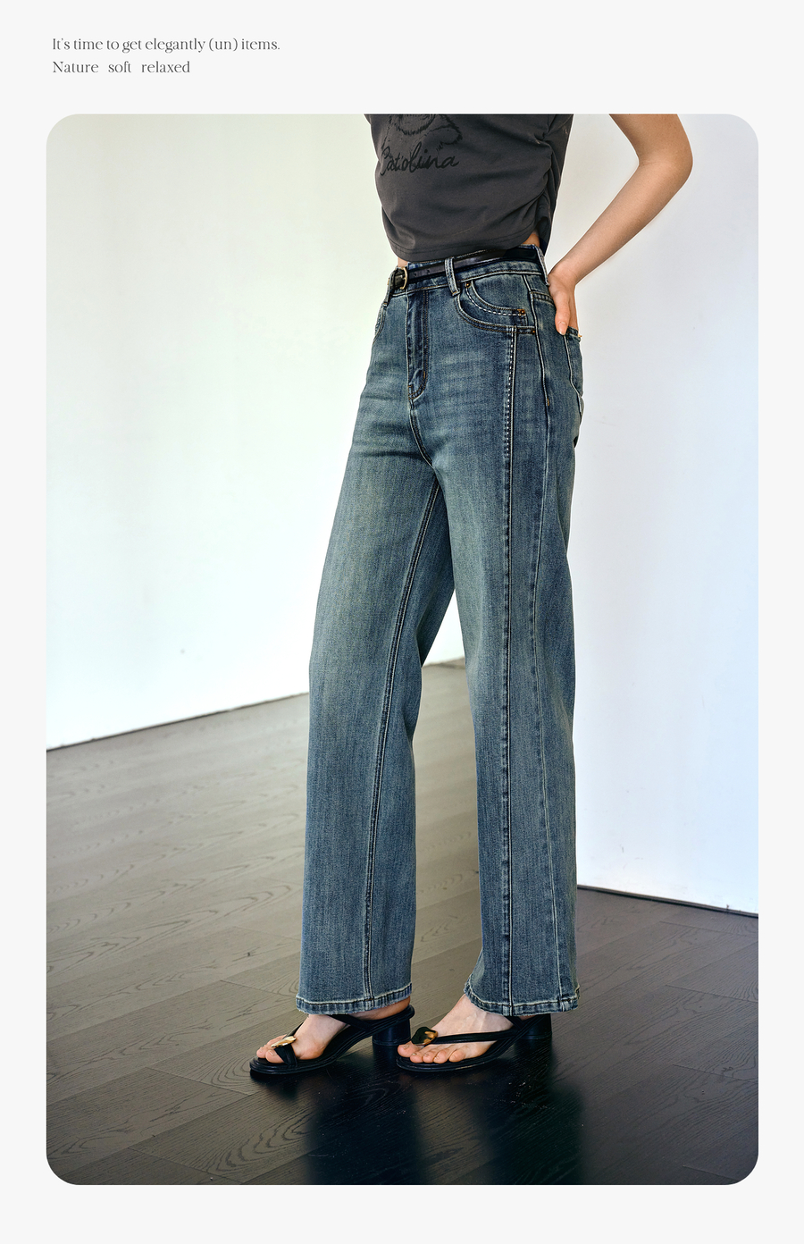 OLrain欧芮儿蓝色高腰牛仔裤女夏季2025新款设计感直筒窄版阔腿裤