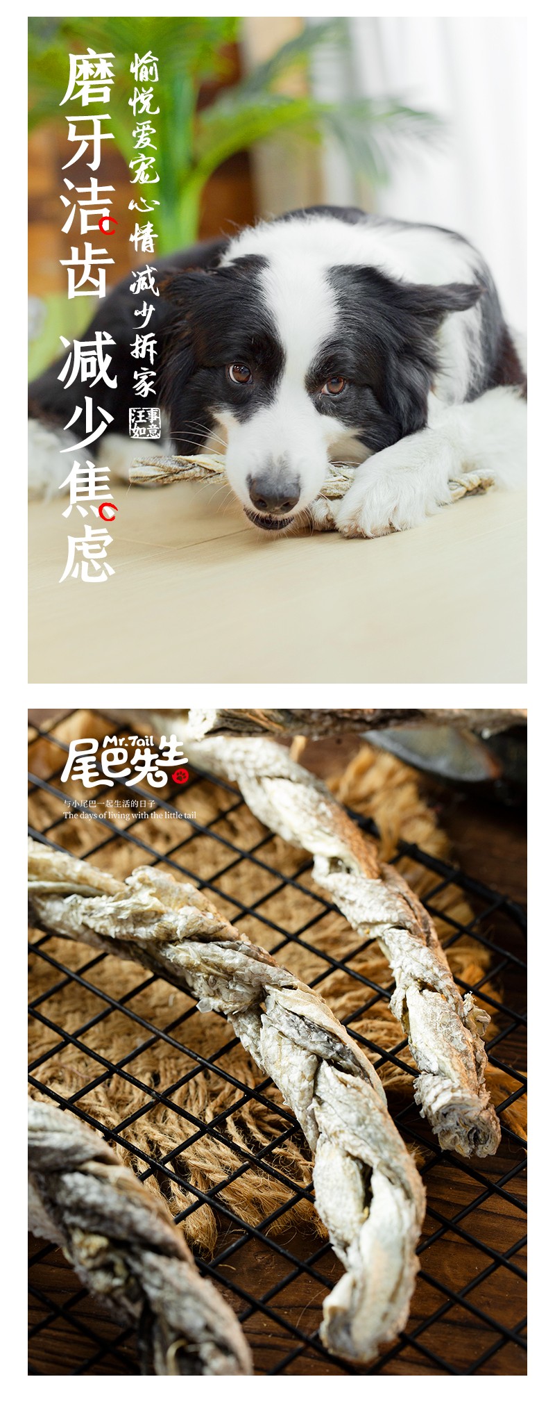 尾巴先生狗狗零食鳕鱼皮麻花宠物幼犬泰迪金毛边牧磨牙耐咬零食