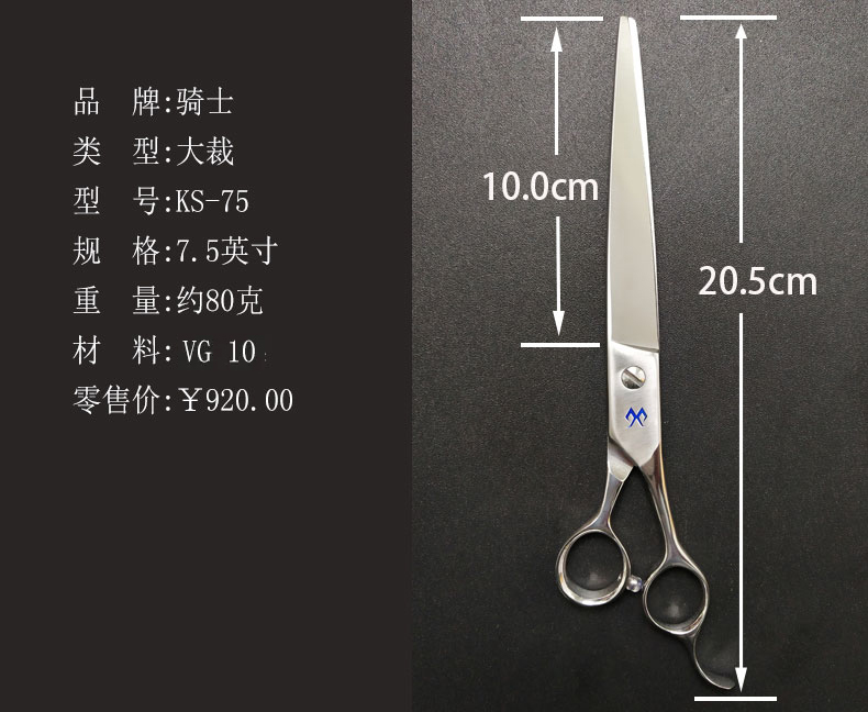 7.5寸大裁平口直剪KISI骑士宠物美容剪刀KS 75天洋G1