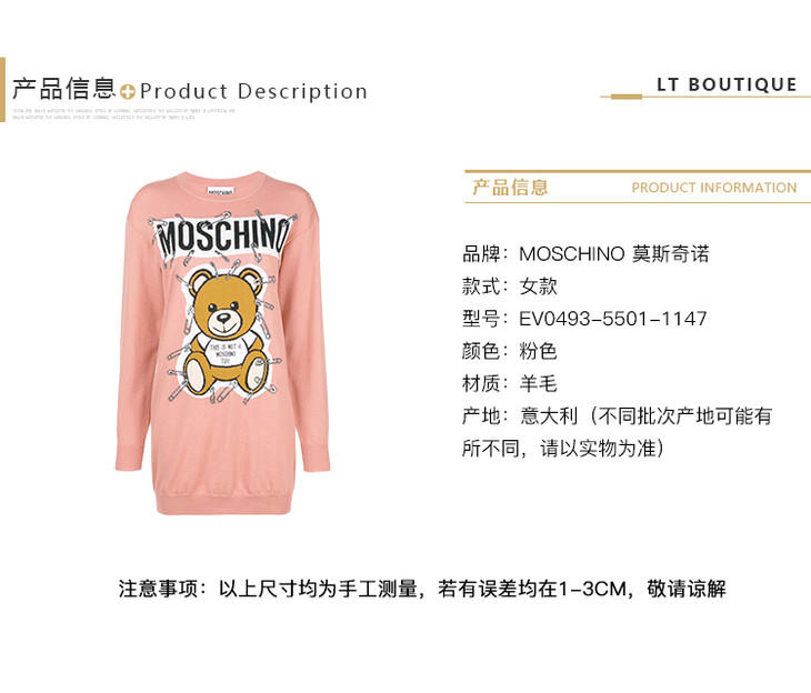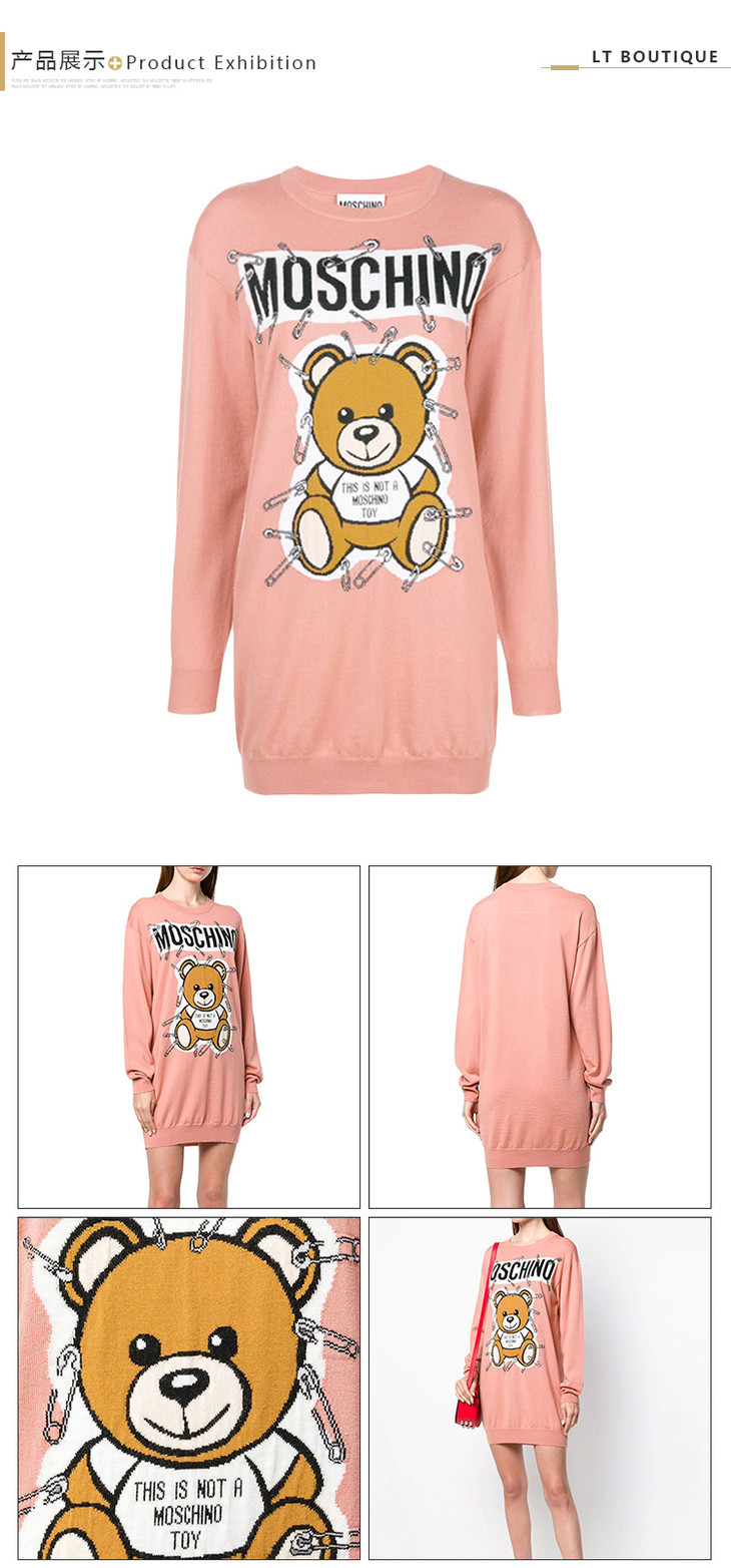 MOSCHINO 莫斯奇诺女装 长款小熊印花长袖上衣连衣裙 粉色 0493 5501 1147
