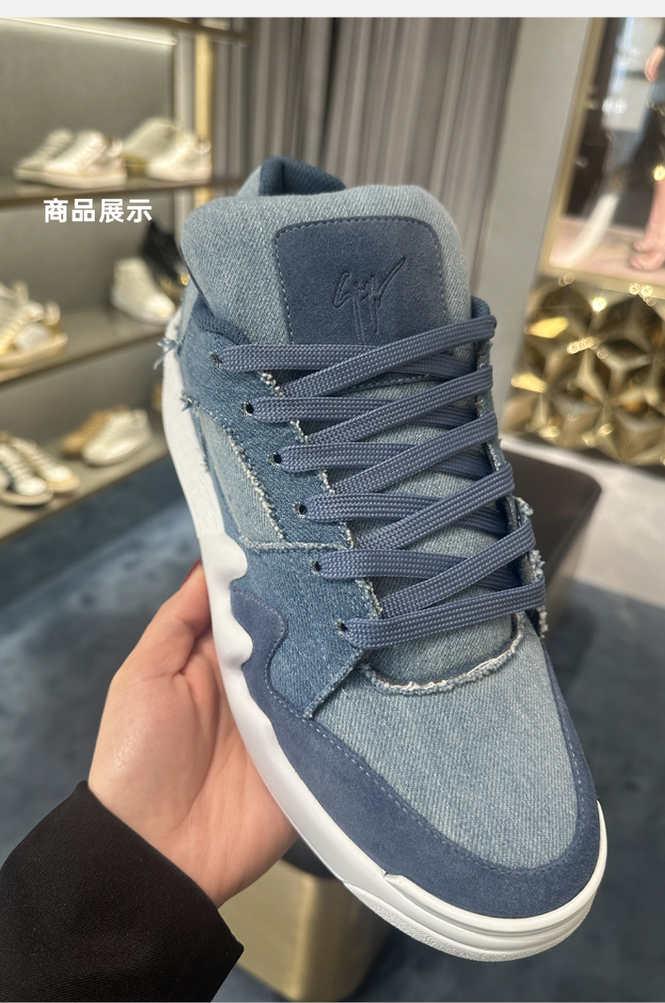 Giuseppe Zanotti 男士签名徽标刺绣休闲运动鞋 蓝色 RU40014001