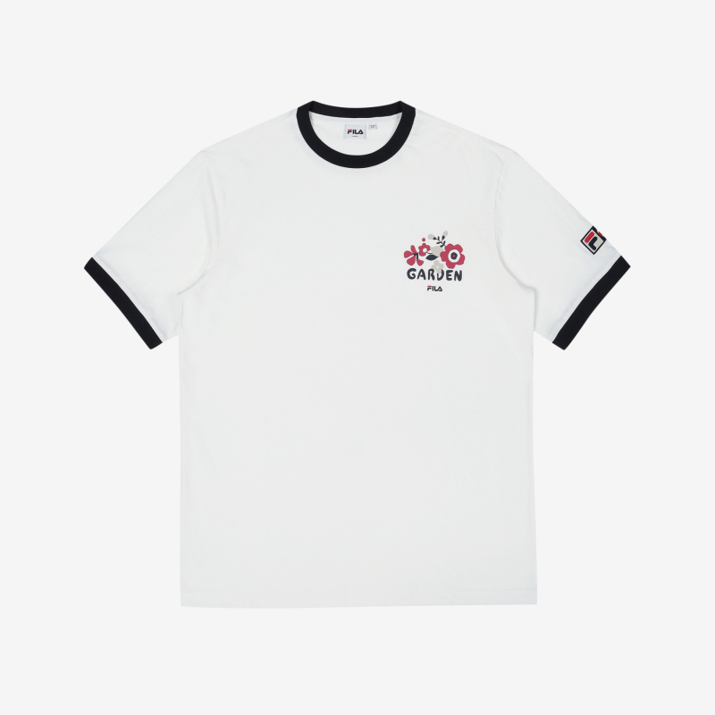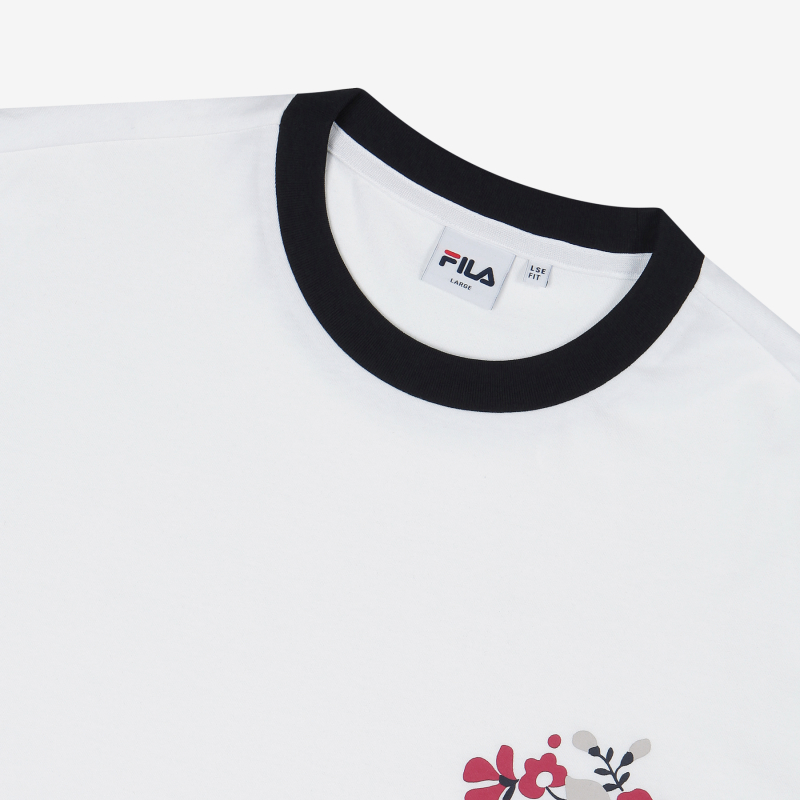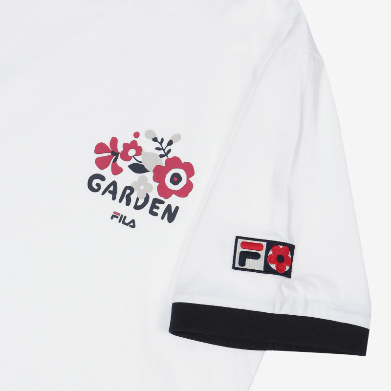 韩国F家斐乐韩国花卉纺织品制成圆形宽松短袖S2RSC2T02X_OWHJPY带授权招加盟代理