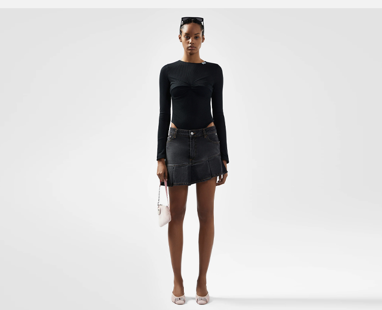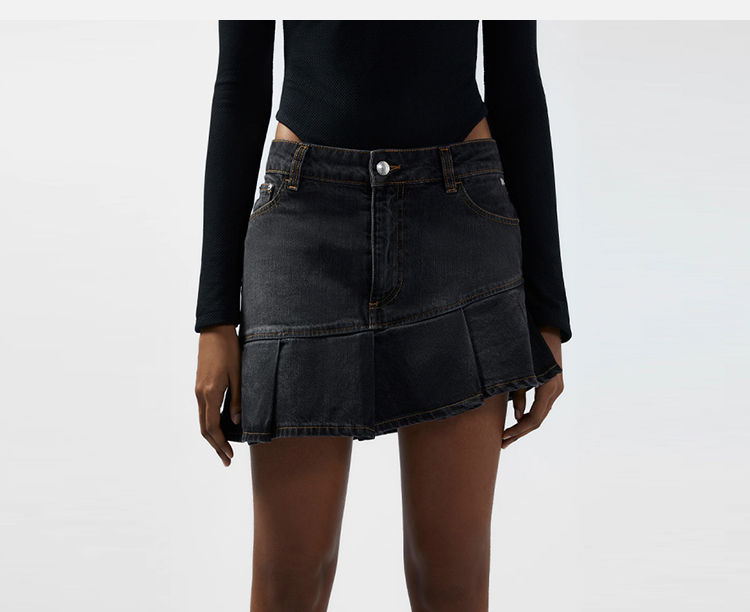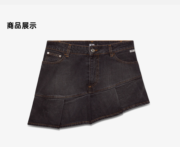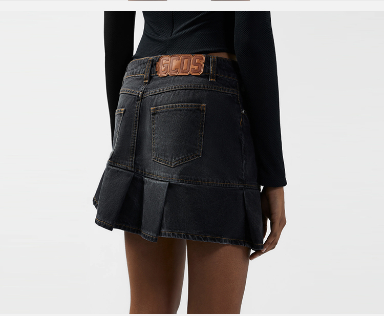 GCDS 女士字母徽标贴片棉质褶饰石洗牛仔迷你裙 黑色 A2OW3202DA0 99