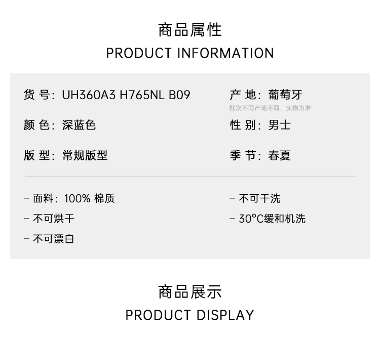 ZEGNA 杰尼亚 男士棉质圆领短袖T恤 深蓝色 UH360A3 H765NL B09