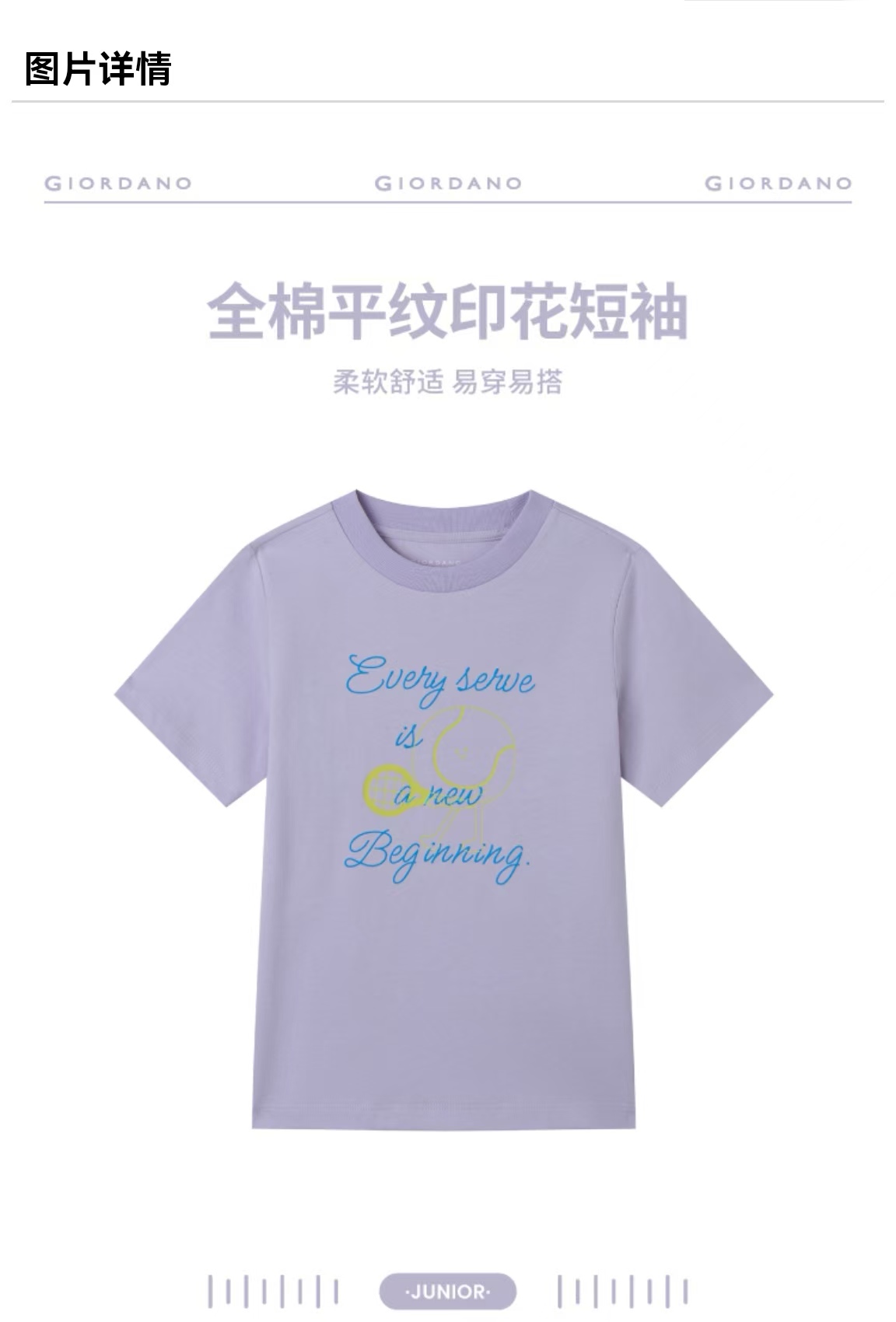 佐丹奴童装26年新款全棉平纹印花短袖T恤衫03396201
