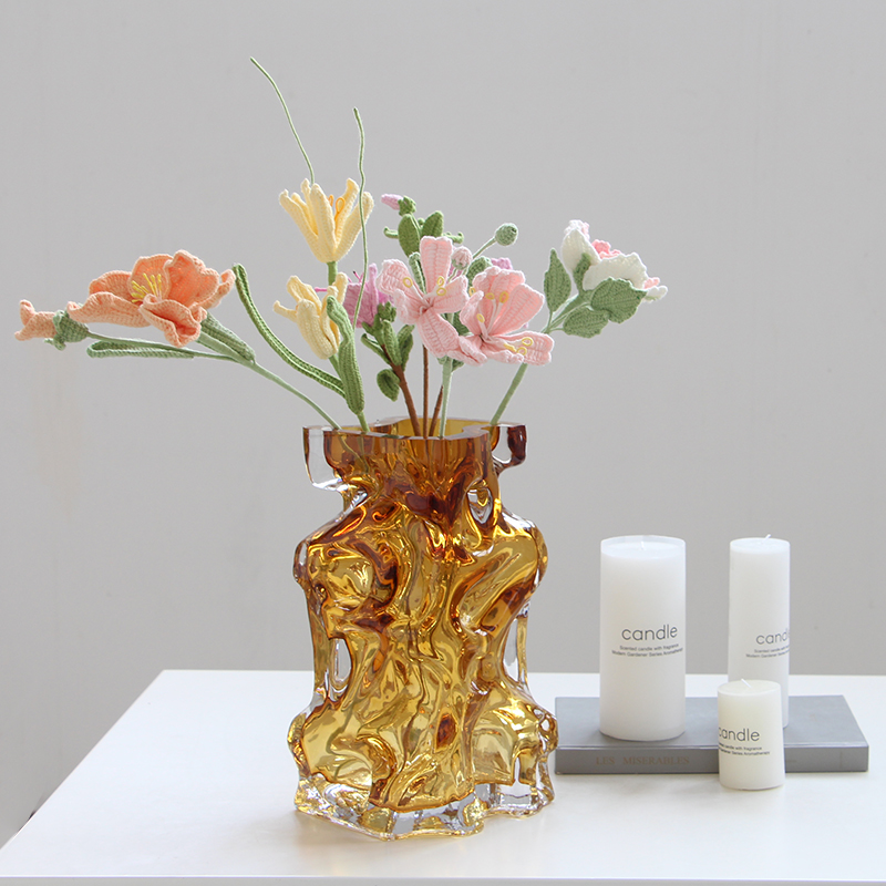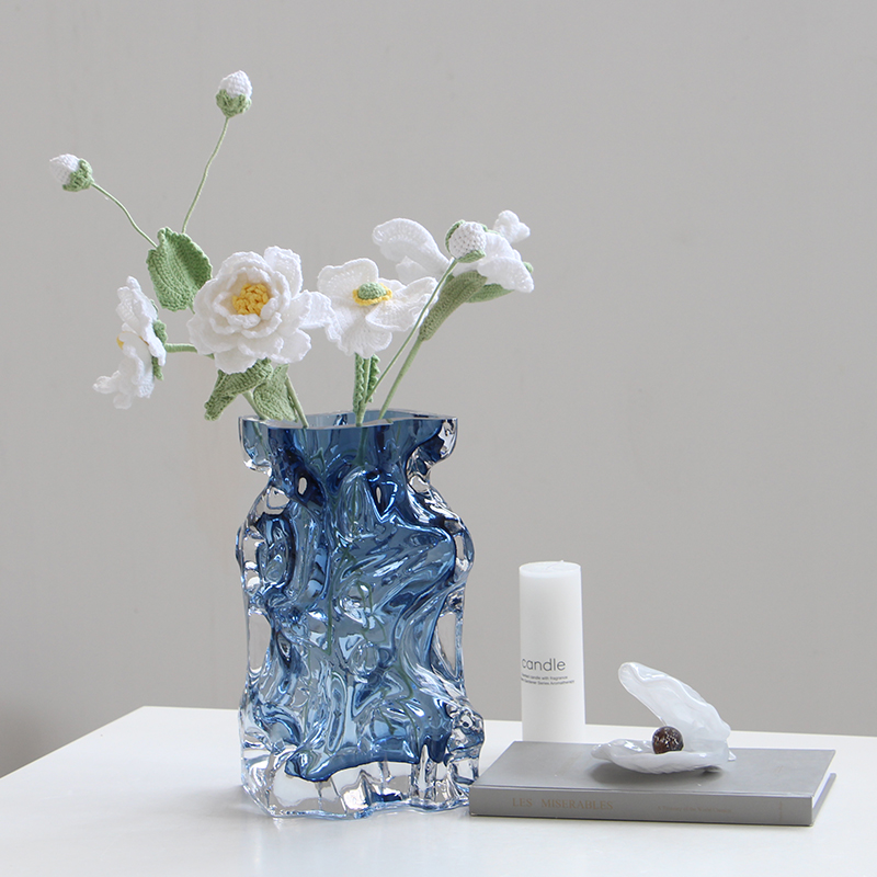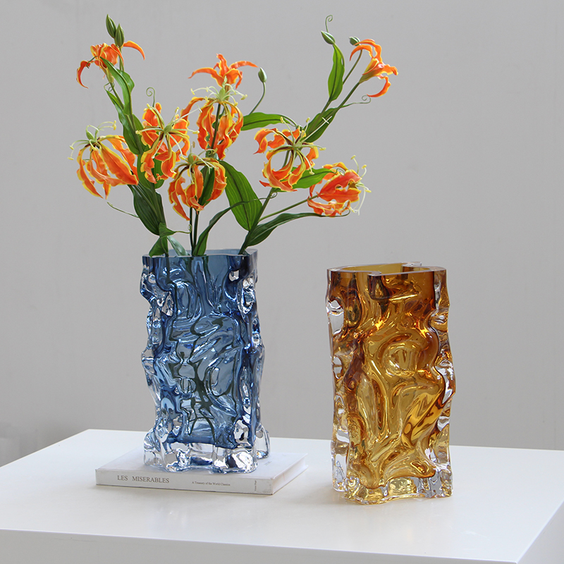 北欧高级感方口彩色水晶厚底玻璃花瓶居家桌面百合水培软装装饰品