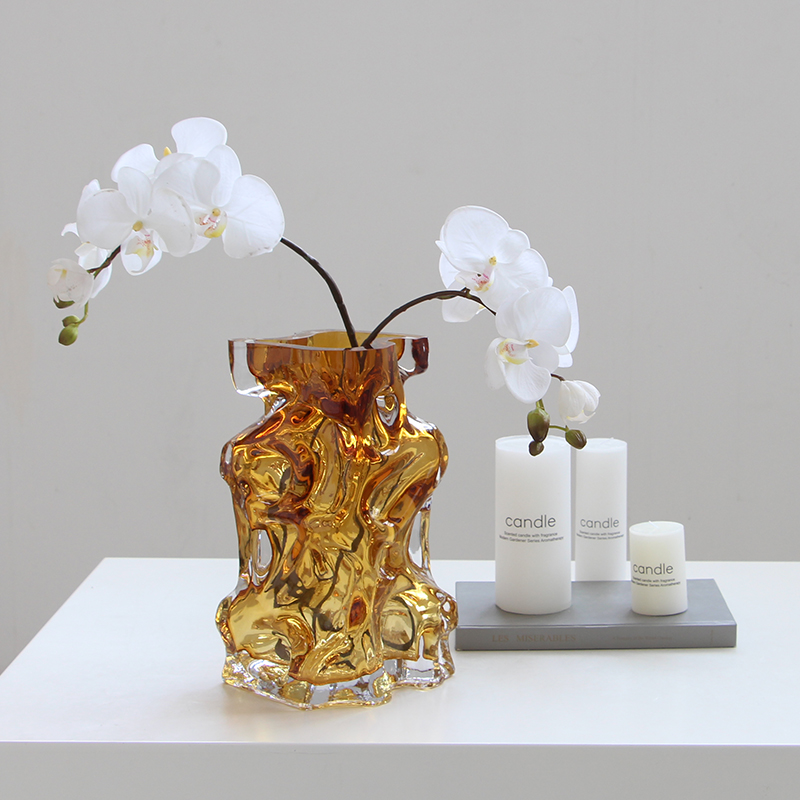 碧轩西班牙手工彩色透明大玻璃花瓶摆件样板间陈列落地花器家居装饰