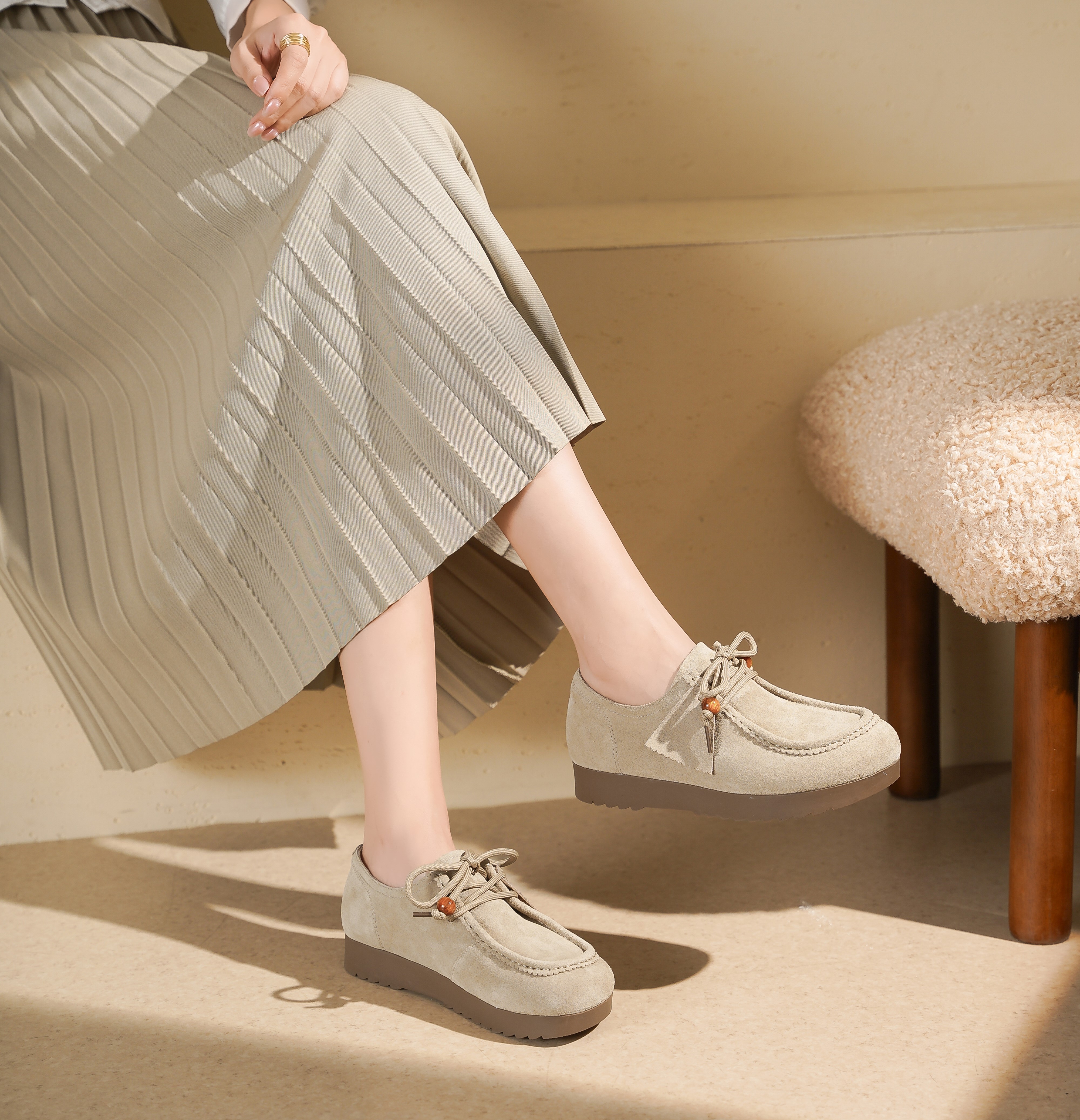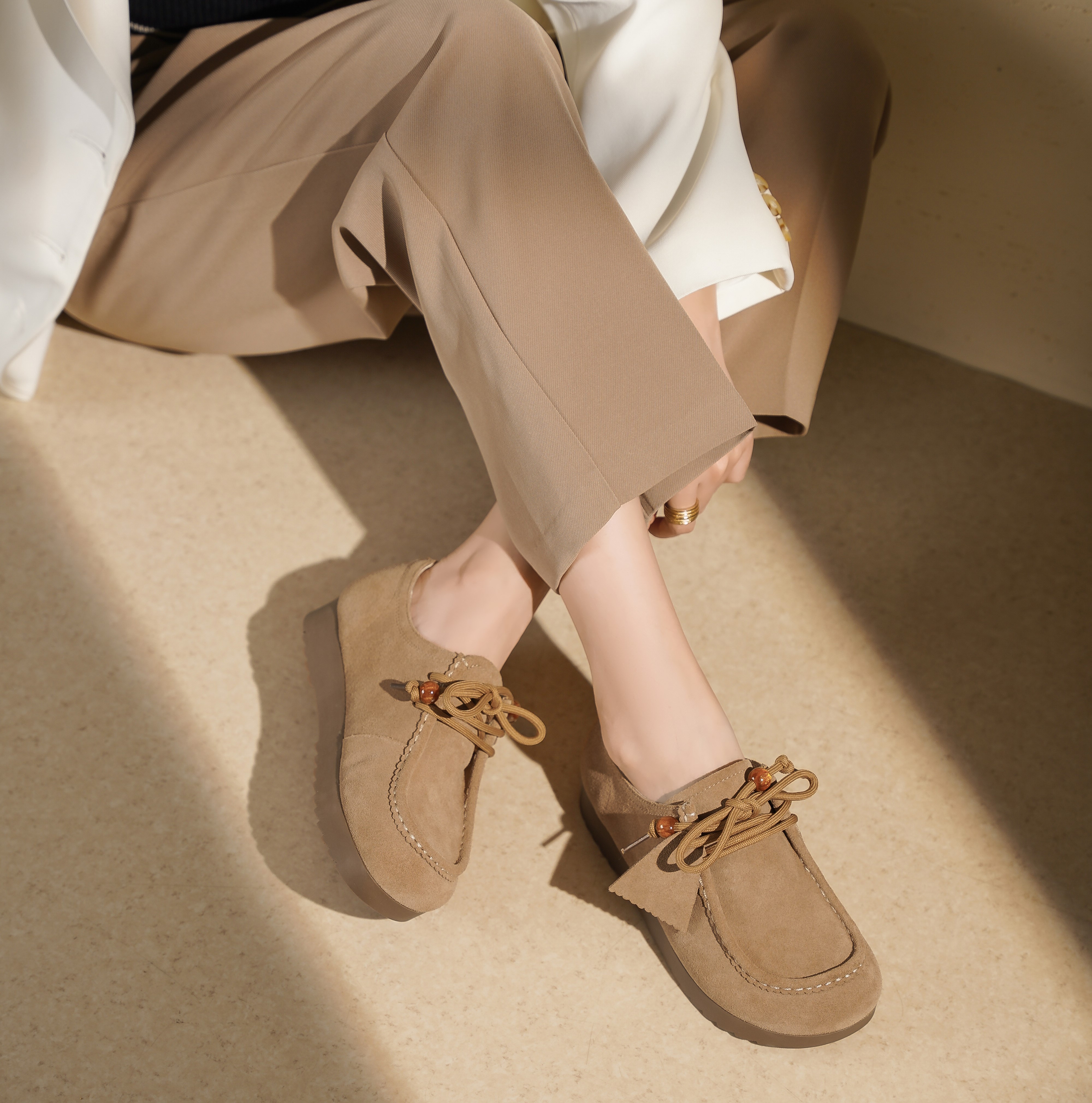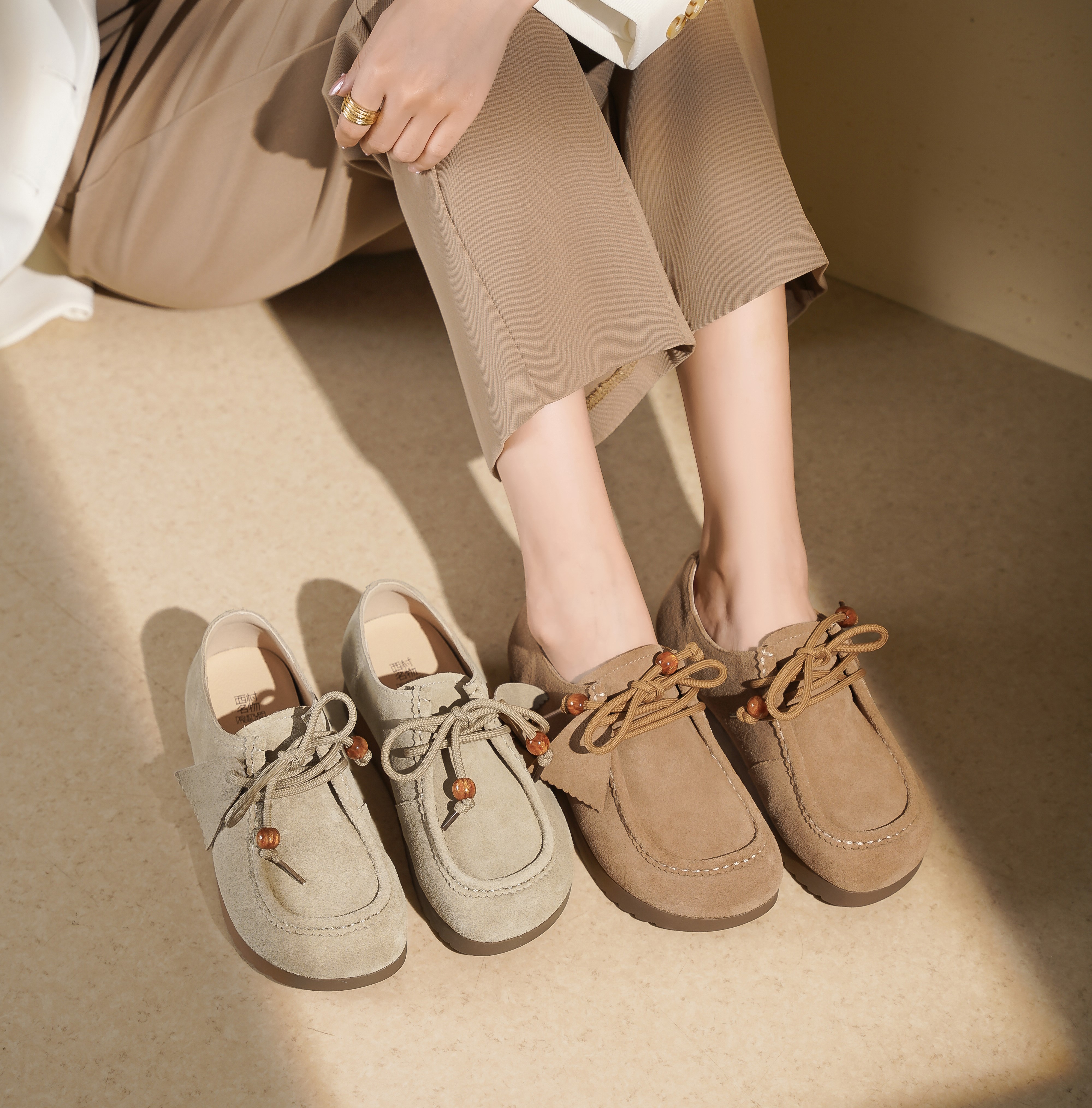 【秋季新款】西村名物2025年秋季新款小方头舒软平底深口单鞋系带乐福鞋X25CM30351