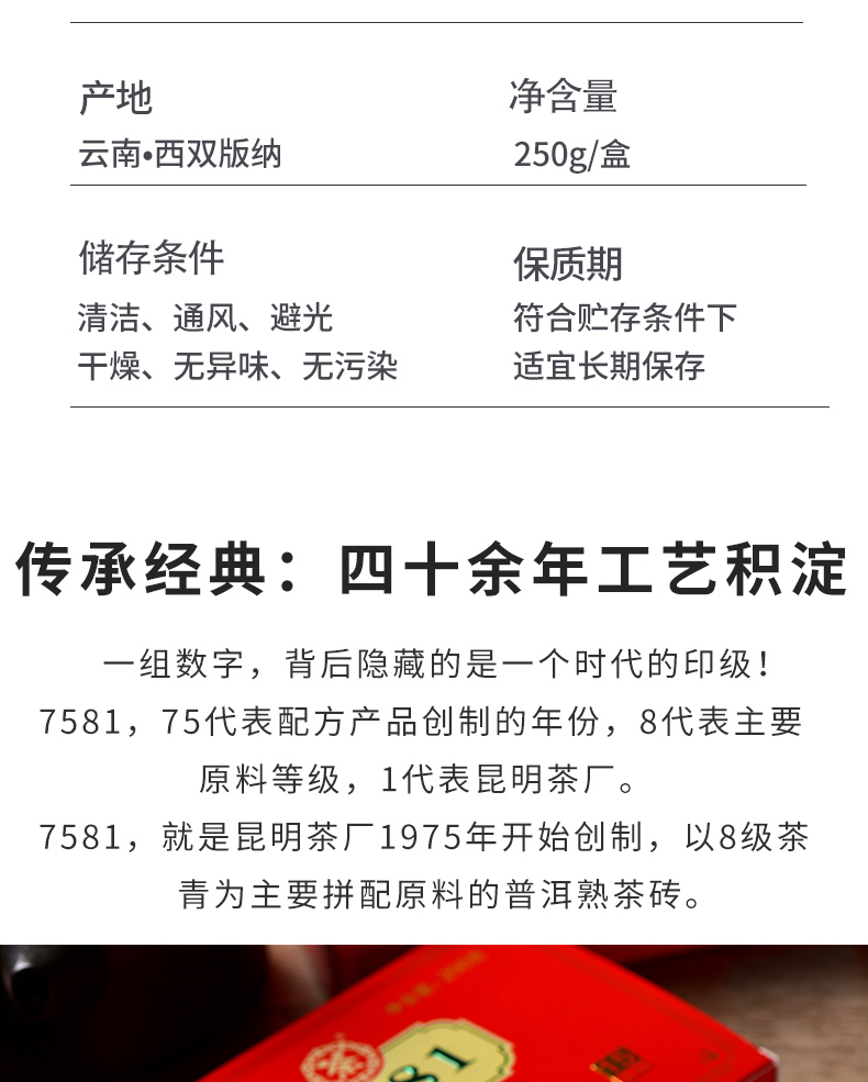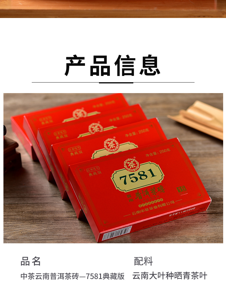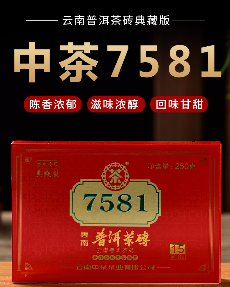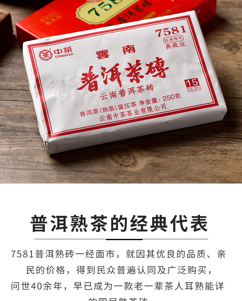 中茶普洱2020年经典7581十五年陈典藏版普洱茶熟茶250g/盒