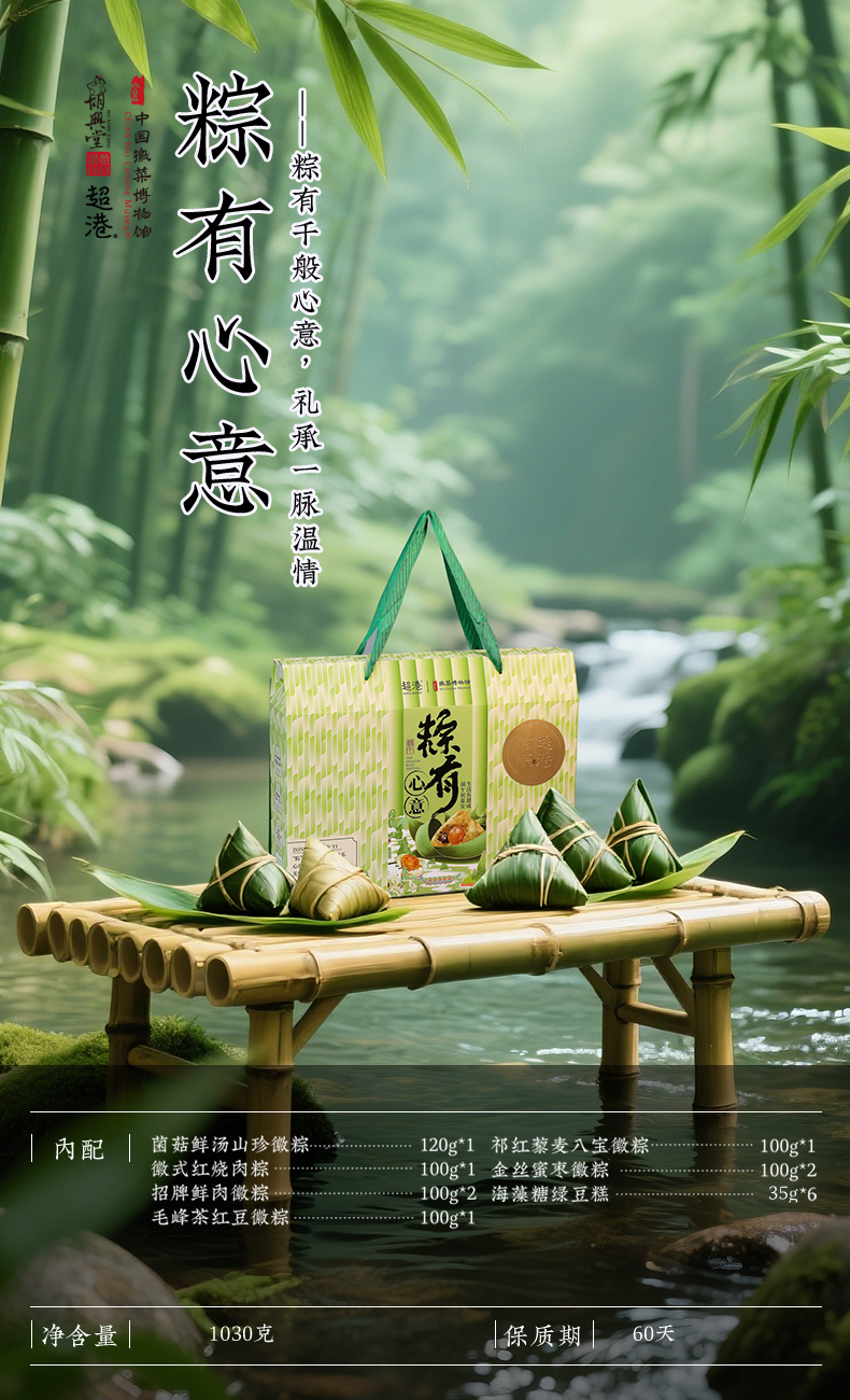 超港 粽有心意1030g 6味8粽6糕 胡兴堂端午粽子礼盒节日礼品 48小时发货