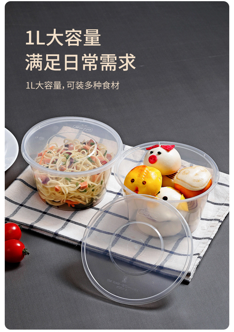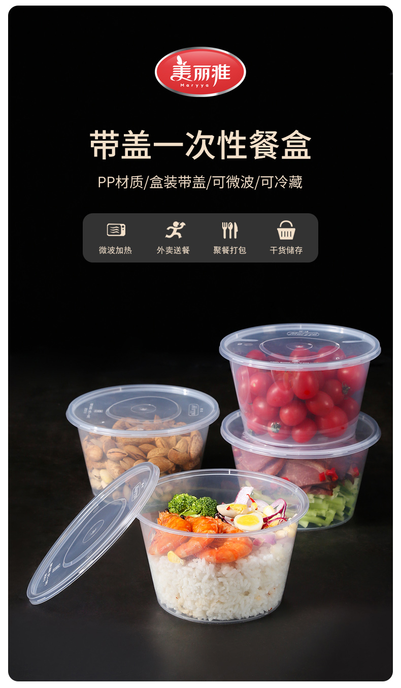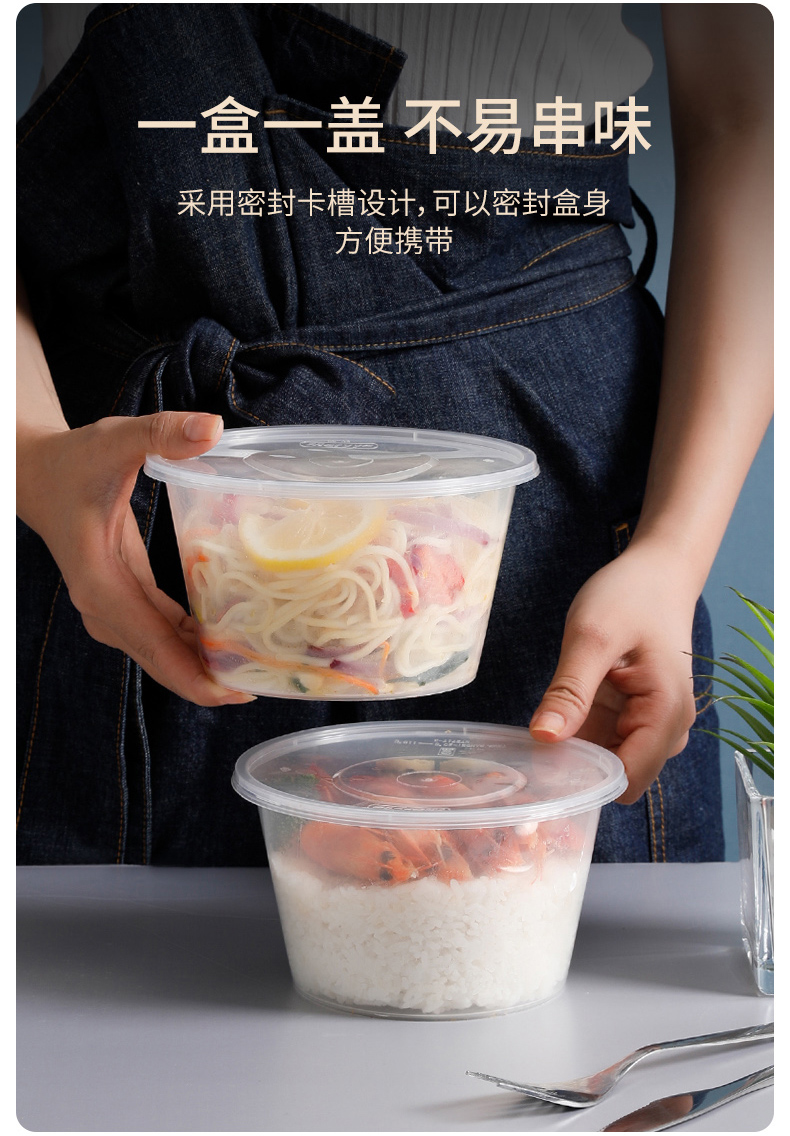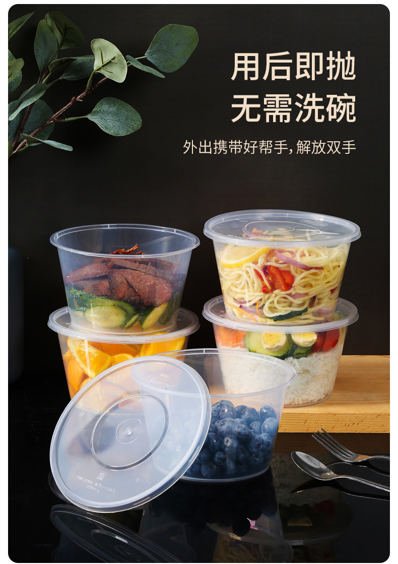 【批发】美丽雅一次性碗圆形带盖餐盒一次性餐具外卖打包盒碗密封加厚家用