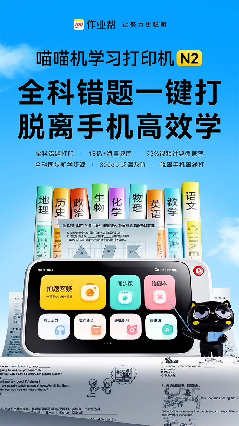 超大64G内存喵喵机【N2pro 博学版】无需手机即拍即印 拍搜解答视屏讲解 同步视频课免费看