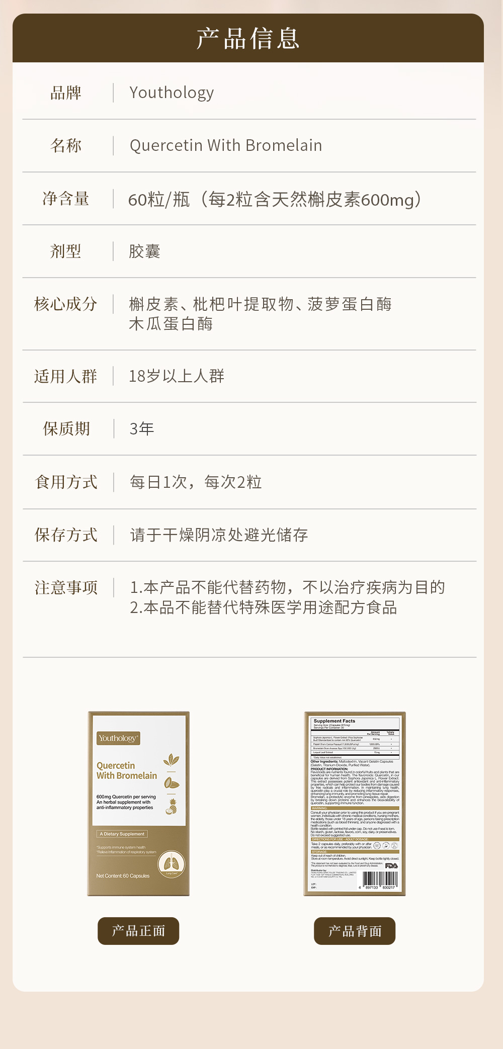 【双11】Youthology 槲皮素硬胶囊 60粒/瓶