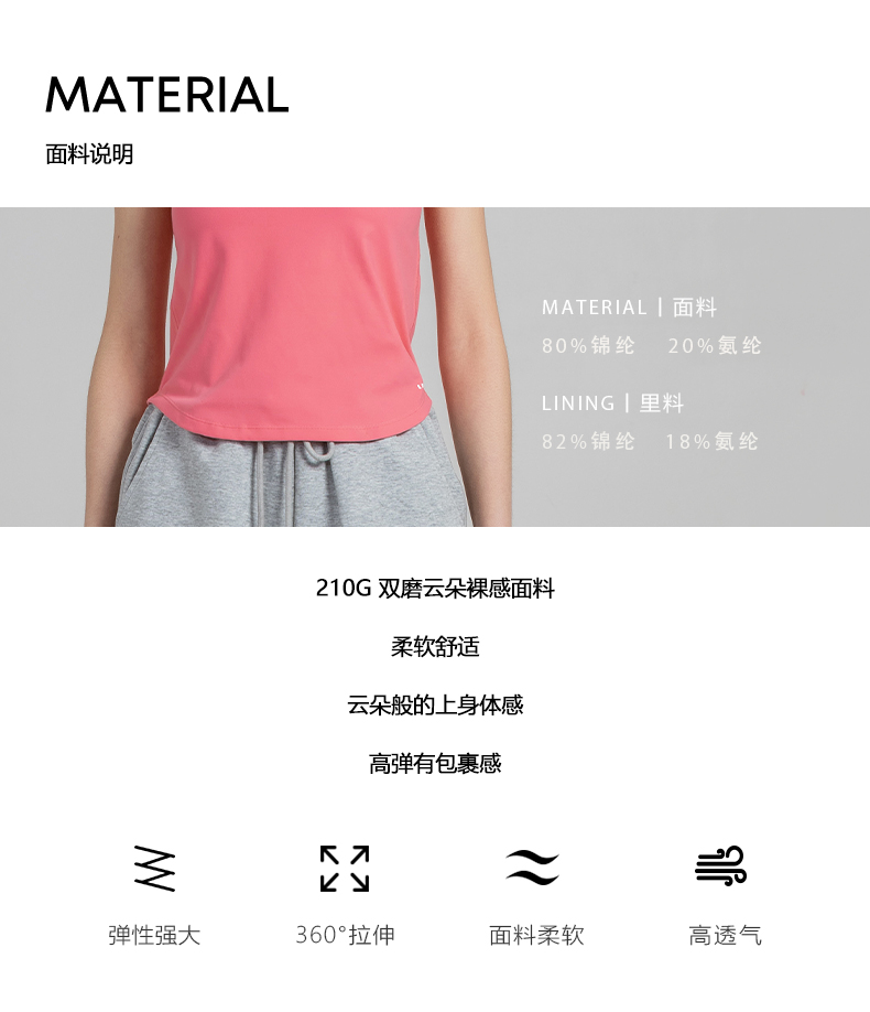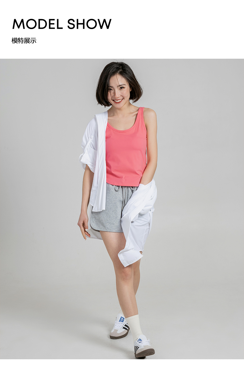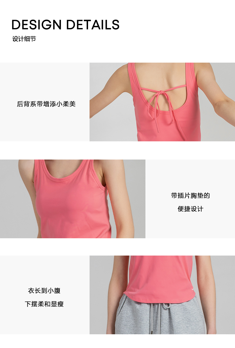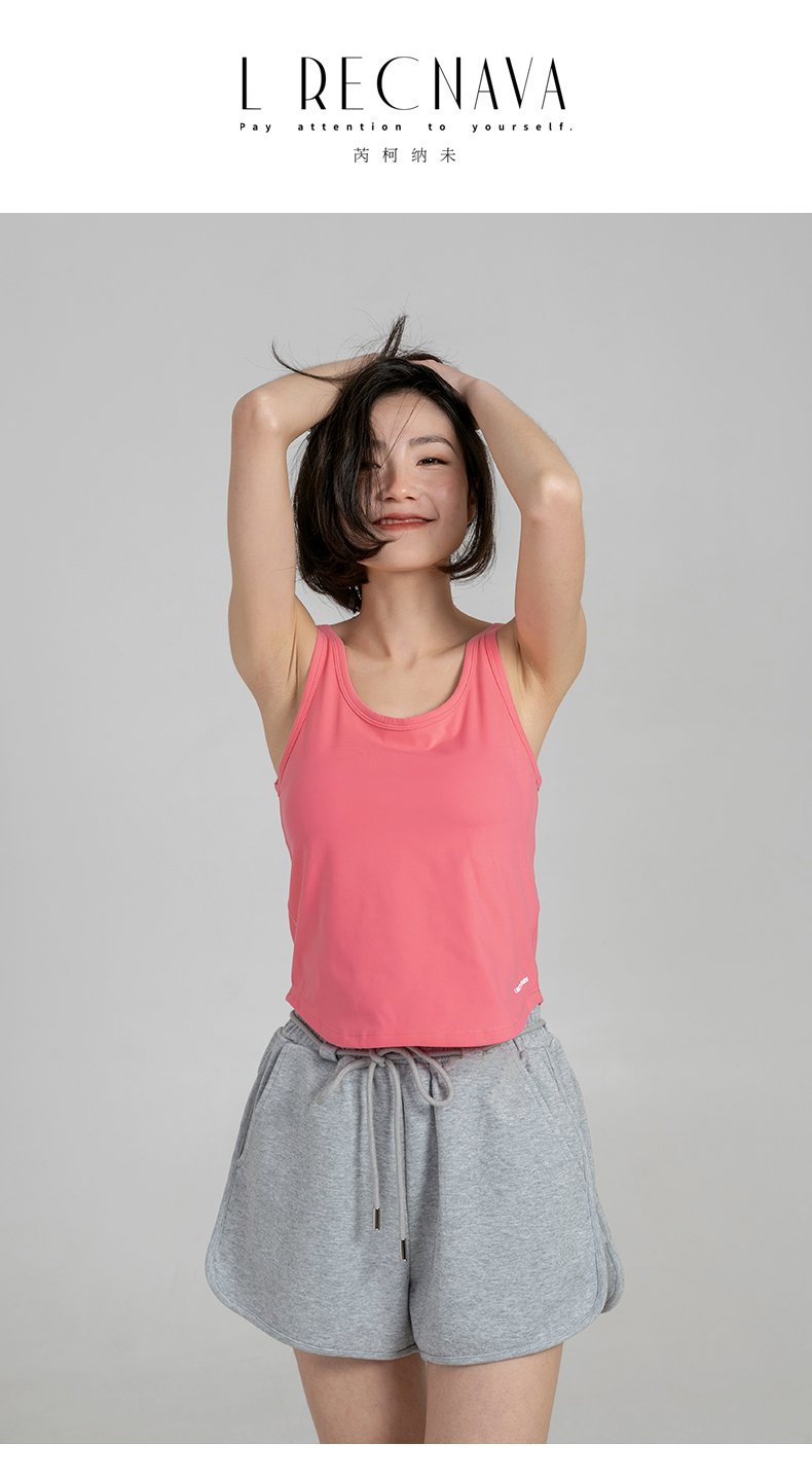 L RECNAVA [冰感螺纹] 可拆卸胸垫背心 拼接显瘦运动休闲背心上衣