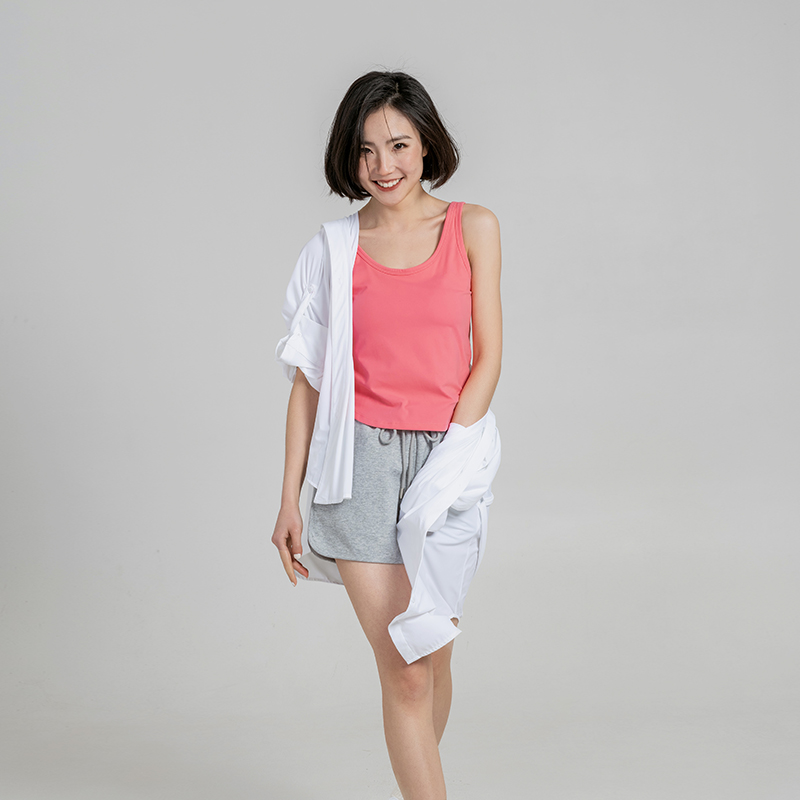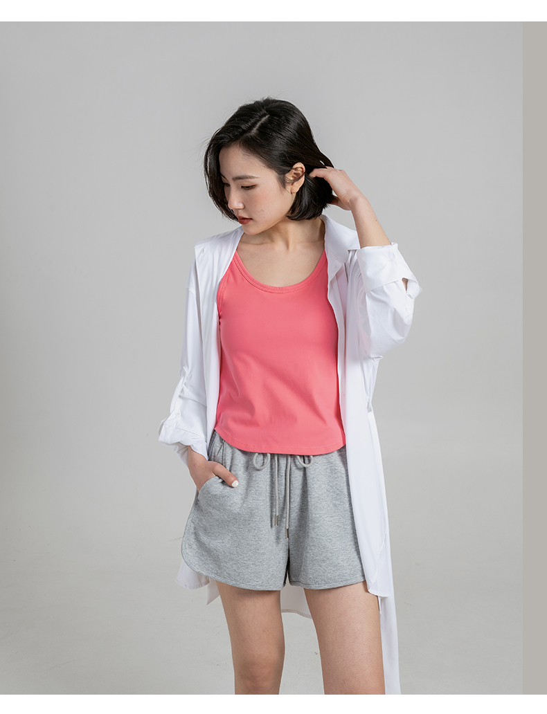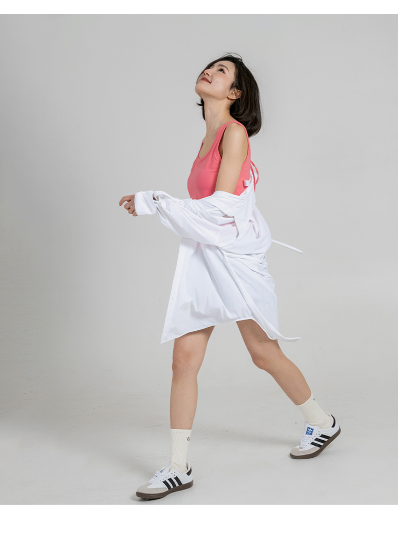 L RECNAVA [裸感磨毛] 背后系带带胸垫小圆摆背心
