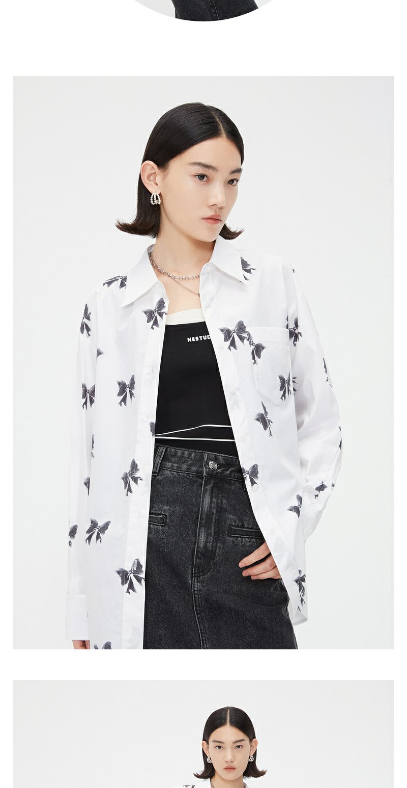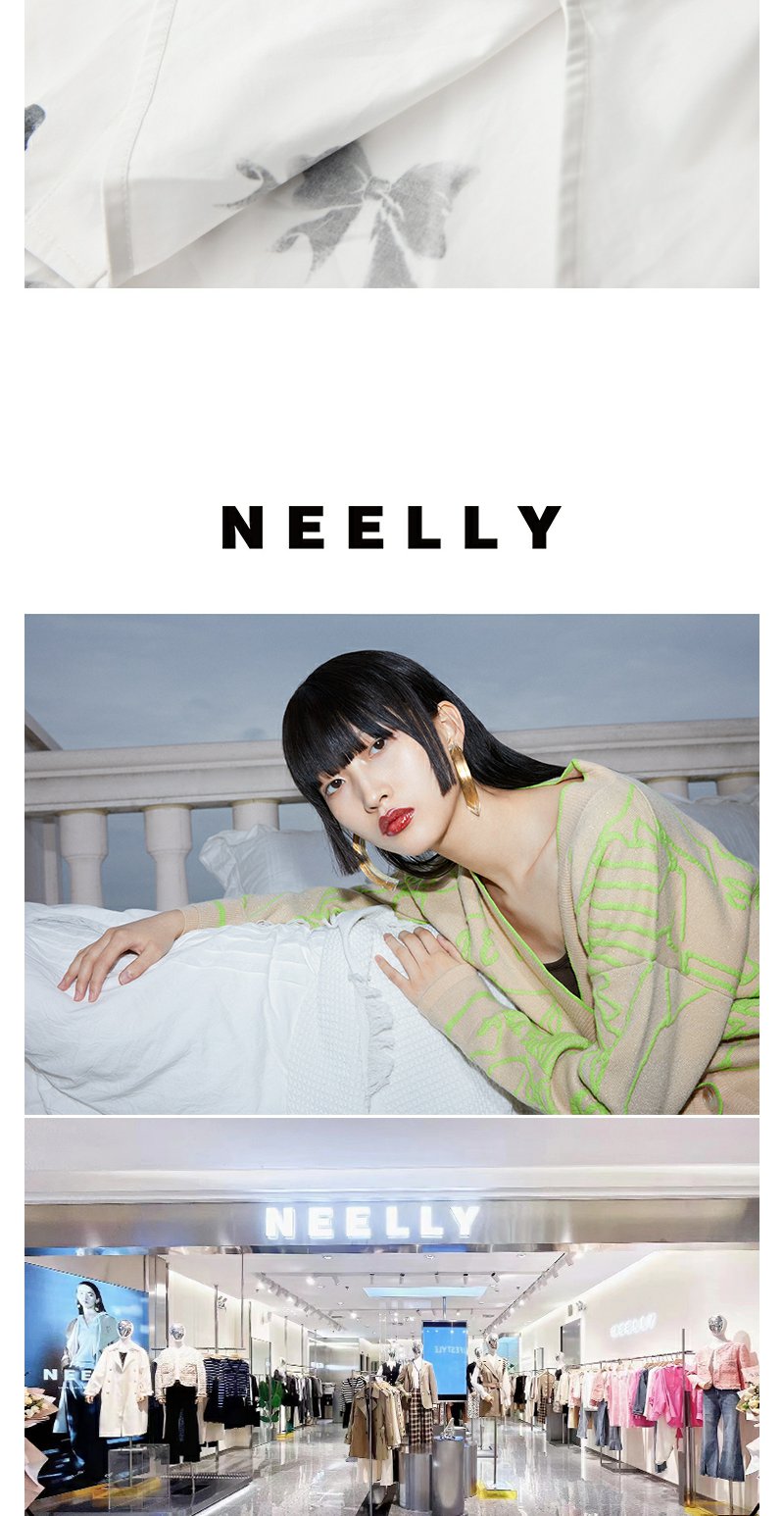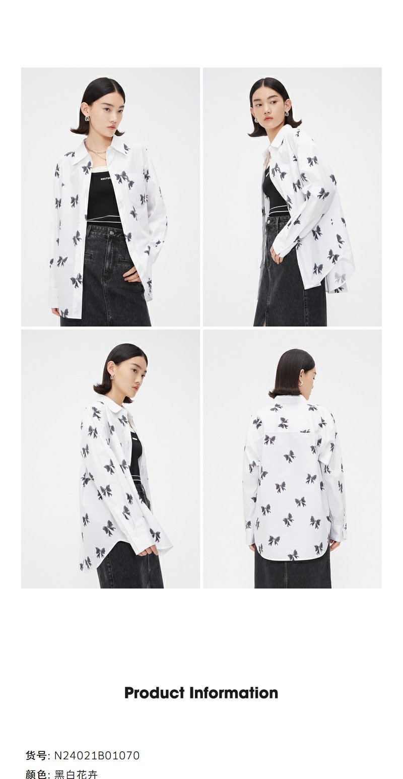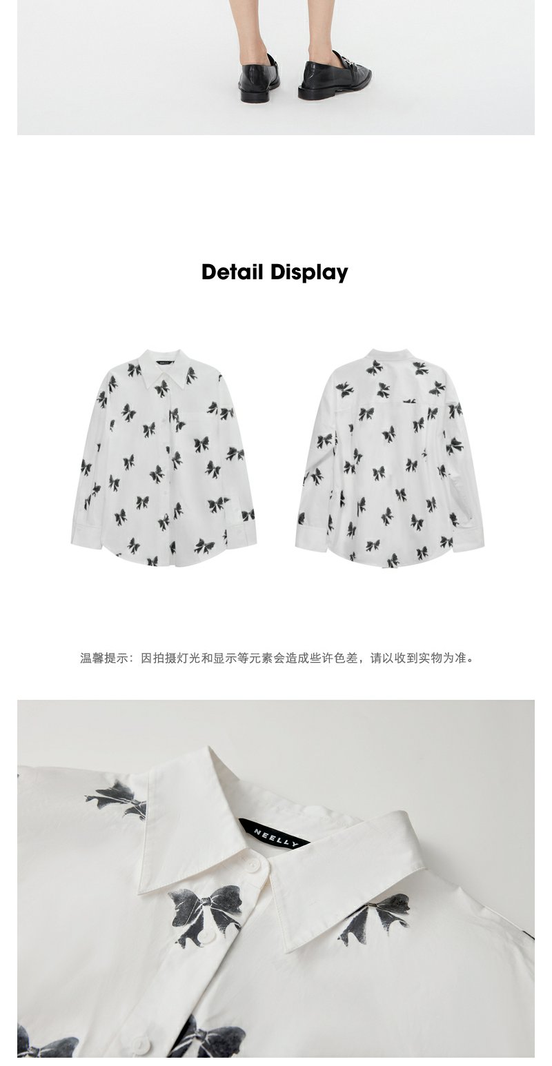 NEELLY纳俪商场同款春季纯棉衬衣女时尚撞色印花宽松翻领长袖外套N24021B01070