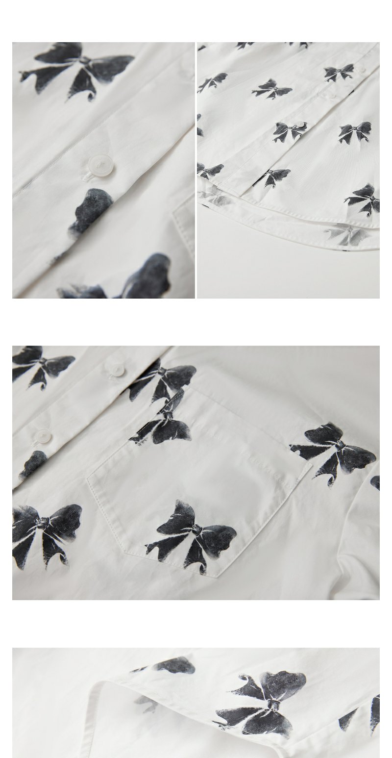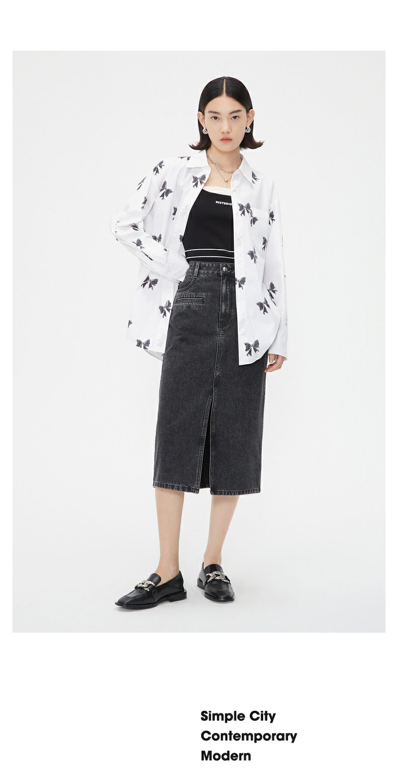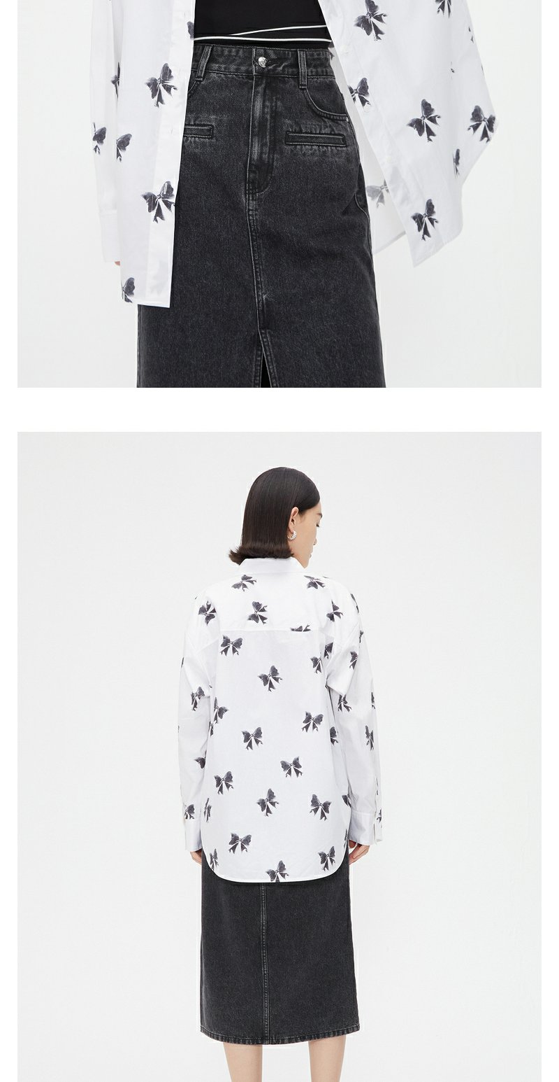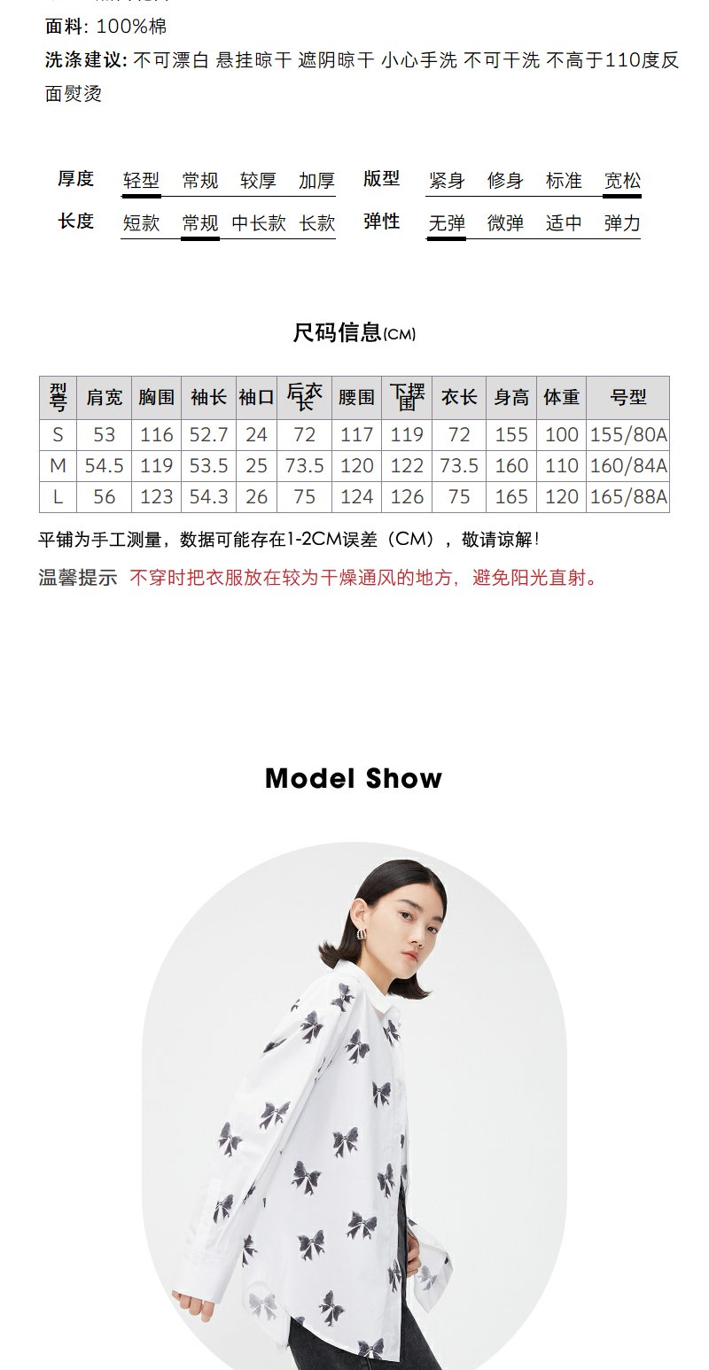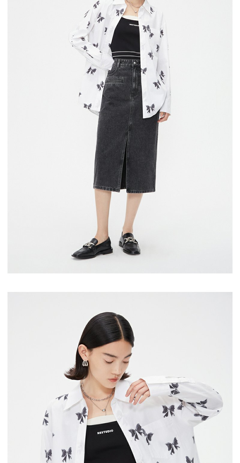 NEELLY纳俪商场同款春季纯棉衬衣女时尚撞色印花宽松翻领长袖外套N24021B01070