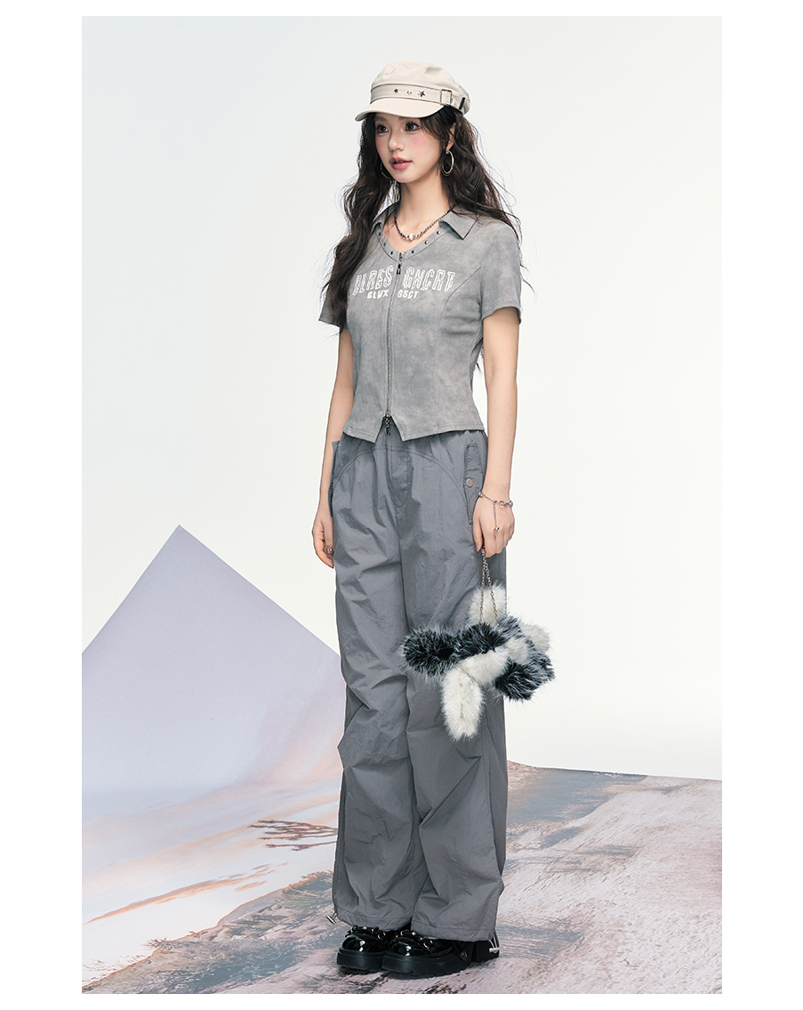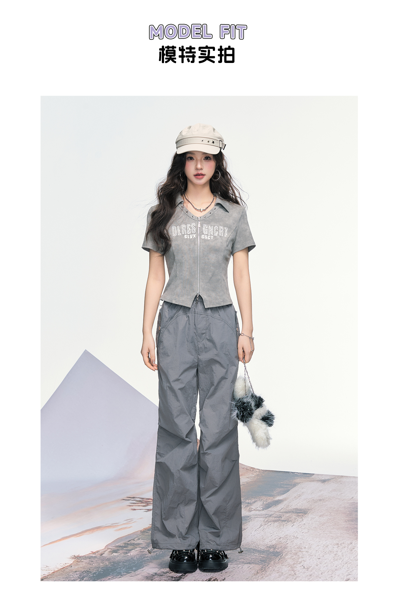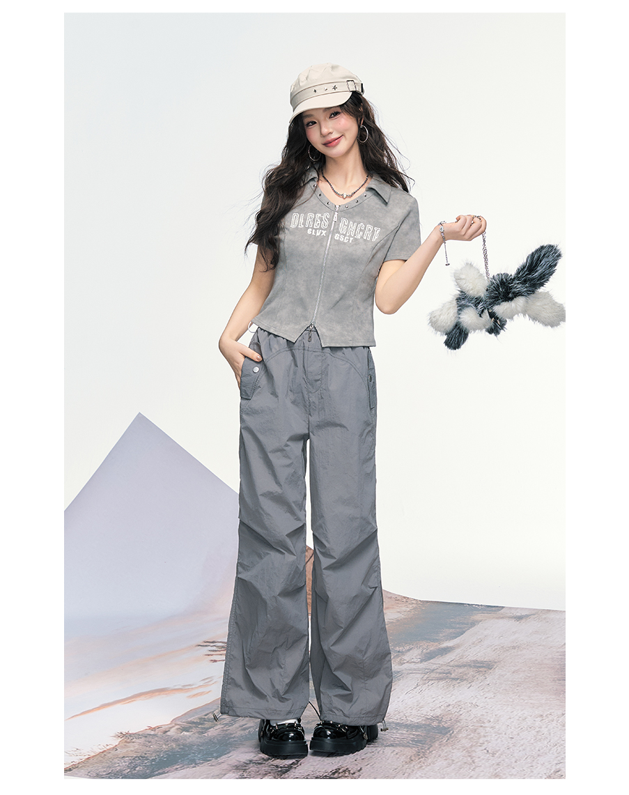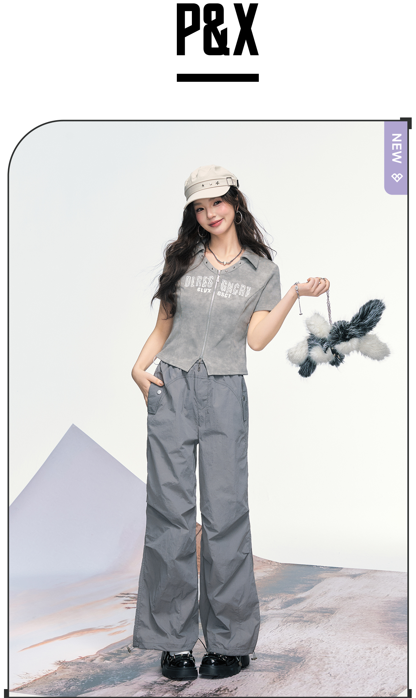 P&X设计师女装 夏季新款宽松纯色梭织休闲长裤阔腿825209217 灰色