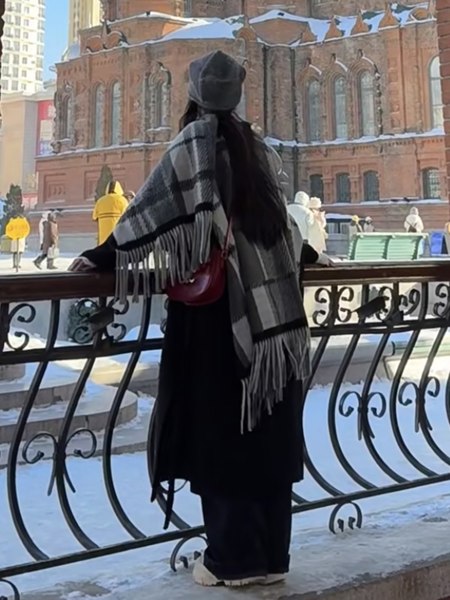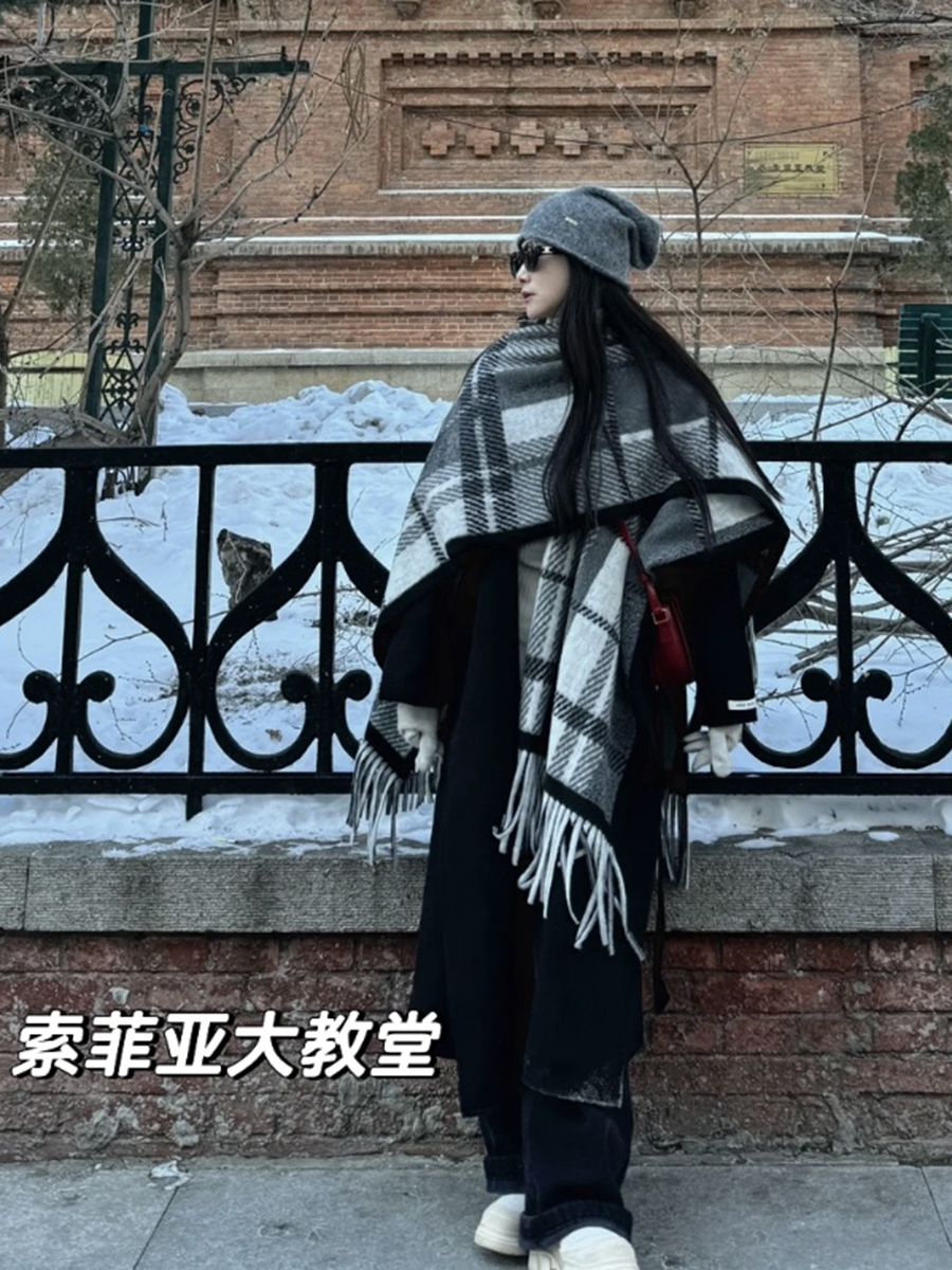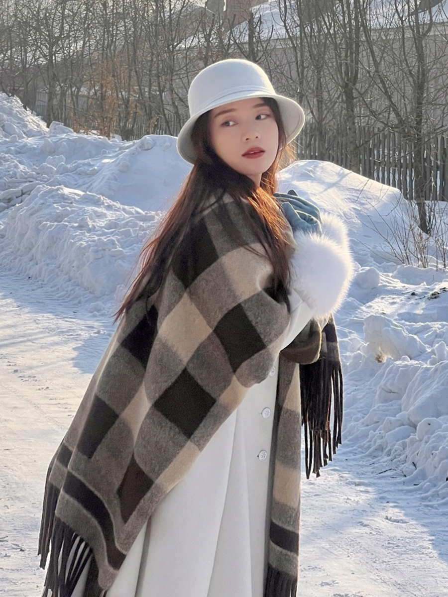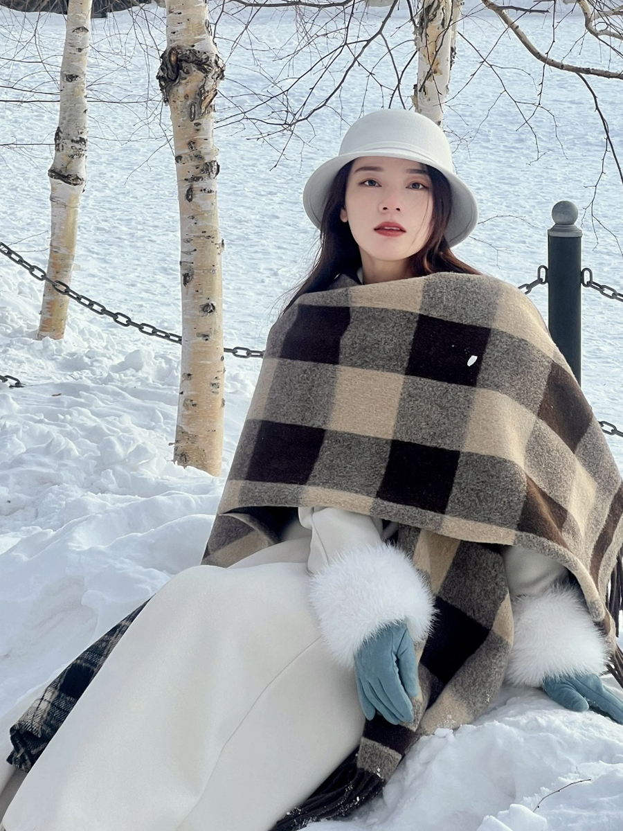 面料:100%涤纶尺寸:长152cm,宽110cm版型:超大长方形围巾特点:韩系风穿搭具显脸小冬日氛围感直接拉满