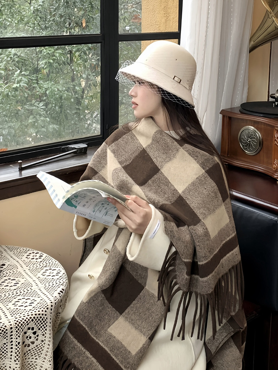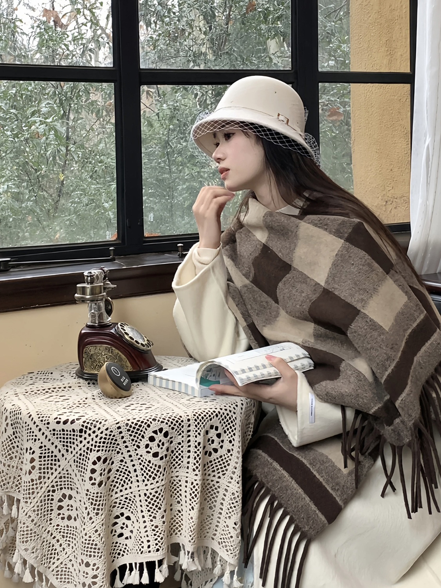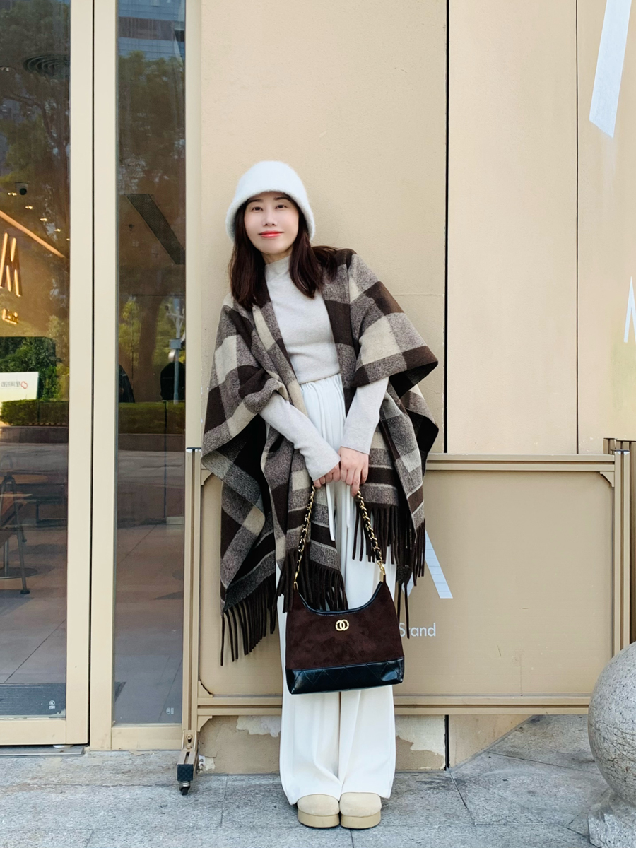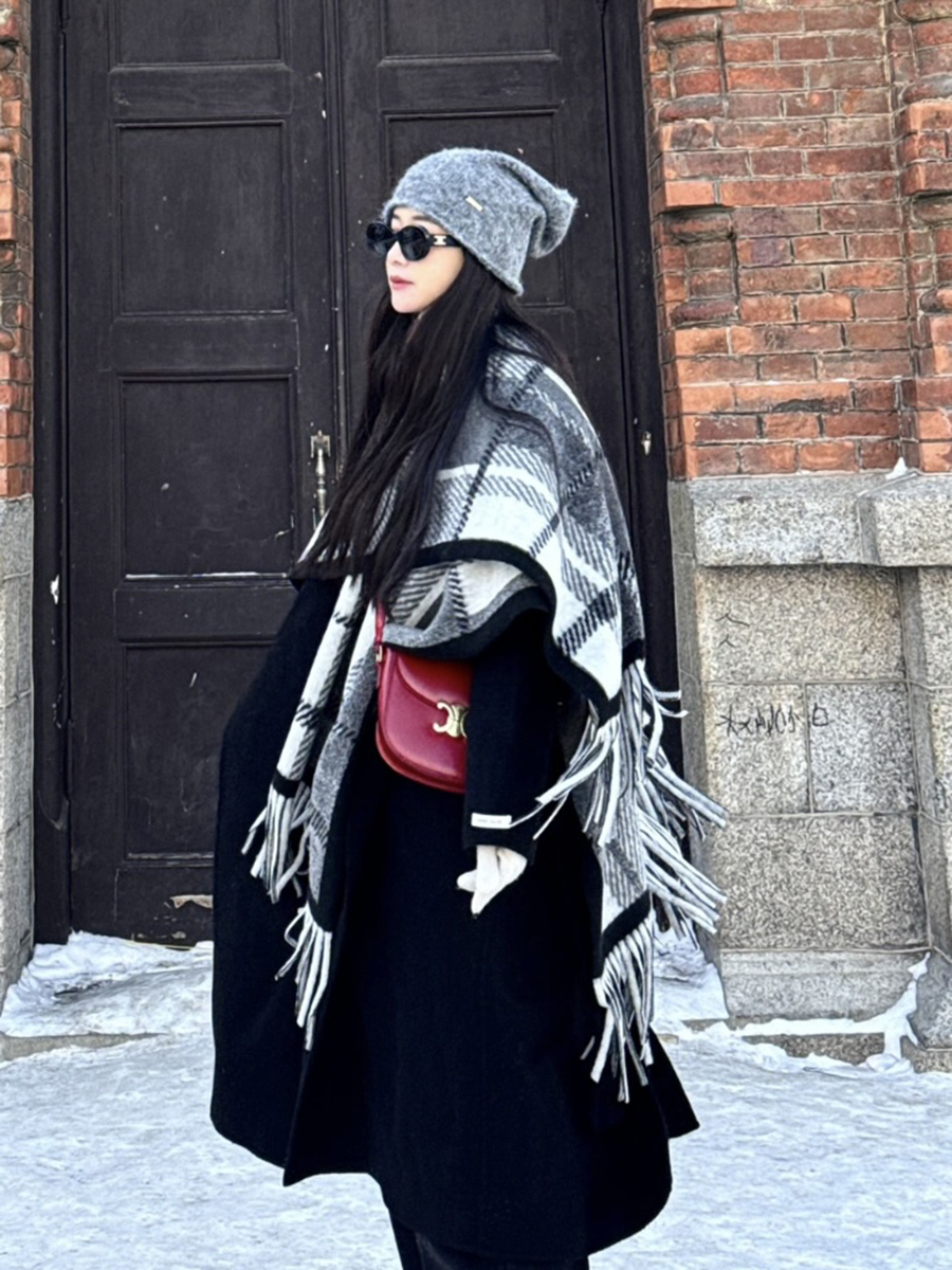 面料:100%涤纶尺寸:长152cm,宽110cm版型:超大长方形围巾特点:韩系风穿搭具显脸小冬日氛围感直接拉满