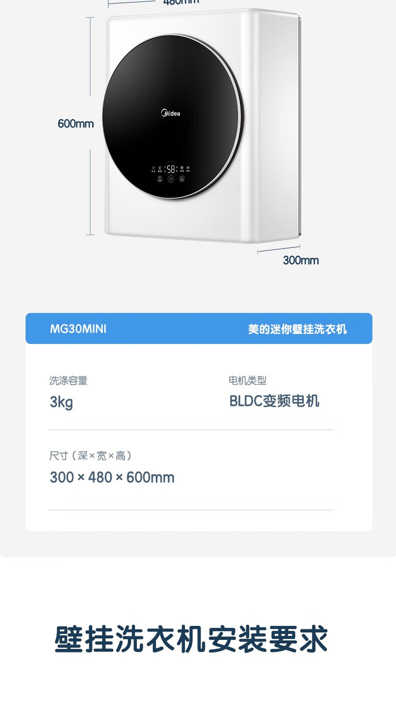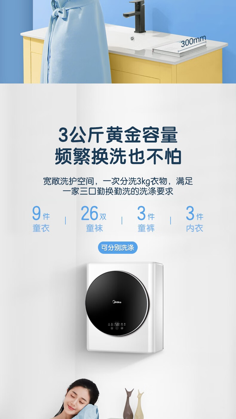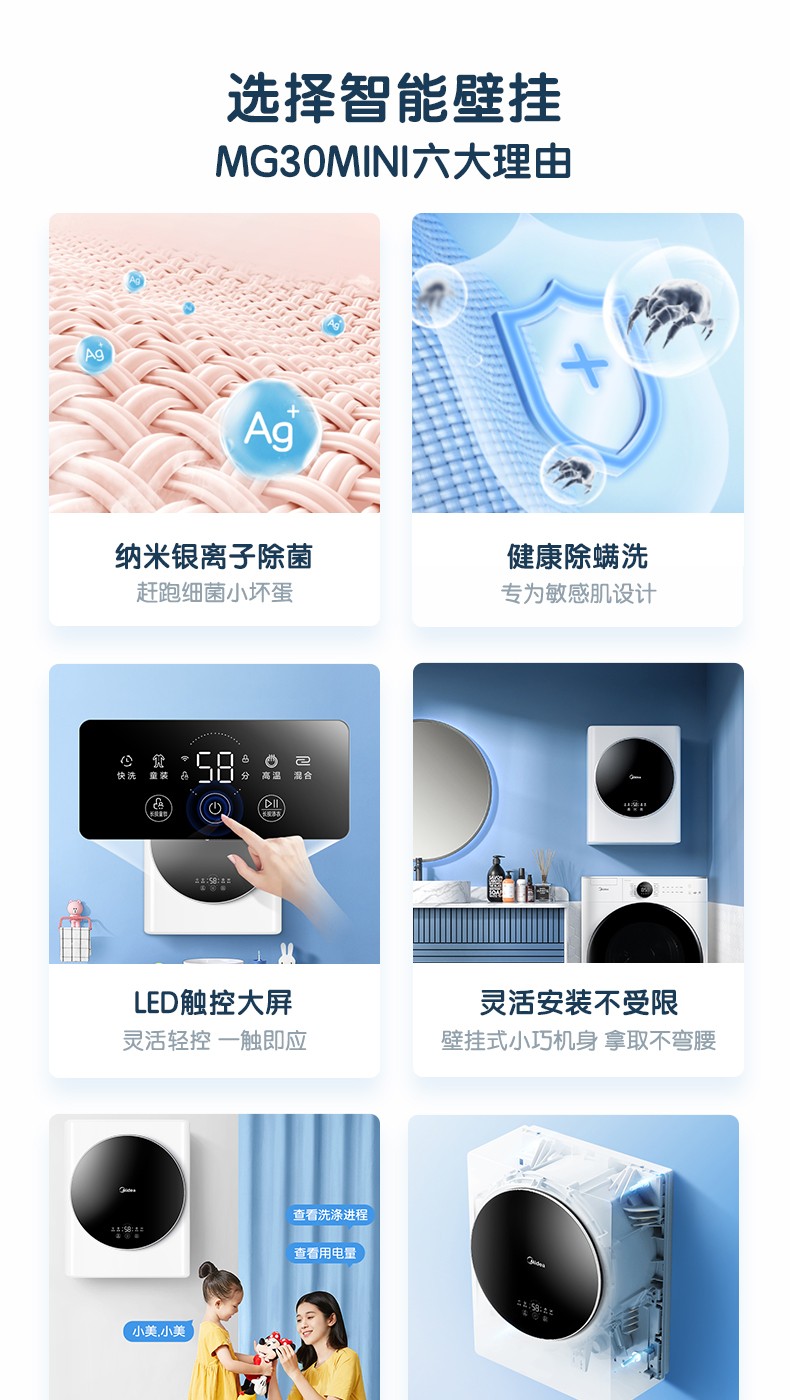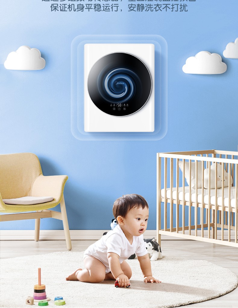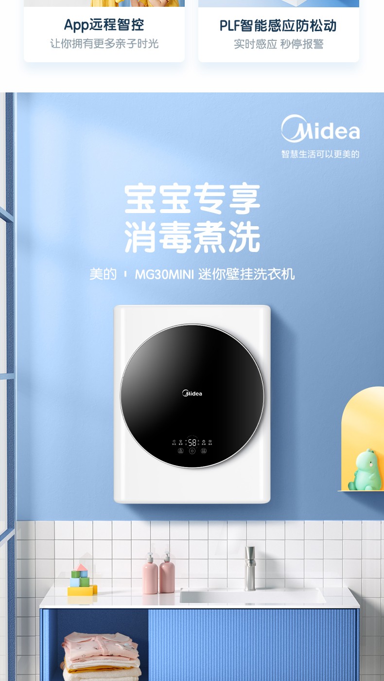 美的 MG30MINI 壁挂洗衣机 3KG迷你滚筒洗衣机全自动 智能家电内衣婴儿洗衣机