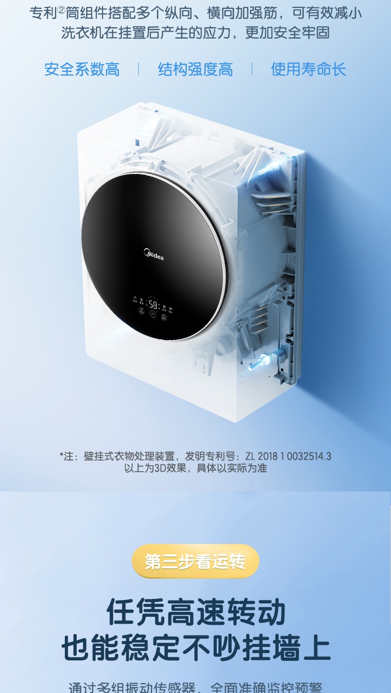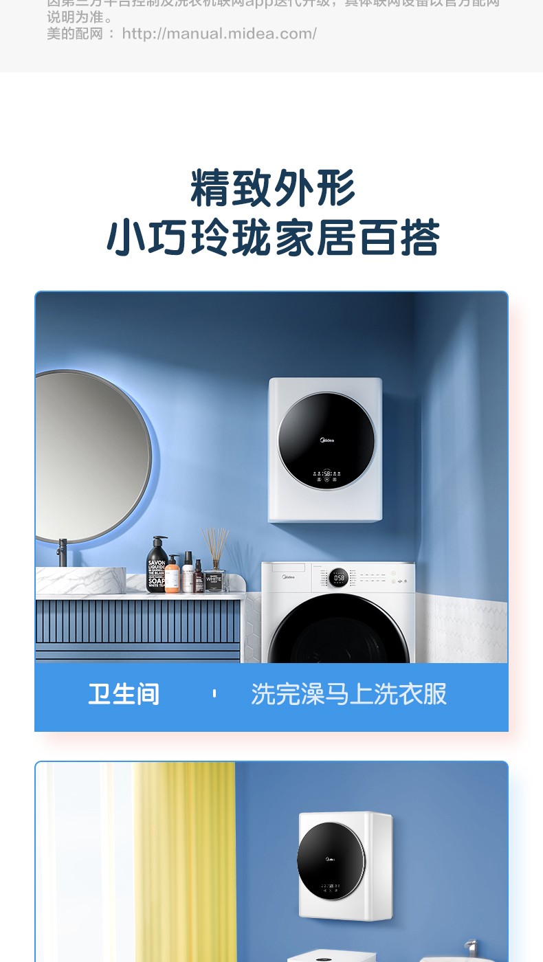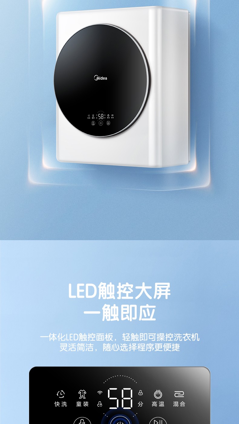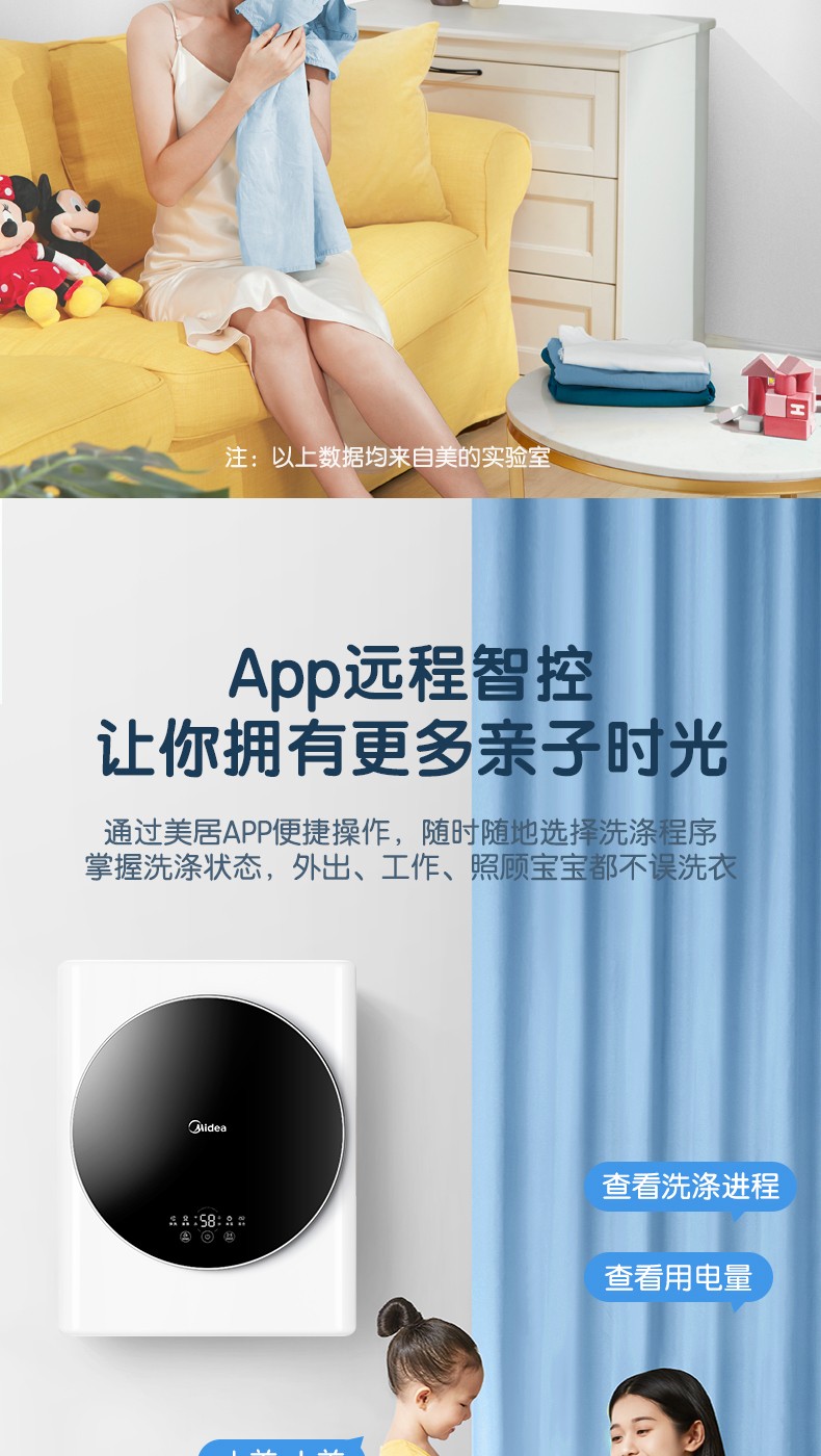 美的 MG30MINI 壁挂洗衣机 3KG迷你滚筒洗衣机全自动 智能家电内衣婴儿洗衣机