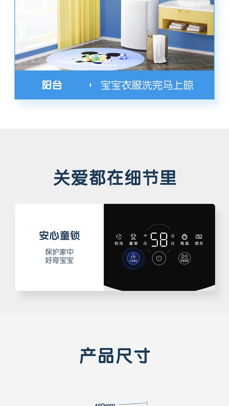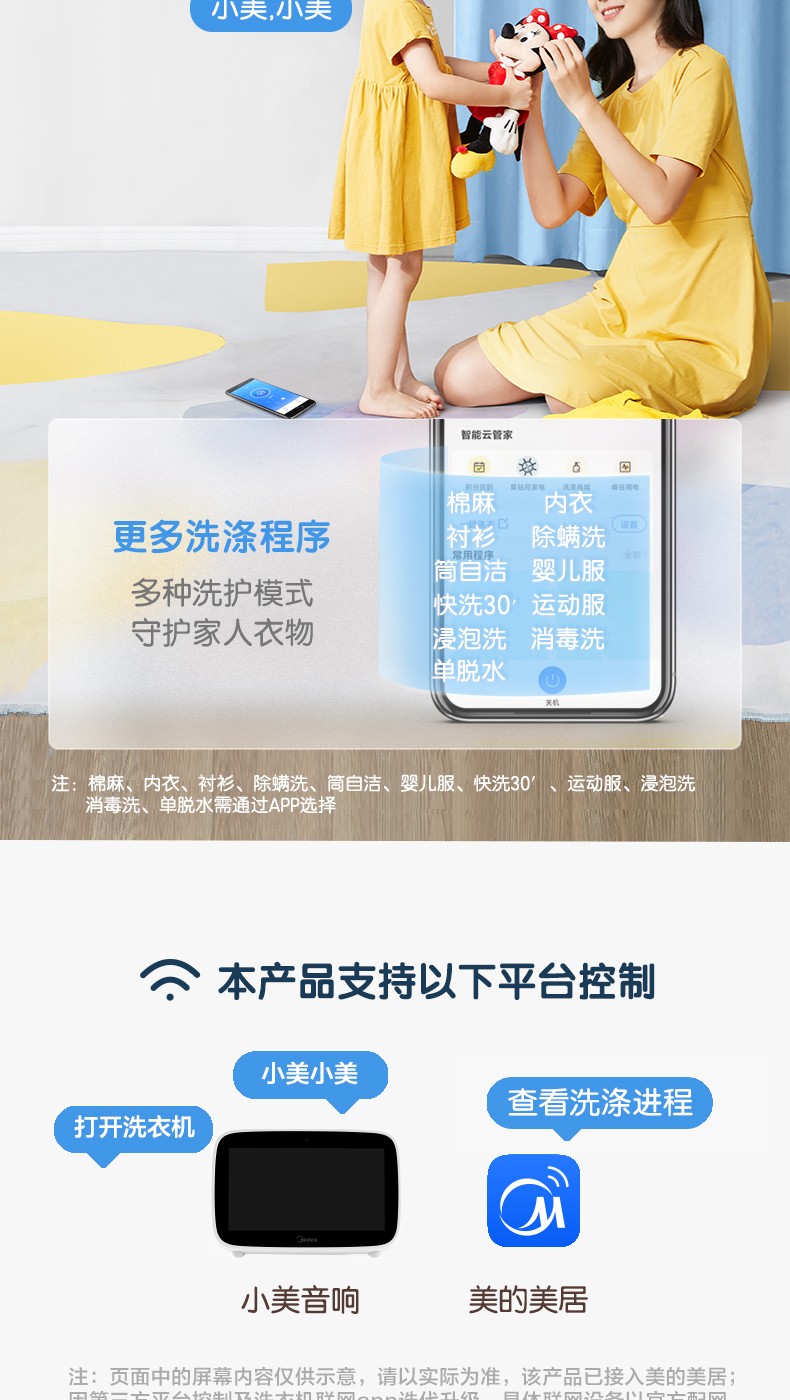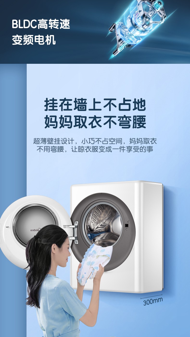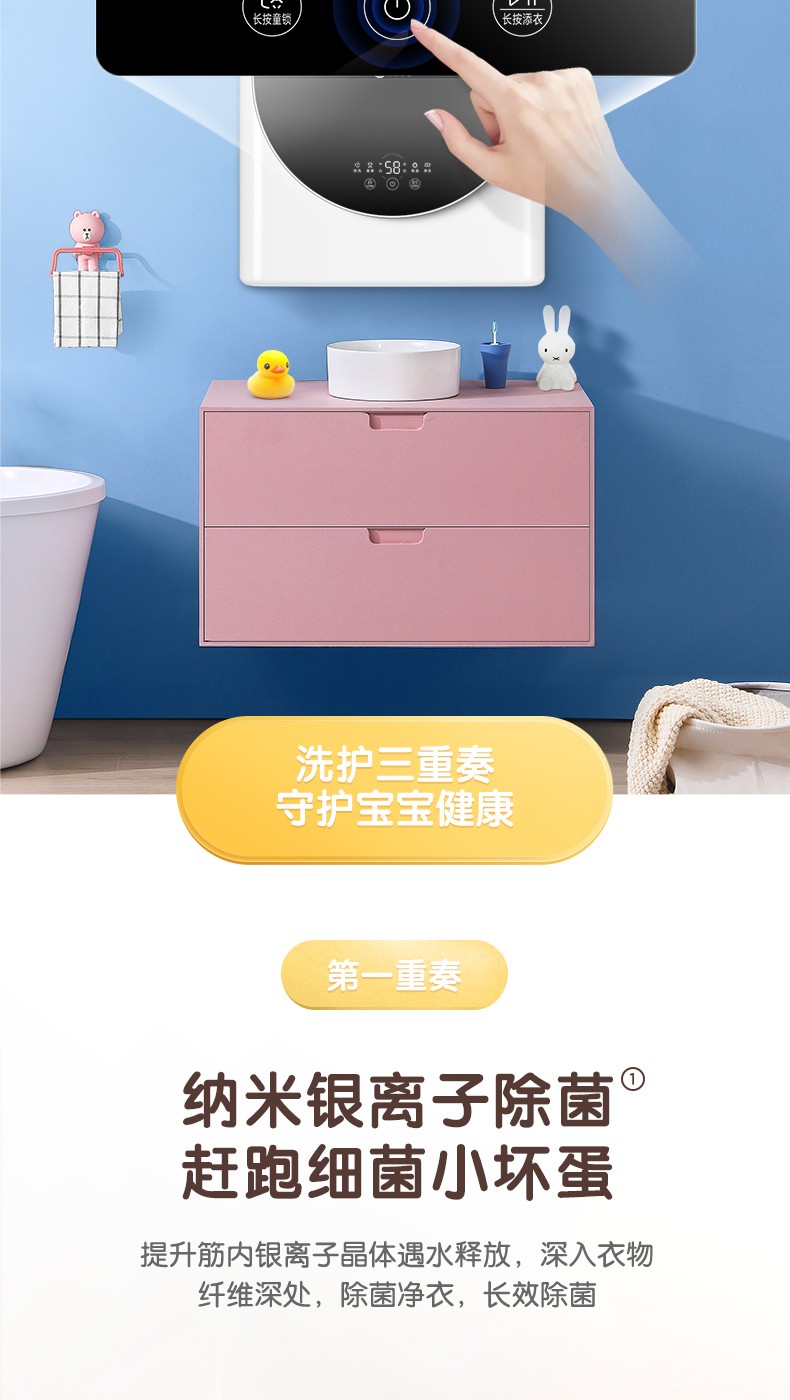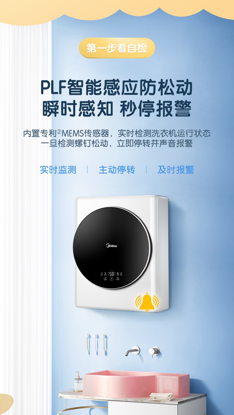 美的 MG30MINI 壁挂洗衣机 3KG迷你滚筒洗衣机全自动 智能家电内衣婴儿洗衣机