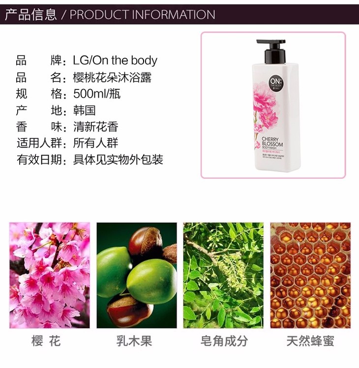 【保税仓】LG ONTHEBODY 樱花滋润香水沐浴露500g/瓶