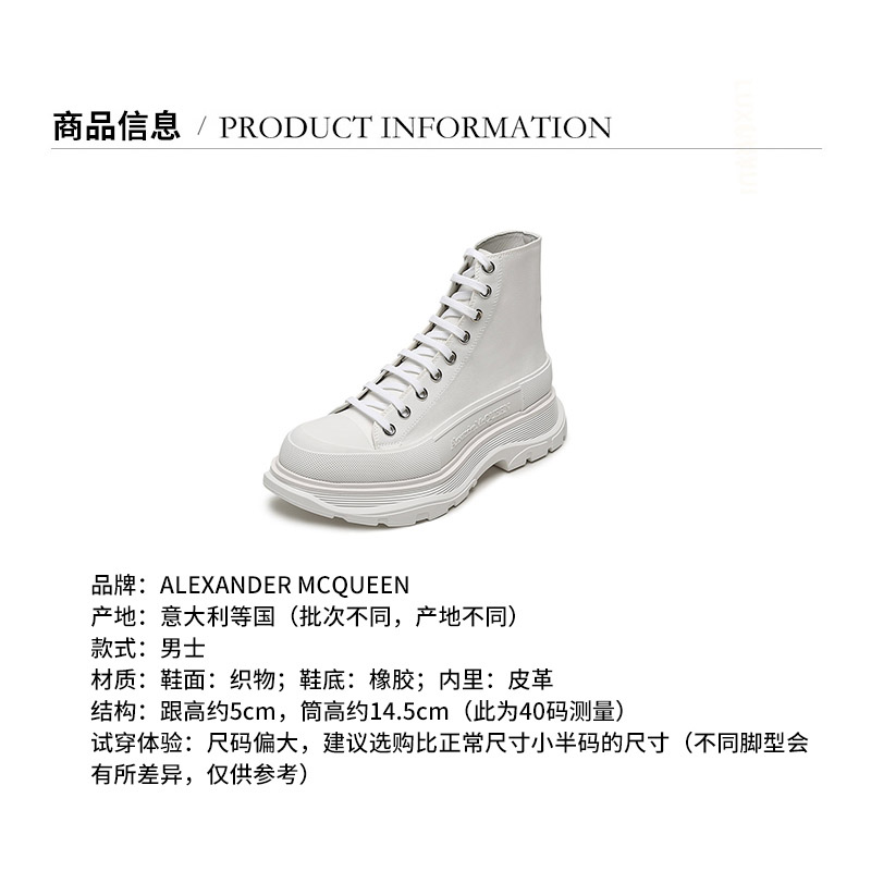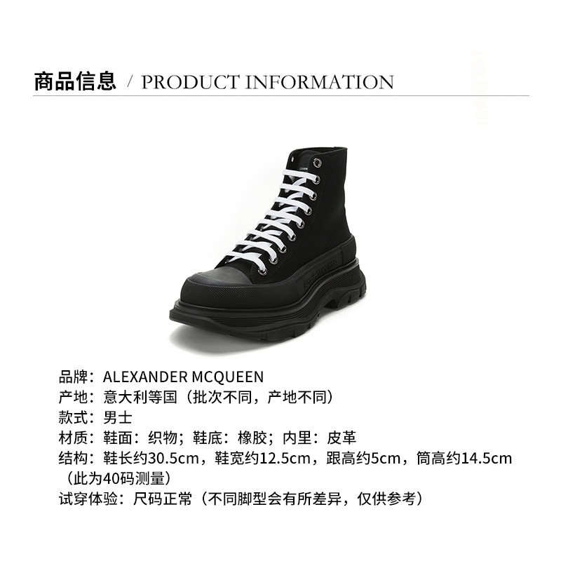 Alexander McQueen/亚历山大麦昆 2021款 男士织物系带厚底靴子短靴 604254 W4L32