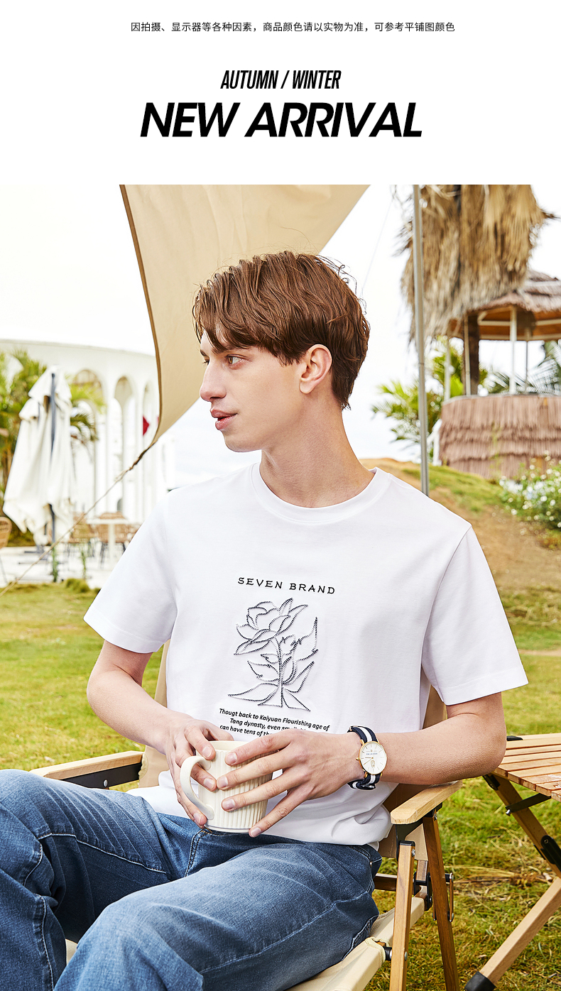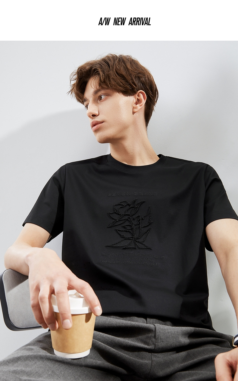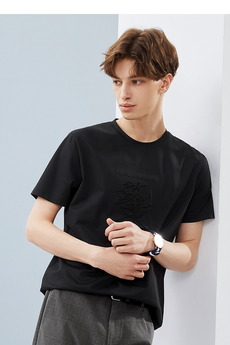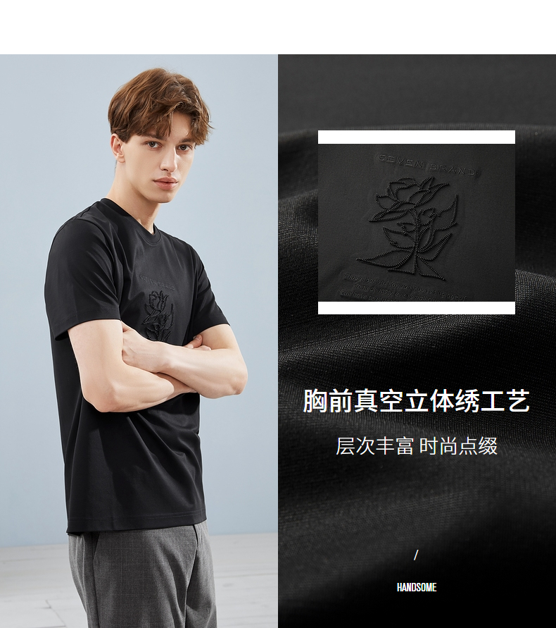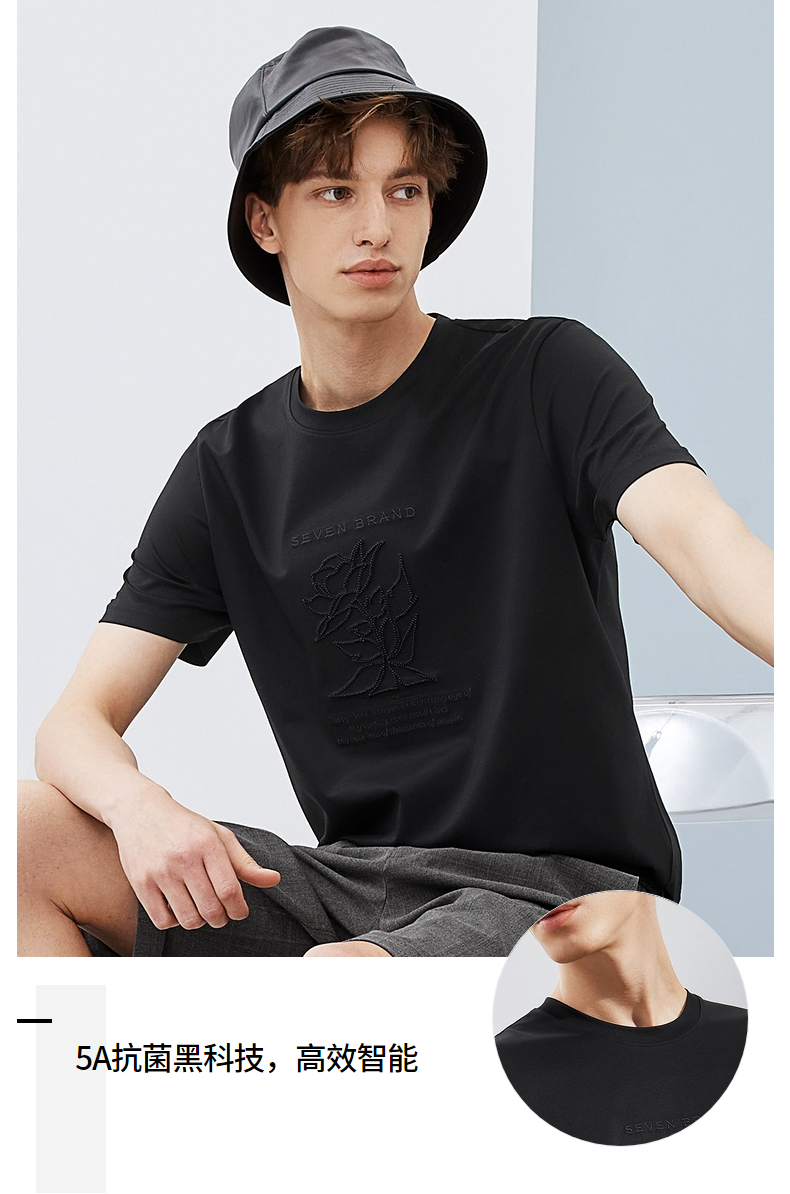 【5A抗菌/丝光棉】柒牌男装短袖t恤男夏季新款圆领休闲体恤衫 124T71240