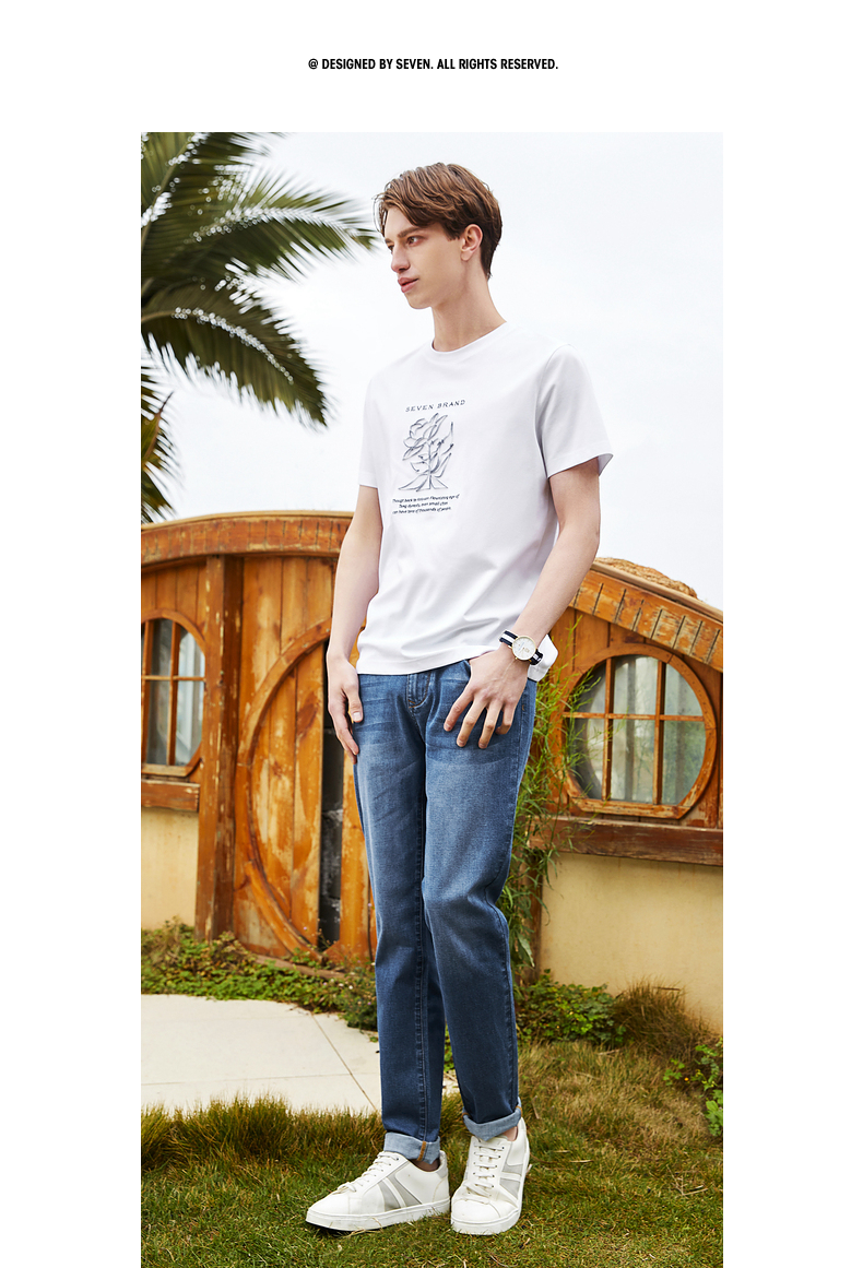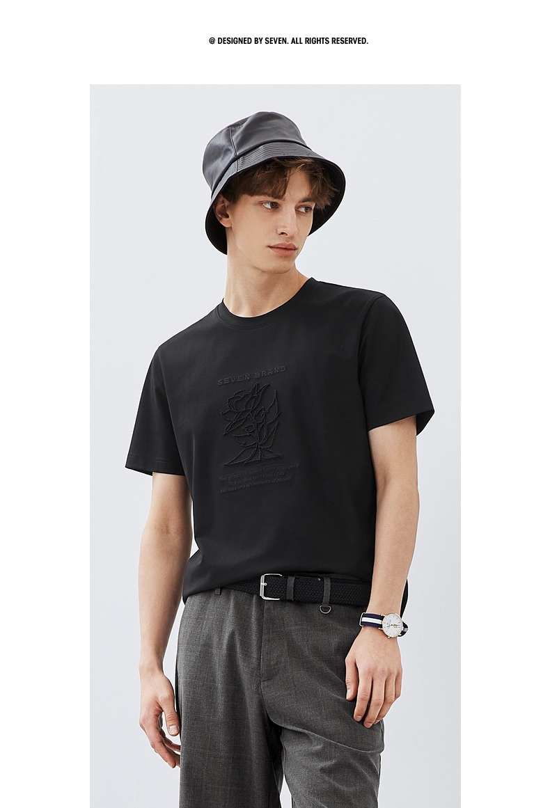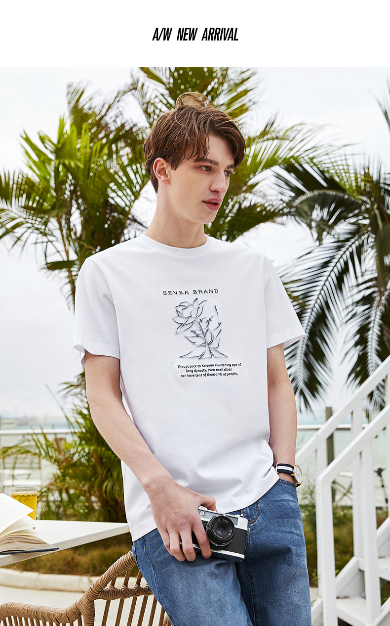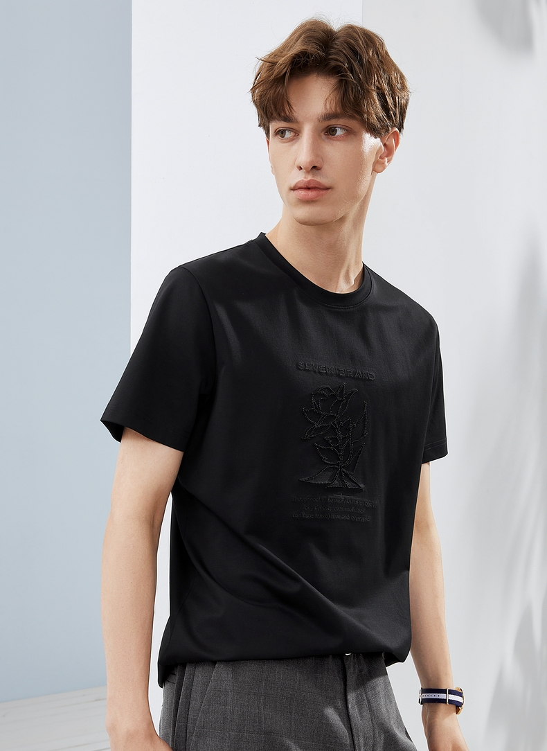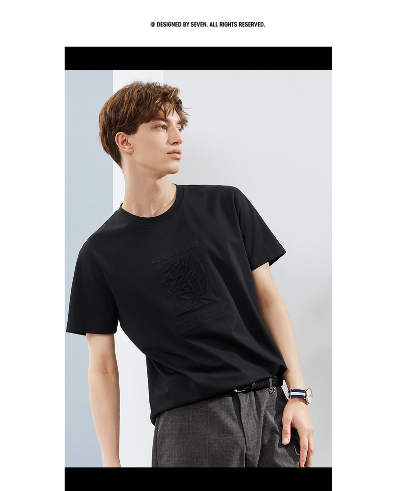 【5A抗菌/丝光棉】柒牌男装短袖t恤男夏季新款圆领休闲体恤衫 124T71240