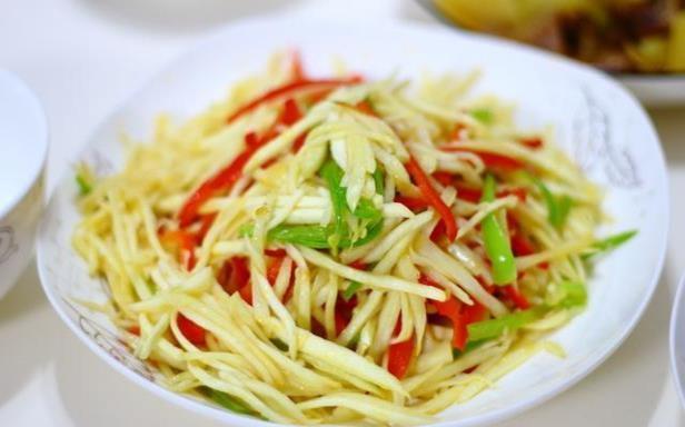起锅烧油,下茭白炒30秒,加菜椒一起炒30秒