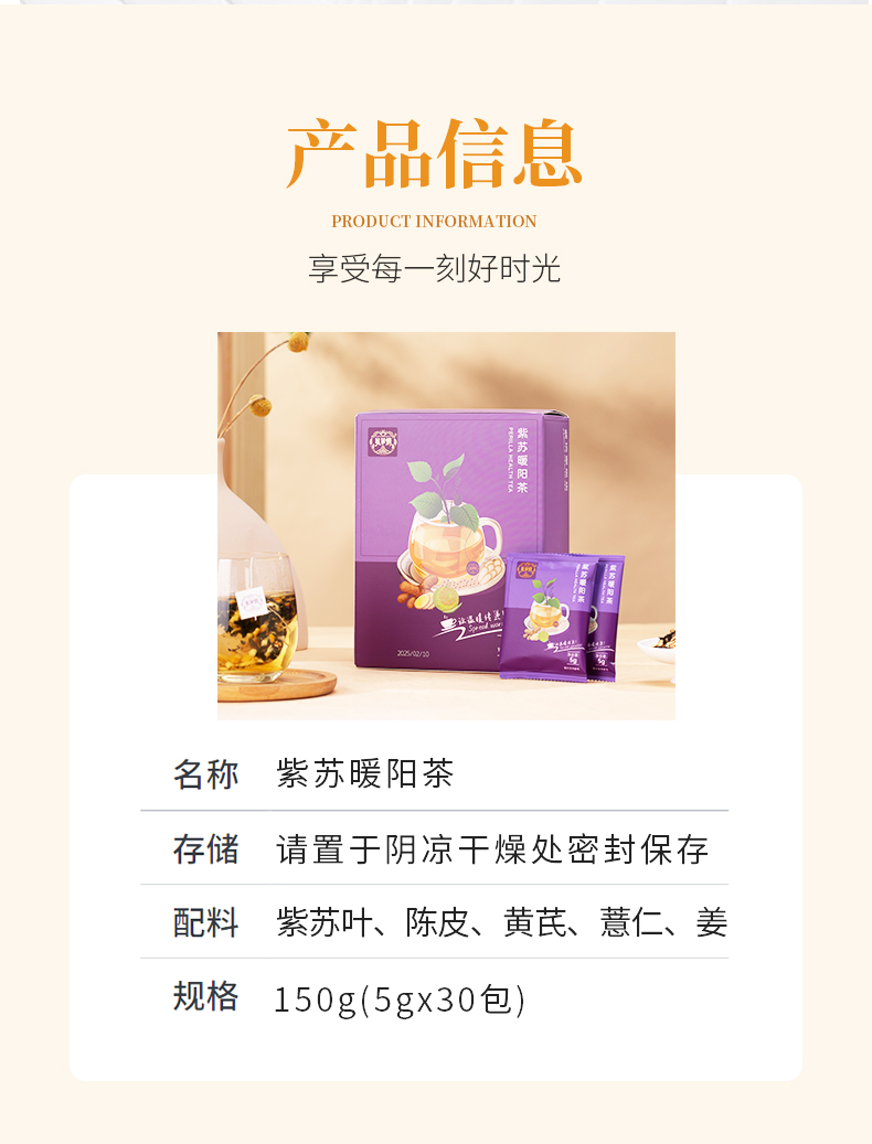 ⁶ 感冒茶【紫苏暖阳茶】紫苏叶+陈皮+黄芪+薏仁+姜 5g*30包*1盒SS06-QTT-ZSGN
