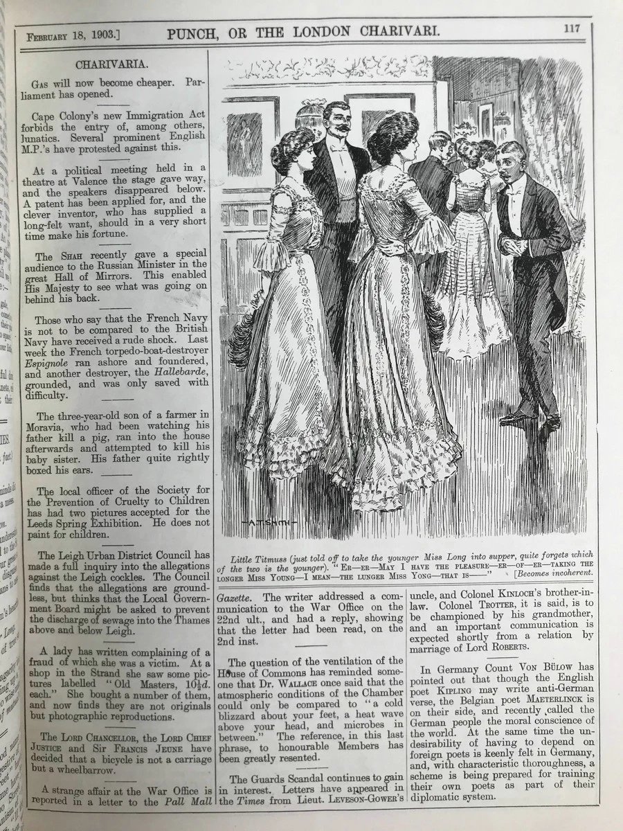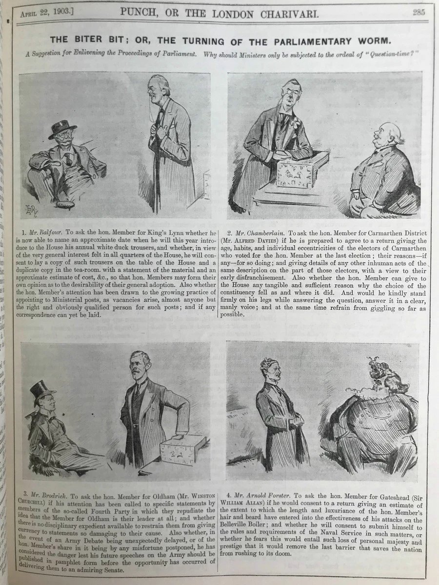 1903年1-6月 英国讽刺漫画杂志《笨拙》 数百幅插图 漆布精装16开