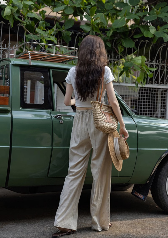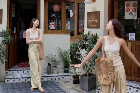 🤎亚麻棕 亚麻棕山本裤搭配极简T恤, 绝对属于努力搞钱的都市丽人着装, 慵懒和干练的都很显调性, 日常出门穿上它们,丝毫不拖泥带水。 既能在通勤场合游刃有余, 出游休闲度假也美成一道风景线。