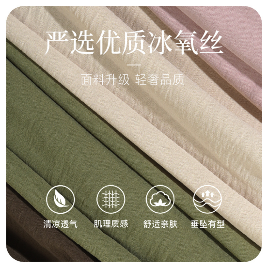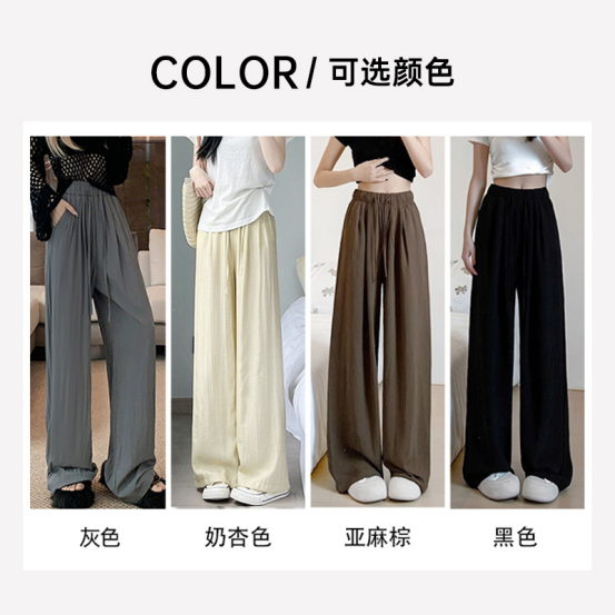 特别加密的冰丝防晒面料, 穿上一整个亲肤舒适,凉感也够持久, 就算大夏天🌞穿出去也不会感觉闷热❌ 加上特殊肌理纹工艺,裤子的垂感真的绝了👍 松弛但不松垮,也不鼓包💥 还能支撑这条阔宽裤腿的版型❗️ 随便怎么揉搓都是垂顺有型的‼️