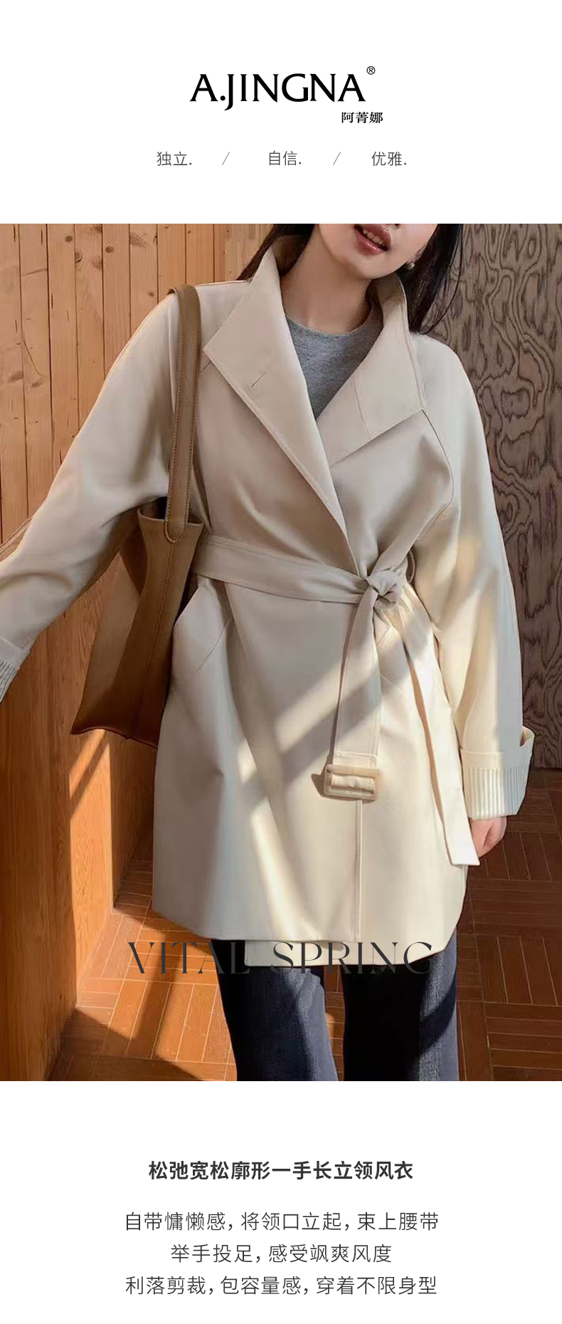【自带慵懒】阿菁娜松弛宽松廓形一手长立领风衣F30C205002