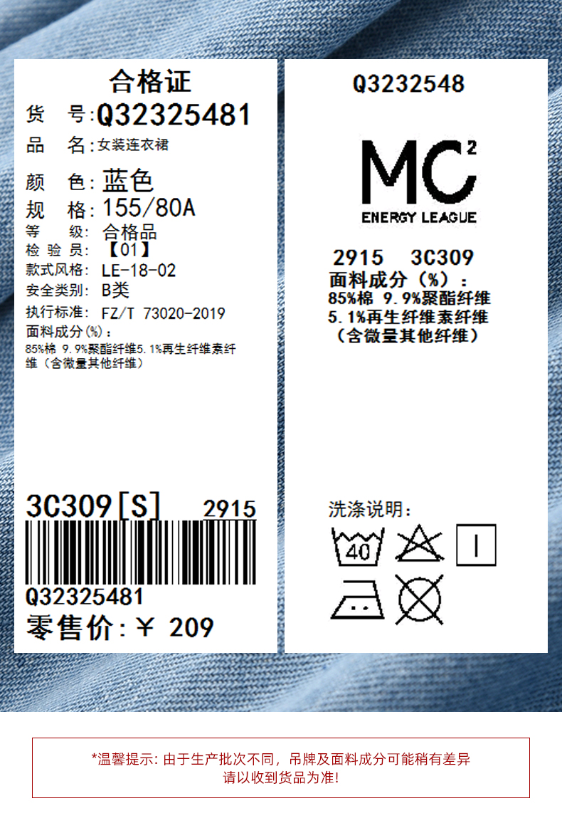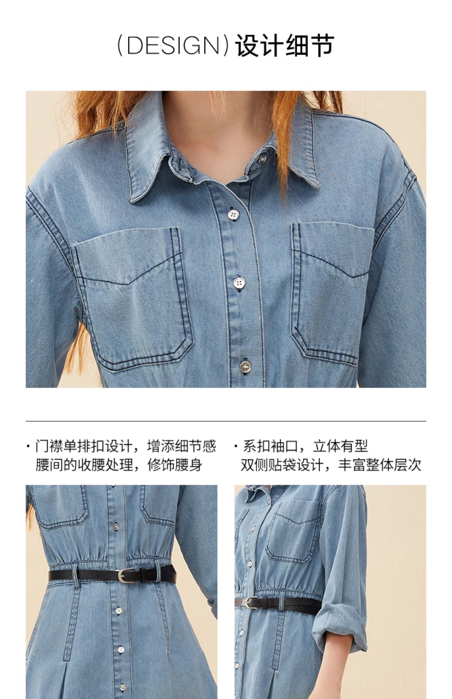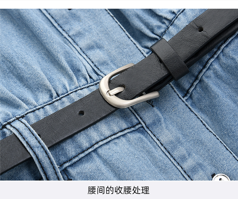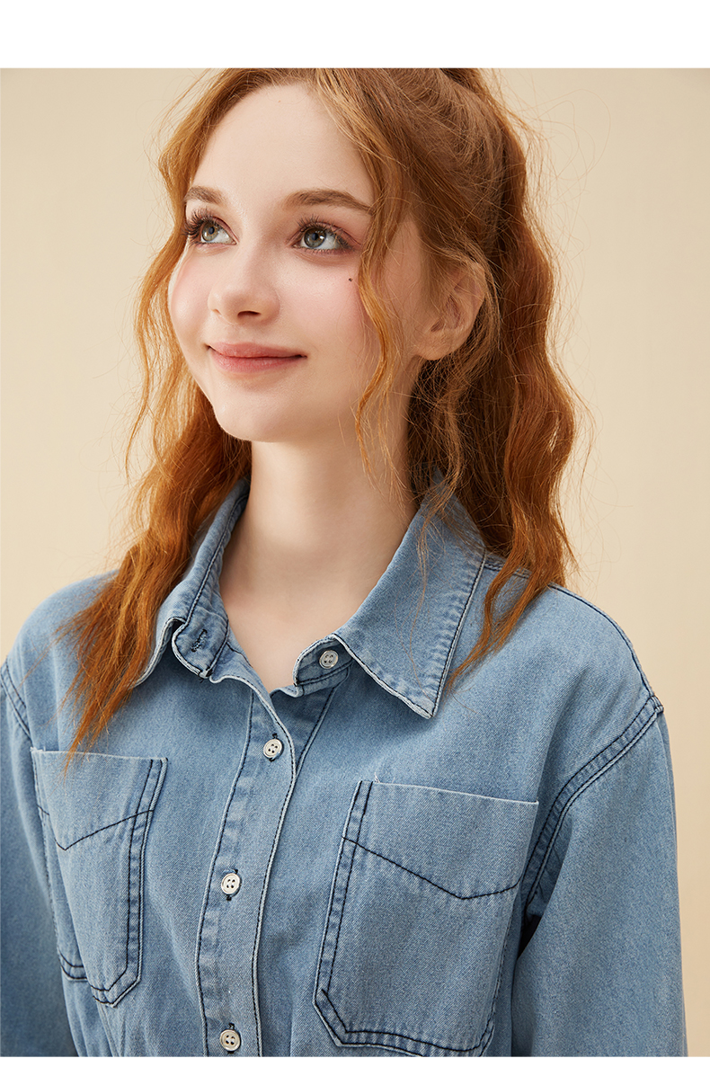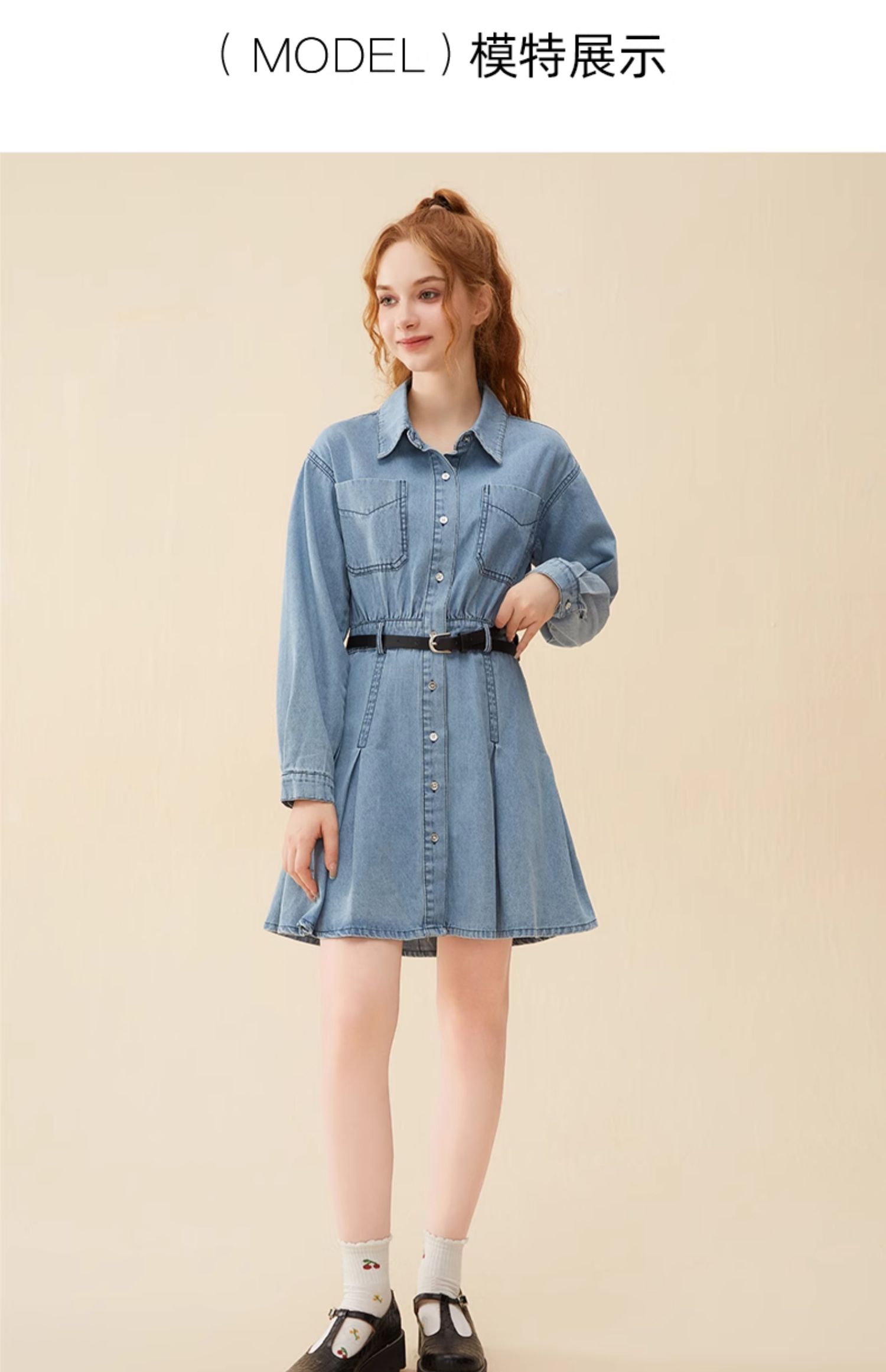 mc2蓝色牛仔连衣裙女2024春秋款复古风收腰显瘦长袖牛仔裙小个子