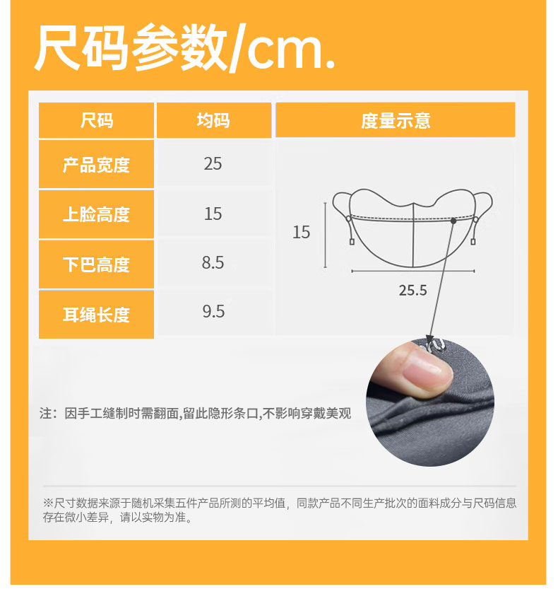 立体剪裁,减少与皮肤摩擦,避免脸部压痕